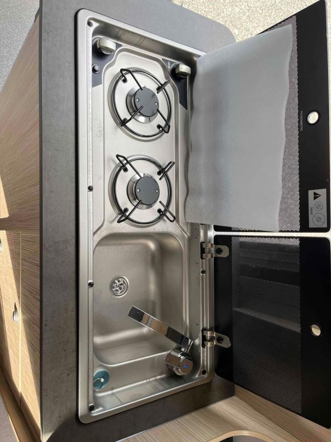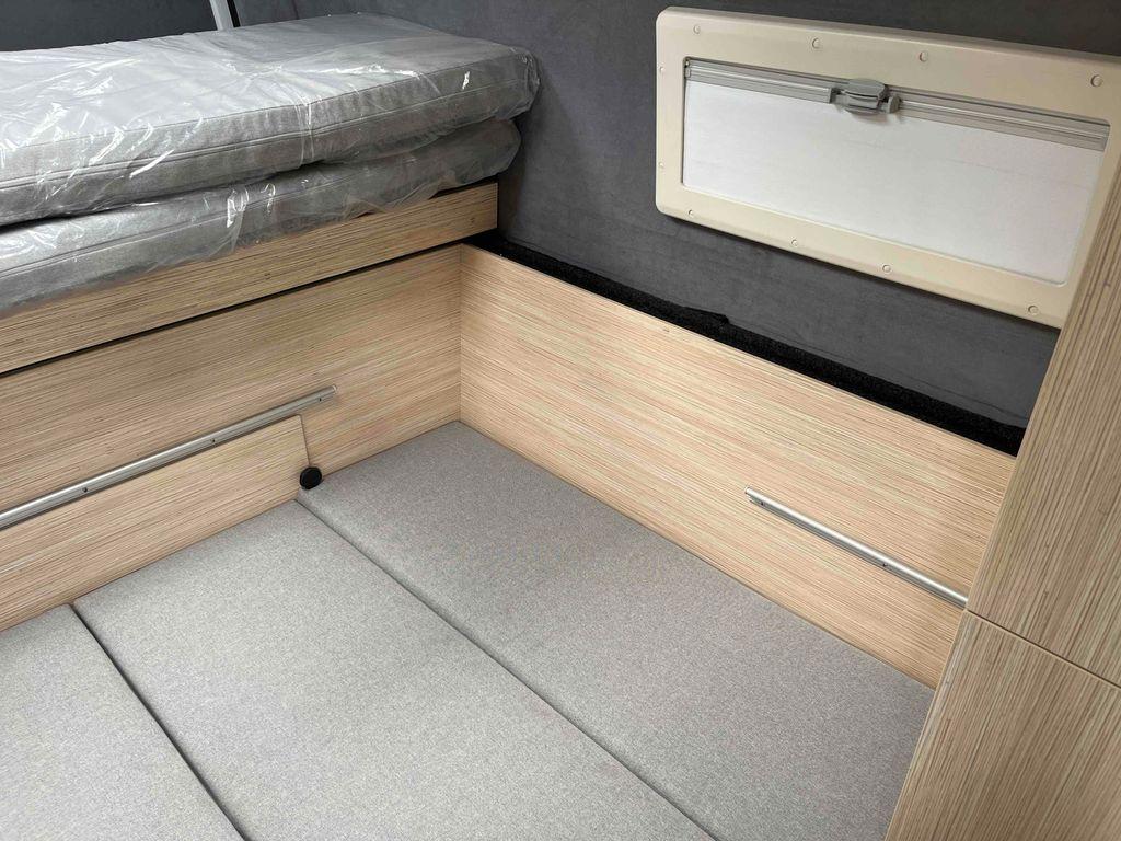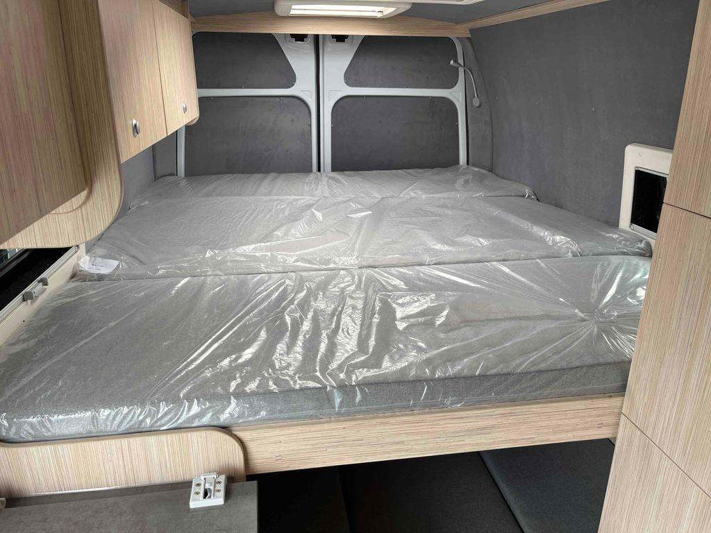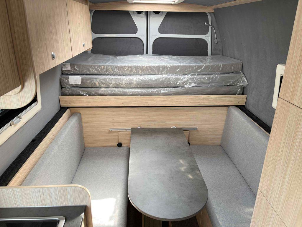 Skladem, ihned k odběru. Nové vozidlo s obytnou vestavbou. 4 místa jízda, 4 místa spaní. Koupelna + WC. Lednice. Dvou plotýnkový plynový vařič. Nádrž na pitnou vodu 45L, na odpadní vodu 90L. Topení naftové. 2x střešní okno. Markýza 3,75m. Elektrický schůdek.