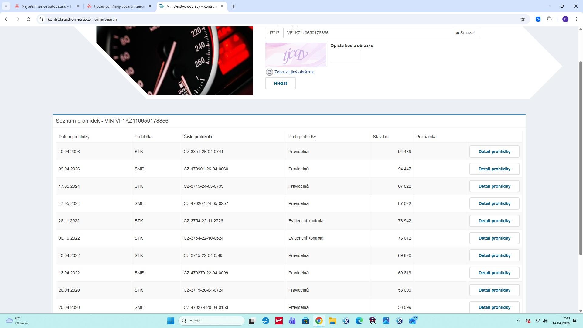 | Historie | Zobrazit historii vozu |