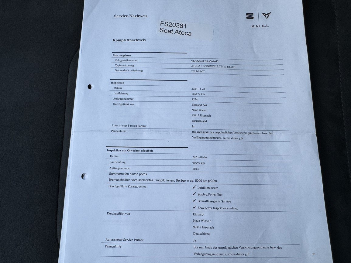 Model XCELLENCE - 110 KW - 150 PS - do provozu 2.5.2019 - 119 574 km - full LED světlomety - orig. satelitní navigace - automatická klimatizace - volba jízdního režimu - výhřev čelního okna - prémiový audio systém - tempomat - automatické parkování - keyless-go - parkovací kamera - bluetooth - 2* klíč, orig. AL. kola 18, letní pneu, servisní knížka, pravidelný servis pouze SEAT, poslední záznam při 106 172 km, po výměně náplní 2/2026 při 118 500 km. PERFEKTNÍ STAV. V případě zájmu naleznete kompletní informace včetně fotodokumentace přímo na našich stránkách AUTO-RE