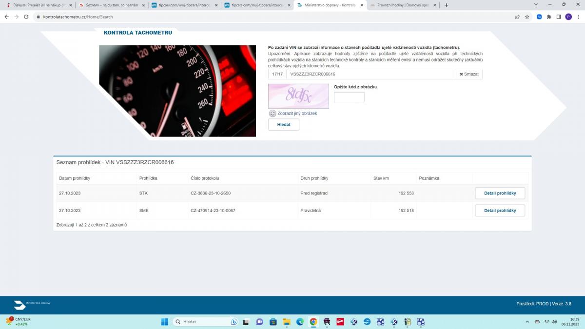 | Tachometr | 192600 km |