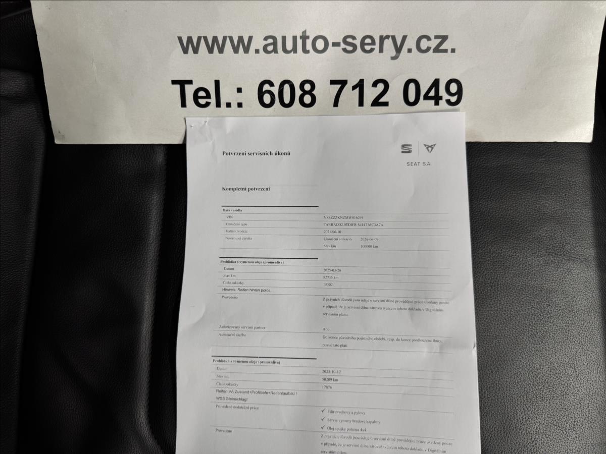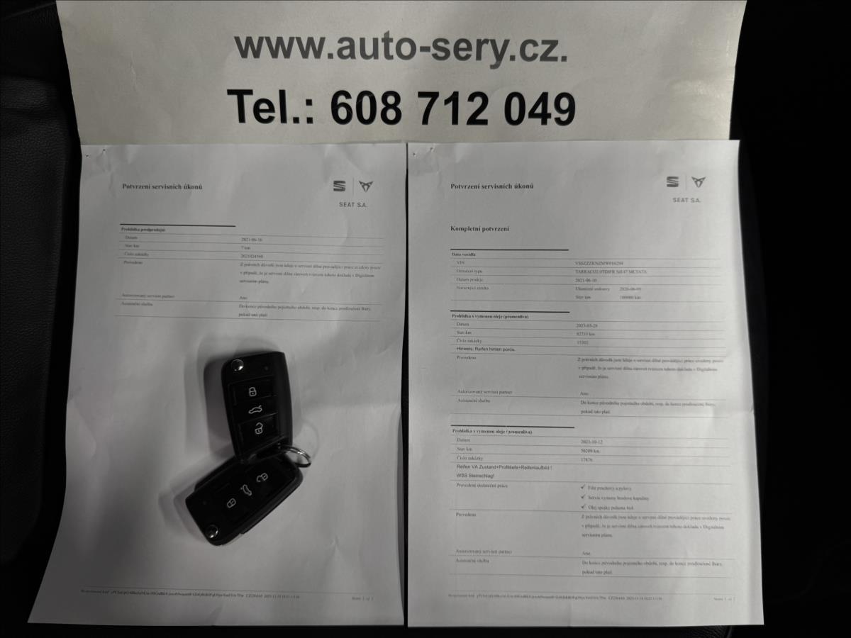 Vůz stále v tovární záruce do 6/26 nebo 100tis km. Možný odpočet DPH, servisováno v Seat, poslední servis 3/25 při 82.735km, nová STK, s vozidlem je možno ihned odjet, nehavarováno, nelakováno. Údaje obsažené v této kartě vozu mají informativní charakter a nemohou zachytit veškeré detaily stavu a výbavy vozidla. Podrobný popis stavu a výbavy bude ověřen až v okamžiku poptávky koupě. Z této indikativní nabídky nevzniká nárok na uzavření smlouvy.