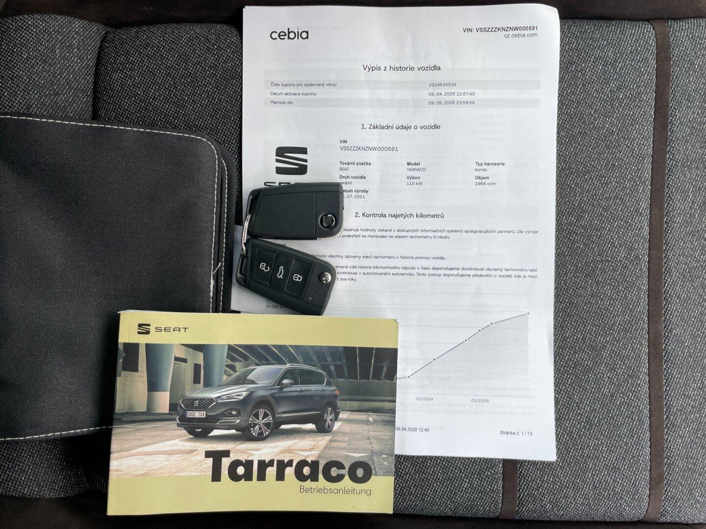 Krásné udržované Tarraco po 1. majiteli s pravidelným servise Seat v krásné šedé metalické barvě Delfingrau! Na voze alu kola R20 s krásným letním obutím + druhá sada alu kol se zimními pneu k vozu! Vozidlo má extra bohatou výbavu Xcellence: Full LED světlomety s funkcí automatických dálek, Kessy, elektricky ovládané víko kufru, originální tažné zařízení, 360° kamery, přední + zadní parkovacé senzory, automatické parkování, panaromatická střecha, prémiový sound systém BEATS, satelitní navigace, bezdrátový Apple carplay + Android auto, DAB, bezdrátové nabíjení telefonu, virtual cockpit, adaptivní tempomat, vyhřívané čelní sklo, vyhřívaný volant, vyhřívané přední + zadní sedačky, ambientní osvětlení, třízónová automatická klimatizace, Sunset....