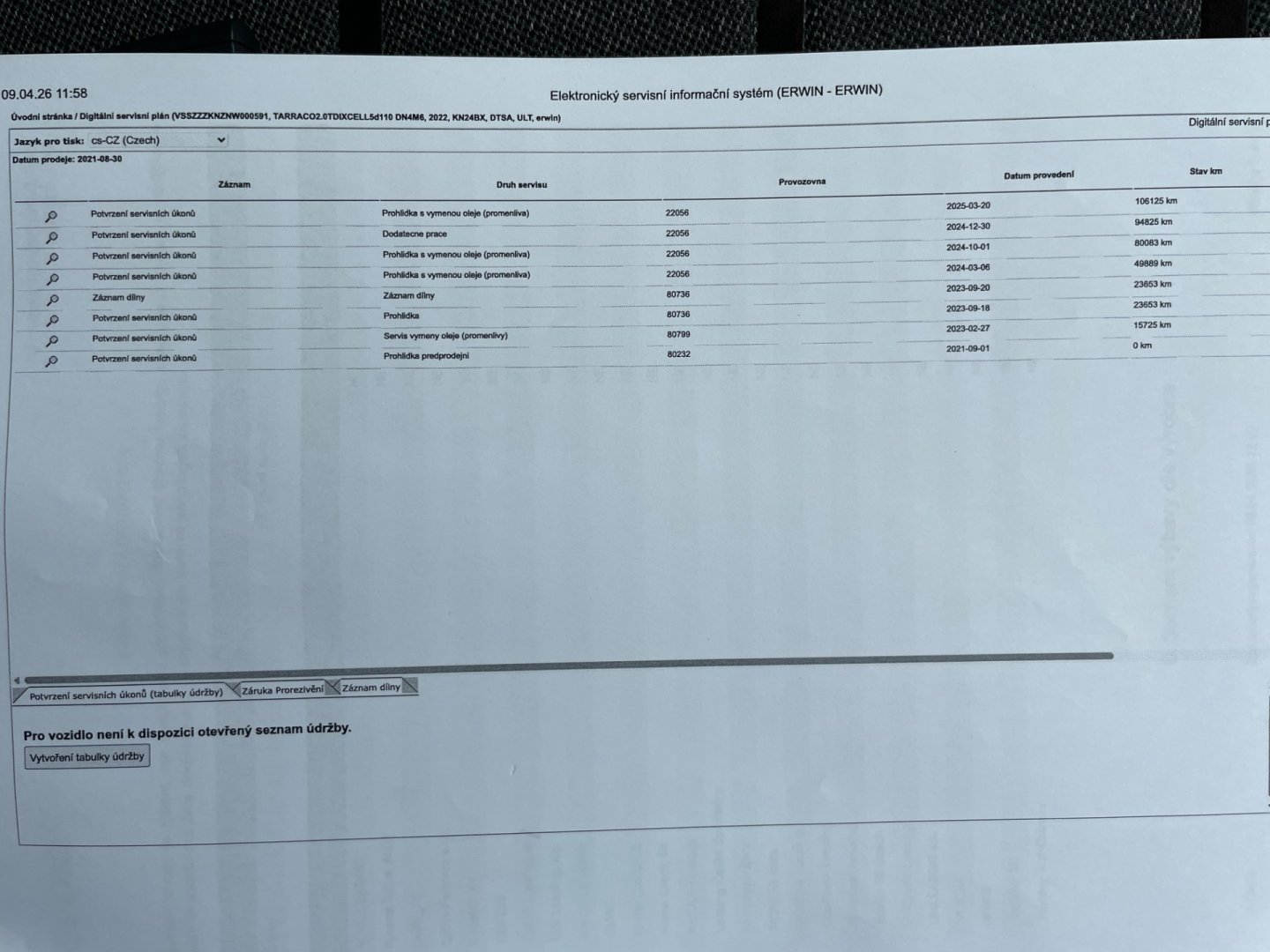 | Historie | Zobrazit historii vozu |