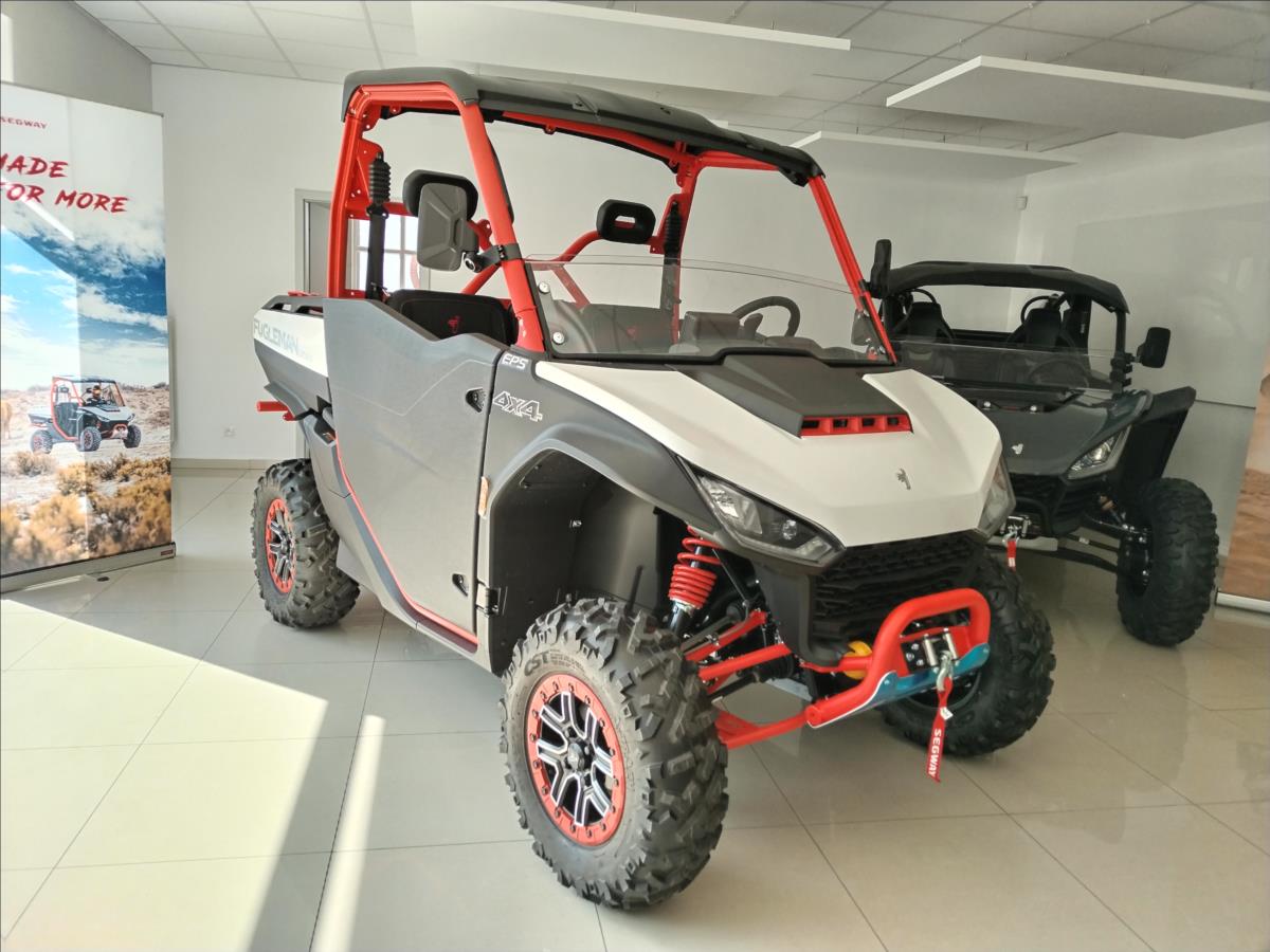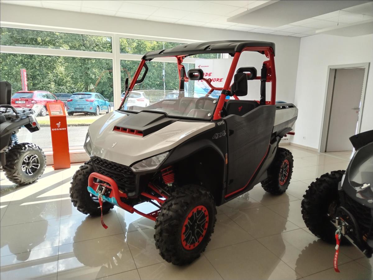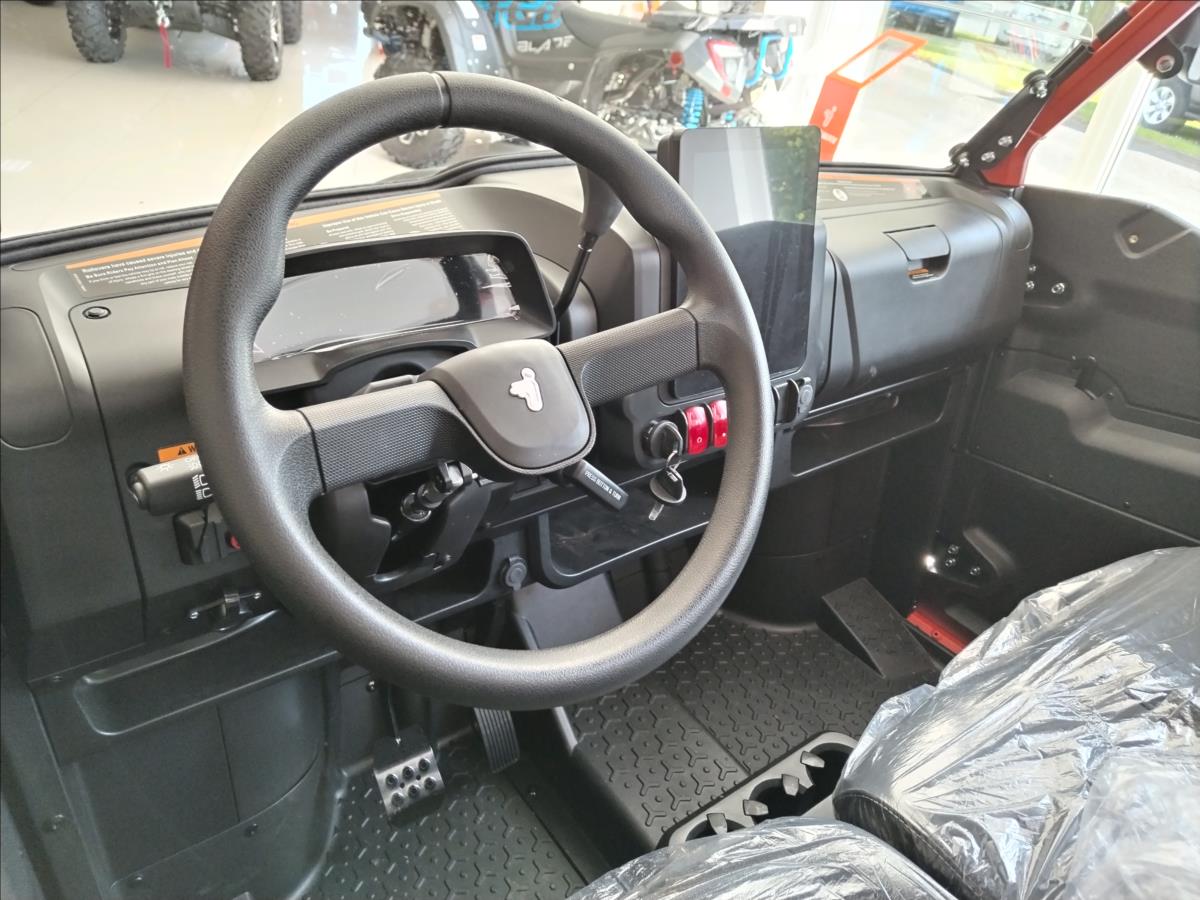 VYUŽIJTE NAŠE VÝHODNÉ FINANCOVÁNÍ. PRODLOUŽENÁ ZÁRUKA 5 LET. Elektrický naviják 4500 lbs, inteligentní elektrický posilovač řízení, TFT digitální přístrojová deska, Smart Commanding System (TBOX), tažné zařízení, nastavitelný volant, anatomicky tvarovaná sedadla s hlavovou opěrkou, tříbodové pásy, přední ochranný rám, zadní ochranný rám, pevné boční dveře, pevná střecha, velká sklopná korba, 14 hliníkové disky, přední ochranné plexi. Barevná provedení: černo- zelená bílo- červená černo- šedá