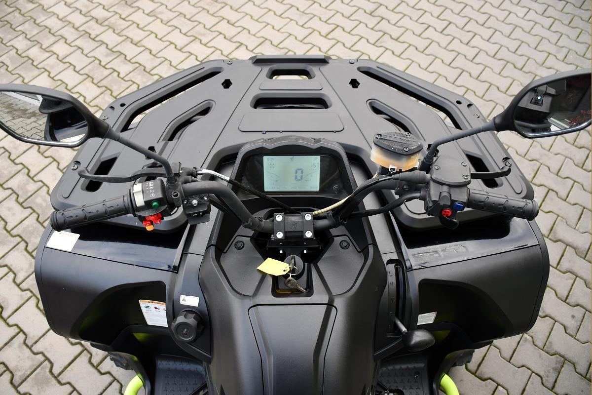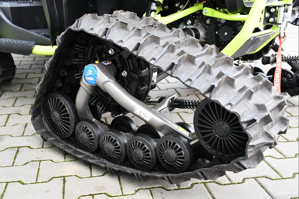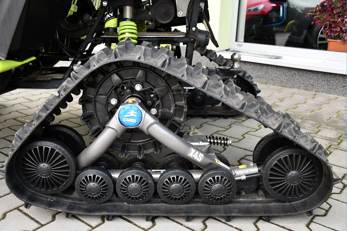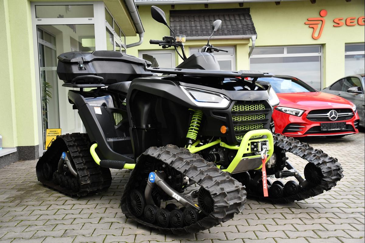 PŘÍSLUŠENSTVÍ V HODNOTĚ 154 699KČ!!\\n\\nSNĚŽNÉ PÁSY CAMSO X4S TRACK\\nMASIVNÍ HLINÍKOVÉ PODBITÍ PODVOZKU ZNAČKY XRW.\\nKUFR SHARK AX92.\\nZÁRUKA 5 LET. T3b, elektrický posilovač řízení EPS, kapalinou chlazený jednoválec 570 cm3 EFI, automatická převodovka P/R/N/L/H, brzdění motorem, pohon 4x4, dvojitá A-ramena vpředu / dvojitá A-ramena se stabilizátorem vzadu, plně nastavitelné plynokapalinové tlumiče s oddělenou nádobkou a progresivní pružiny, přední, zadní a boční ochranné rámy, tažné zařízení, el. naviják 1134KG, kompozitní nosiče vpředu a vzadu, Full-LED osvětlení, prodloužené sedadlo spolujezdce s opěrkou zad, 12V zásuvka, 14\\\" hliníkové disky se systémem Beadlock, 26\\\" pneu, ochranné kryty rukojetí, Smart Commanding System (SCS) + mobilní aplikace Smart-Moving App.