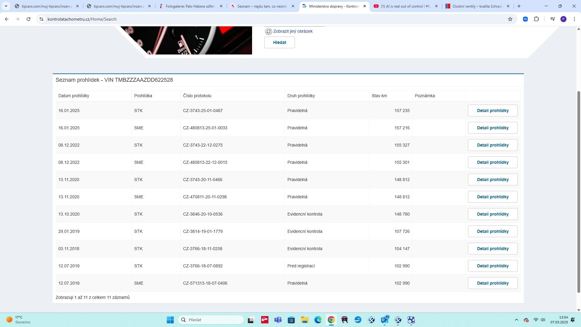 | Historie | Zobrazit historii vozu |