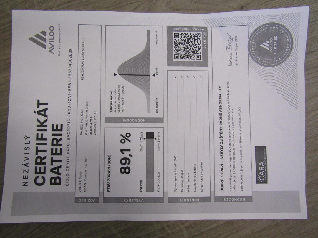 V perfektním technickém i optickém stavu. Adaptivní podvozek. Zcela bez závad. 2 klíče. AVILOO test baterie 27.1.2026. Zimní pneu. POZOR - vozidlo nestojí na prodejní ploše, na prohlídku nutno volat předem.