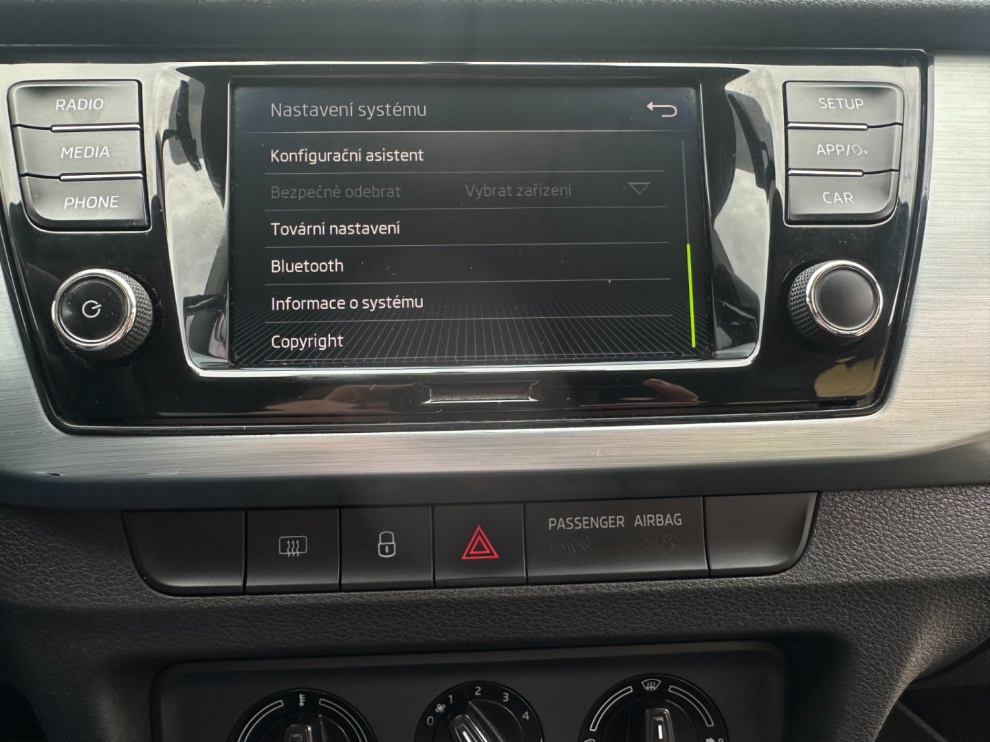 - deaktivace airbagu spolujezdce