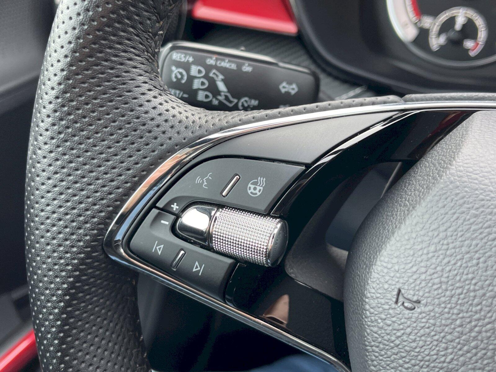 Kontrola tlaku v pneumatikách, Systém start-stop s rekuperací, Parkovací senzory vpředu a vzadu, Asistent dálkových světel, Bi-LED přední světlomety, Funkce Coming Home a Leaving Home, Stěrač zadního okna s ostřikovačem a stupňovým intervalem stírání, Světelný a dešťový senzor, Klíček pro systém zamykání s dálkovým ovládáním, Rezervní kolo, prostorově úsporné, Střední loketní opěrka vpředu, Asistent udržování jízdního pruhu (Lane Assist), Front Assist - s upozorněním a zabržděním při hrozící kolizi s vozidly, chodci a cyklisty, El. sklápění pro vnější zp. zrcátka s aut. stmíváním na straně řidiče, Elektronický imobilizér, Příprava pro nosič zavazadel, Vyhřívání předních sedadel, KESSY - bezklíčové zamykání a startování, Sunset, Automatické stmívání pro vnitřní zpětné zrcátko, Elektrické ovládání oken vpředu a vzadu, Airbag na straně řidiče a spolujezdce s deaktivací airbagu na str. spolujezdce, bez kolenního airbagu, Boční airbag vpředu, s hlavovým airbagem, Volba jízdního profilu a konv. tlumiče, Nárazníky, sportovní, Sportovní multifunkční vyhřívaný kožený volant, design Monte Carlo, 3x ISOFIX (2x vzadu, 1x vpředu) a 2x Top Tether vzadu, Panoramatická střecha, Sportovní kryty pedálů, Provozní návod v češtině, Elektronický program stability (ESP), Hatchback, Ukazatel servisních intervalů 30 000 km nebo 2 roky (variabilní), S multifunkční kamerou, Ambientní LED osvětlení, DAB - digitální radiopříjem, Asistent rozjezdu do kopce, 2x USB-C vzadu pro nabíjení, Země typové zkoušky Česko, Funkce ECO, Asistent rozpoznání únavy, 6stupňová manuální převodovka, Parkovací kamera vzadu, Regulace sklonu světlometů, autom. dyn. (reguluje se během jízdy), Koncové mlhové světlo, pravostranný provoz, Tempomat s omezovačem rychlosti, LED zadní světla, Přední mlhové světlomety, Ukazatel stavu kapaliny do ostřikovačů, Dvouzónový CLIMATRONIC, Bezdrátové nabíjení telefonu, Nekuřácké provedení, Kontrola zapnutí bezpečnostního pásu, el. kontakt v zámku, rozšířená bezpečnostní výbava, MaxiDot, Vyhřívané trysky ostřikovačů čelního skla, SmartLink, Sportovní sedadla vpředuy, Vyhřívané čelní sklo, Android Auto, Deaktivace airbagu spolujezdce, Digitální příjem rádia (DAB), Elektronická uzávěrka diferenciálu (EDS), LED adaptivní světlomety, manuální převodovka, Nastavitelná sedadla, Příprava pro telefon, Vyhřívaná zrcátka, Zatmavená zadní skla