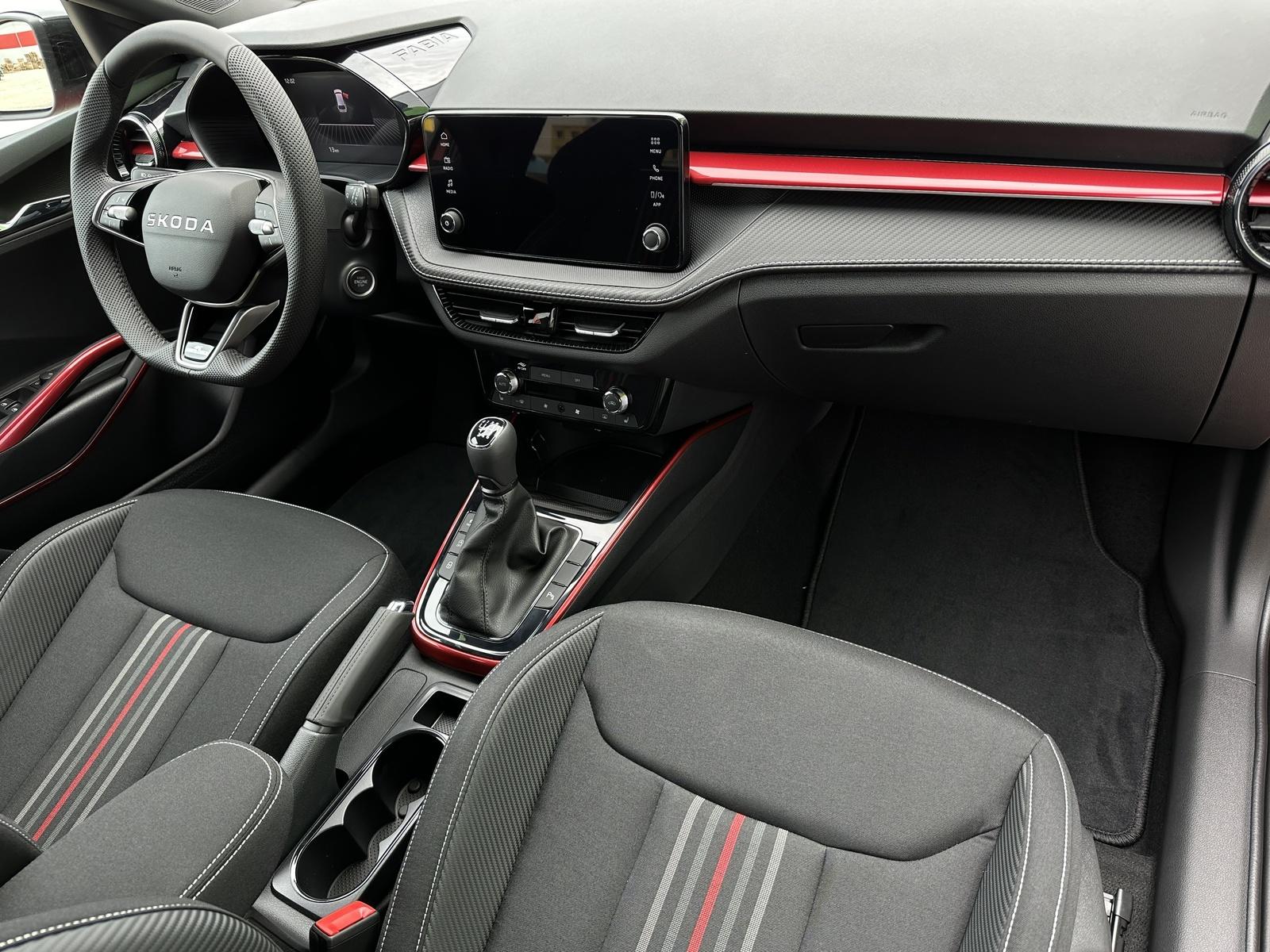 304/10898 Škoda Fabia Monte Carlo 1.0TSi 85kW/116PS, 6.st Manuální převodovka, Tovární záruka Škoda Auto 5let/100.000km, Výbava vozu: Paket Asistovaná jízda 1.5 PLUS - (Adaptivní tempomat - ACC, Asistent hlídání mrtvého úhlu - Side Assist, Adaptivní asistent pro udržování jízdního pruhu – Lane Assist+), Vyhřívané čelní sklo, Kola z lehkých slitin ALU Škoda PROCYON 7Jx17 Černá/Leštěná, Parkovací kamera vzadu, Parkovací senzory přední a zadní - PDC P/Z, Asistent varování a brzdění při hrozící kolizi s vozidly, chodci a cyklisty - Front Assist, Asistent rozpoznání únavy řidiče, Asistent rozjezdu do kopce, Rozpoznávání dopravních značek, Systém Start/Stop, Volba jízdního režimu, Bezklíčové odemykání a startování - KESSY, Dvouzónová automatická klimatizace - Climatronic, Vyhřívaný multifunkční kožený volant pro DSG s pádly pod volantem - výškově a podélně nastavitelný, Kožená hlavice řadicí páky a madlo ruční brzdy, Sportovní vyhřívaná přední sedadla s oddělenou regulací, Bederní opěrky na předních sedadlech, Výškově nastavitelné sedadlo řidiče a spolujezdce, Loketní opěrka s Jumbo Boxem, Zadní loketní opěrka, Potahy sedadel - látka, Automaticky zatmavovací vnitřní zpětné zrcátko, Elektrické ovládání oken vpředu i vzadu, Zatmavená zadní okna - Sunset, Vnější zpětná zrcátka elektricky sklopná, nastavitelná a vyhřívaná, Infotainment Bolero 8, Bezdrátový Smartlink, Bluetooth, Virtuální Cockpit, DAB, 6x reproduktor, Bezdrátové nabíjení telefonu, 2x USB-C pro cestující vzadu, Ambientní LED osvětlení interiéru, Bi-LED Přední světlomety, Asistent dálkových světel, Mlhová světla, LED Zadní světla, Senzor světla a deště, Sportovní kryty pedálů, Dekorativní prahové lišty, Sportovní exteriérové doplňky, Bezpečnostní šrouby kol, Sada na opravu pneumatik, Centrální zamykání s dálkovým ovládáním, 3x Isofix a Top Tether – 1x vpředu, 2x vzadu, ABS, ESP, 6x Airbag, Deaktivace airbagu spolujezdce, Nouzové volání SOS - eCall, Nový vůz skladem s registrací 16. 07. 2025, Servisní kniha + dokumentace Škoda Auto, Možnost odpočtu DPH 21%, Termín odběru a předání od 17. 01. 2026.