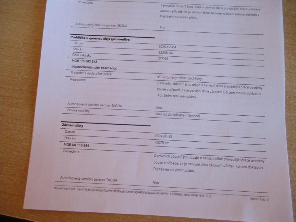 Protokol Cebia, Kompletní servisní historie v autorizovaném servisu,