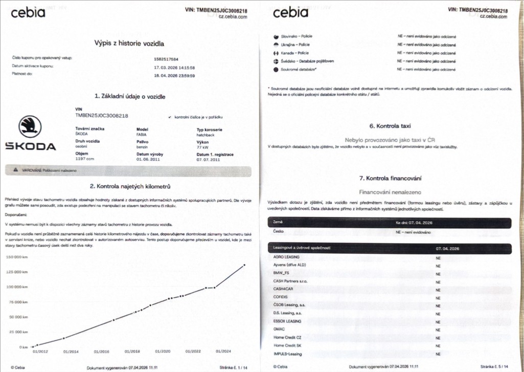 | Historie | Zobrazit historii vozu |
