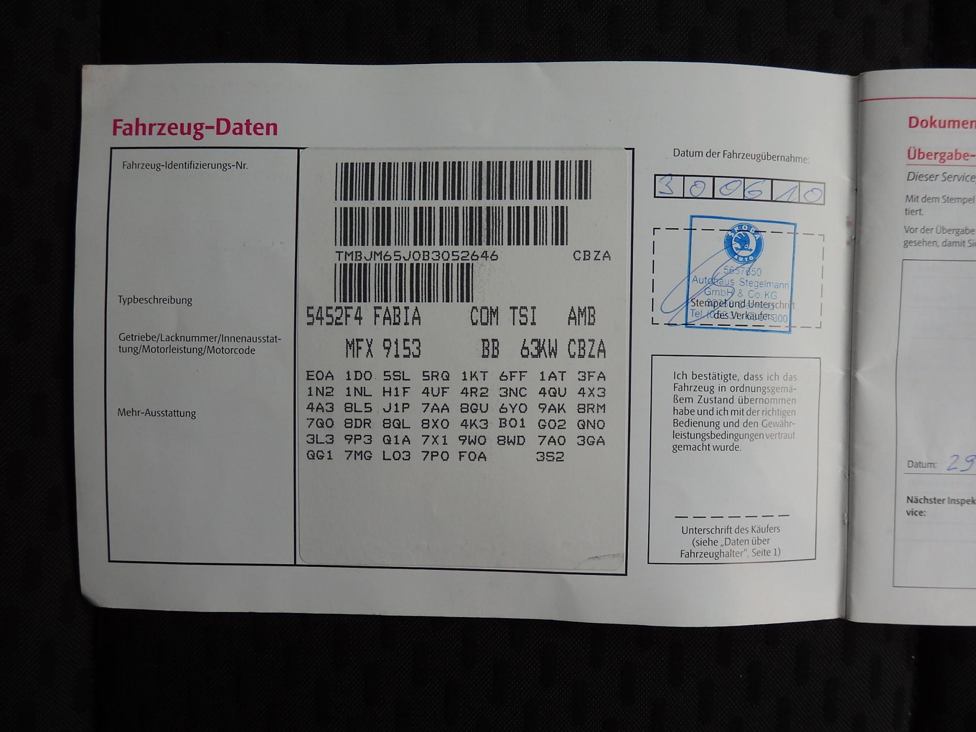| VIN | TMBJM65J0B3052646 |