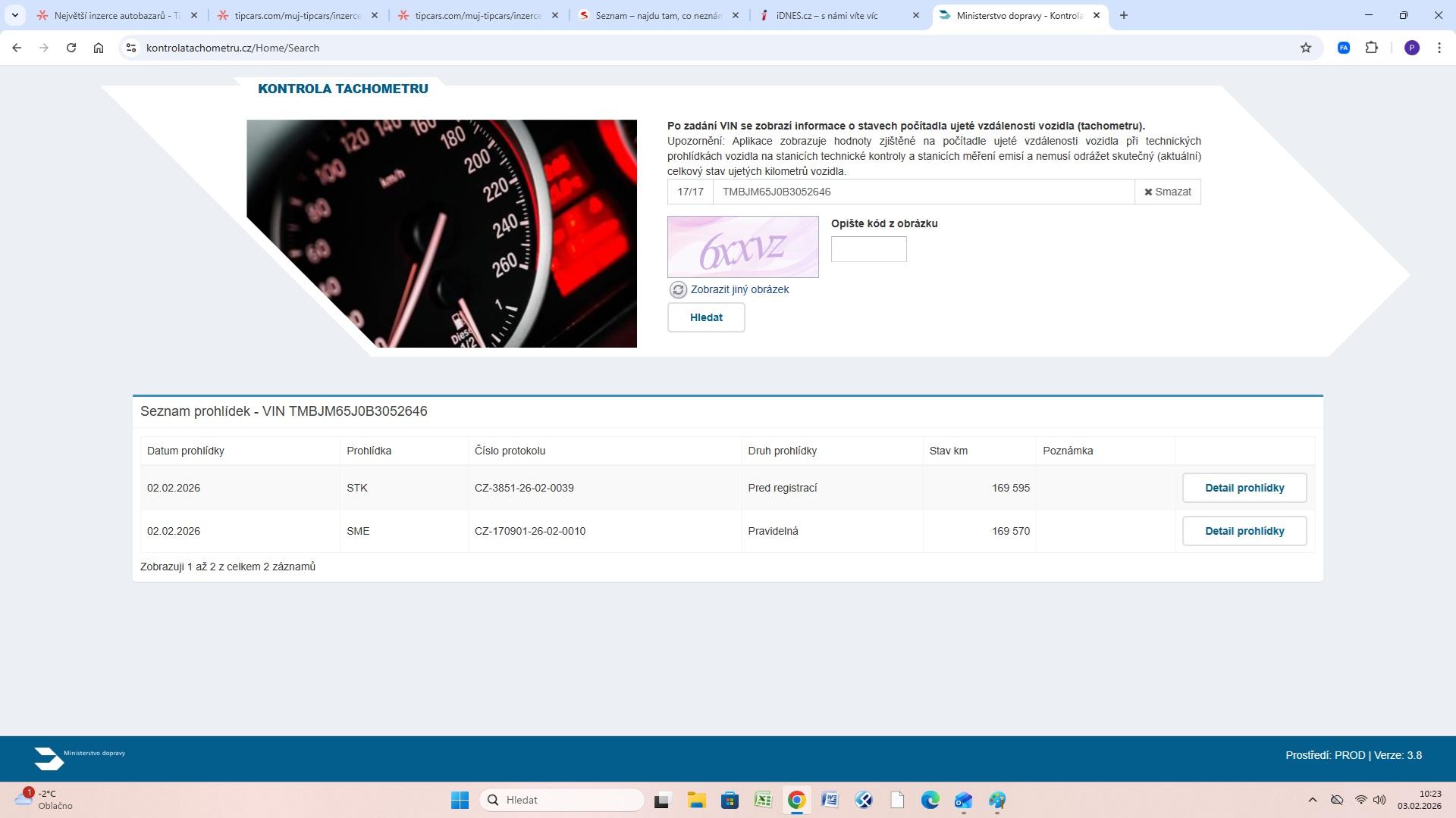| Historie | Zobrazit historii vozu |
