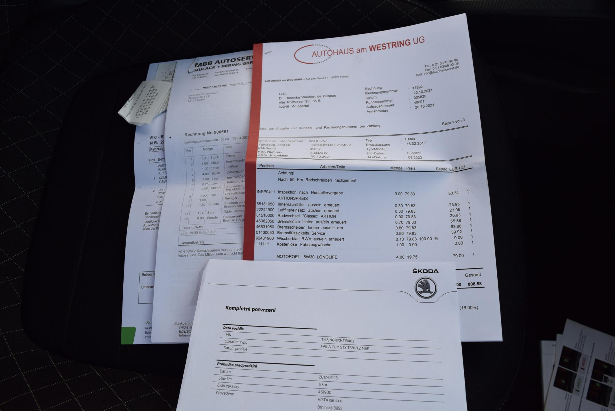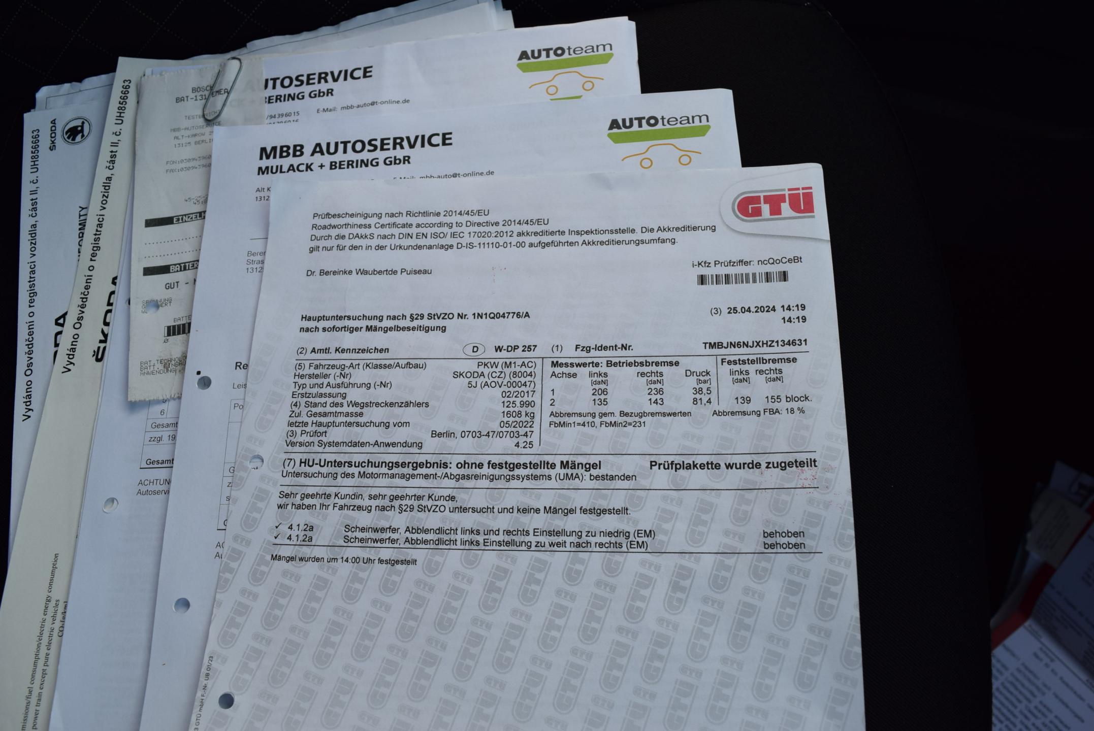 VIN:TMBJN6NJXHZ134631; země původu NĚMECKO, po 1. majiteli; GARANCE UJETÝCH KM - doloženo vedenou SERVISNÍ KNIHOU, SERVISOVÁNO VÝHRADNĚ V SERVISE ŠKODA; BOHATÁ VÝBAVA STYLE - SPORTOVNÍ tříramenný MULTIFUNKČNÍ VOLANT; ALU KOLA orig. ŠKODA + zimní sada na plechových discích; CLIMATRONIC - digitální automatická klimatizace; VYHŘÍVANÉ SEDAČKY přední; VYHŘÍVANÁ a el. stavitelná zrcátka; 4x el. OKNA; Centrální zamykání s dálkovým ovládáním; TEMPOMAT + LIM; MAXIDOT-velký palubní počítač; SOUND SYSTÉM orig. ŠKODA s rádiem, dotykovým infotainmentem, výstupy AUX & USB; SD karty, možnost konektivity přes Bluetooth s podporou Smartlink; AndroidAuto a AppleCarPlay; PARKTRONIC - parkovací senzory ZADNÍ; LOKETNÍ OPĚRKA PŘEDNÍ; mlhovky + LED denní svícení; Technicky i motoricky v perfektním stavu; Karoserie bez koroze, škrábanců parkovacích důlků; Interiér bez známek opotřebení; DOŽIVOTNÍ ZÁRUKA NA PRÁVNÍ PŮVOD A NAJETÉ KM, záruka 1 ROK na motor a převodovku.