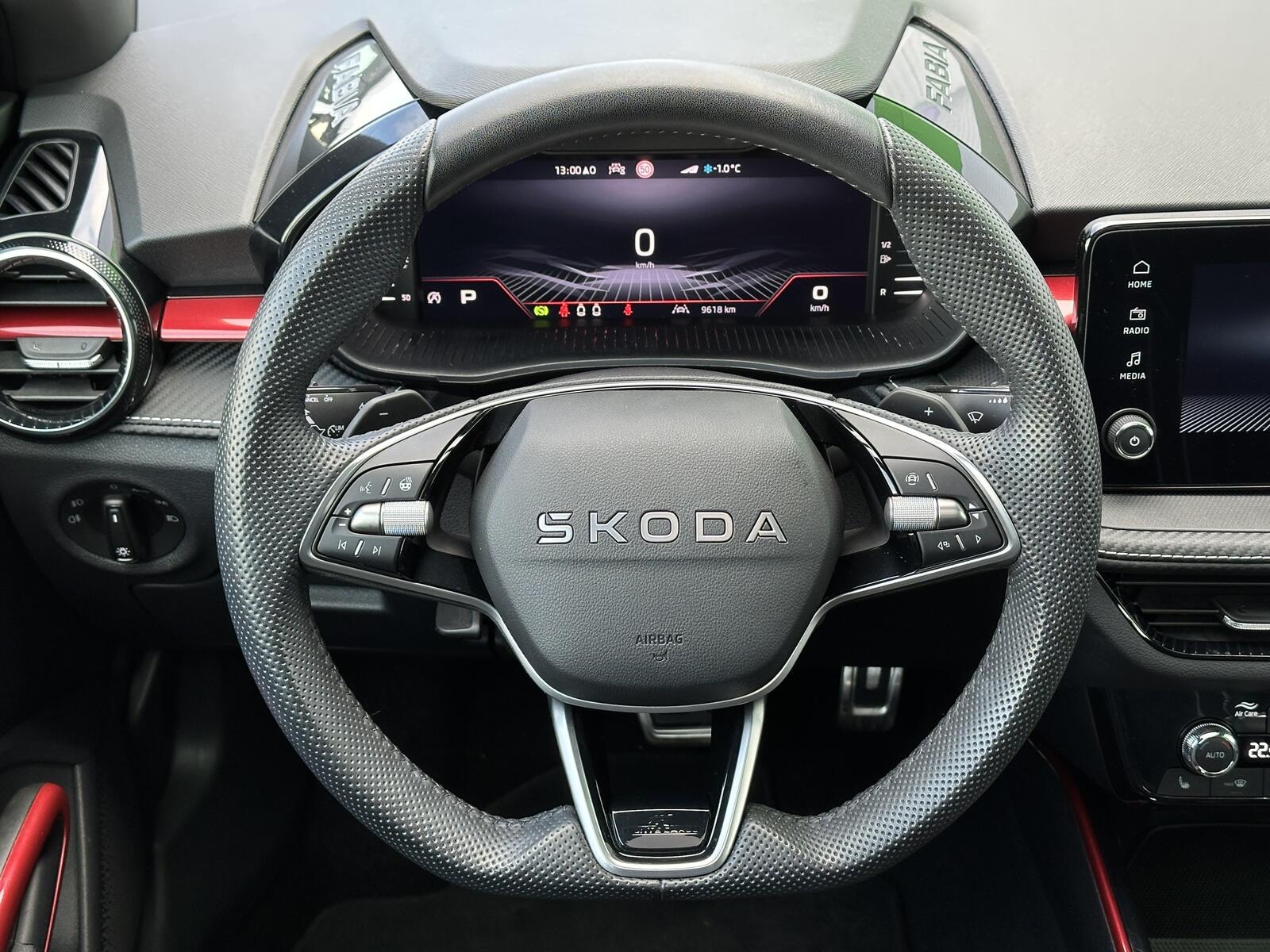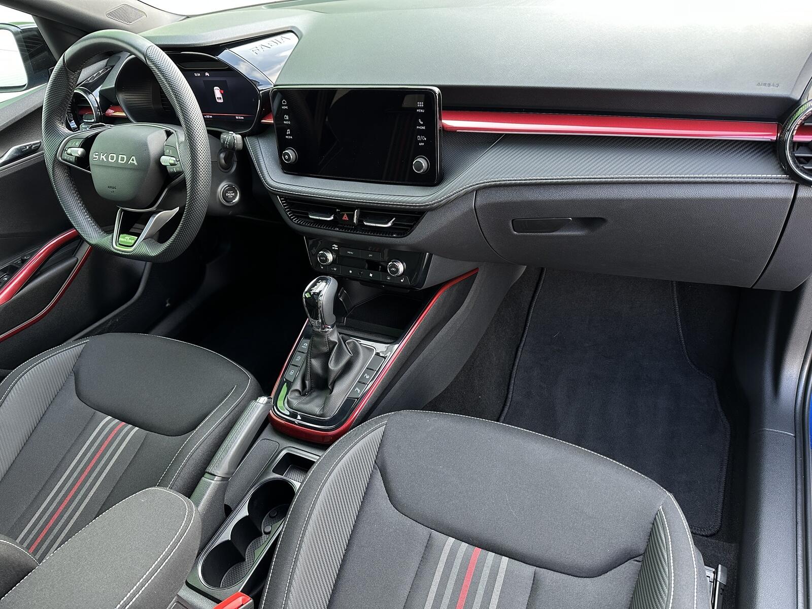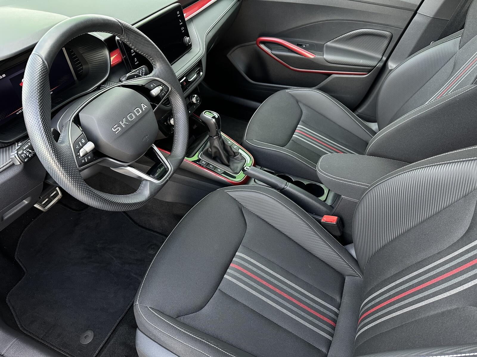 130/11106 Škoda Fabia Monte Carlo 1.5TSi DSG 110kW/150PS, 7st. Automatická převodovka DSG, Tovární záruka Škoda Auto 5let/100.000km, Výbava vozu: Paket City TOP - (Parkovací kamera vzadu, Parkovací senzory vpředu - PDC, KESSY s Alarmem, Volba jízdního režimu, Virtualní Cockpit 10, Automatické parkování), Panoramatická střecha, Rezervní ocelové kolo, Kola z lehkých slitin ALU Škoda LIBRA 7Jx18 Černá/Leštěná, Bi-LED přední světlomety, Vyhřívaný multifunkční kožený volant pro DSG s pádly pod volantem - výškově a podélně nastavitelný, Bezklíčové odemykání a startování - KESSY, Virtuální Cockpit, Bezdrátové nabíjení telefonu, Bezdrátový Smartlink, Ambientní LED osvětlení interiéru, Dvouzónová automatická klimatizace Climatronic, Sportovní přední sedadla, Bederní opěrky na předních sedadlech, Vyhřívaná přední sedadla s oddělenou regulací, Front Assist – asistent varování a brzdění při hrozící kolizi s vozidly, chodci a cyklisty, Asistent vedení v jízdním pruhu - Lane Assist, Rozpoznávání dopravních značek, Asistent rozpoznání únavy řidiče, Asistent rozjezdu do kopce, Asistent dálkových světel, Parkovací kamera vzadu, Parkovací senzory přední a zadní - PDC, Nouzové volání SOS - eCall, Deaktivace airbagu spolujezdce, 6x Airbag, ABS, ESP, Vyhřívané ostřikovače čelního skla, Automaticky zatmavovací vnitřní zpětné zrcátko, Vnější zpětná zrcátka elektricky sklopná, nastavitelná a vyhřívaná, Elektrické ovládání oken vpředu i vzadu, Zatmavená zadní okna - Sunset, Loketní opěrka s Jumbo Boxem, Výškově nastavitelné sedadlo řidiče a spolujezdce, Kožená hlavice řadicí páky a madlo ruční brzdy, Infotainment Bolero 8, DAB, 6x reproduktor, 2x USB-C vzadu, Apple konektivita, Smartlink, 3x Isofix a Top Tether – 1x vpředu, 2x vzadu, Servisní kniha + dokumentace Škoda Auto, Možnost odpočtu DPH 21%, Skladem - ihned k odběru.