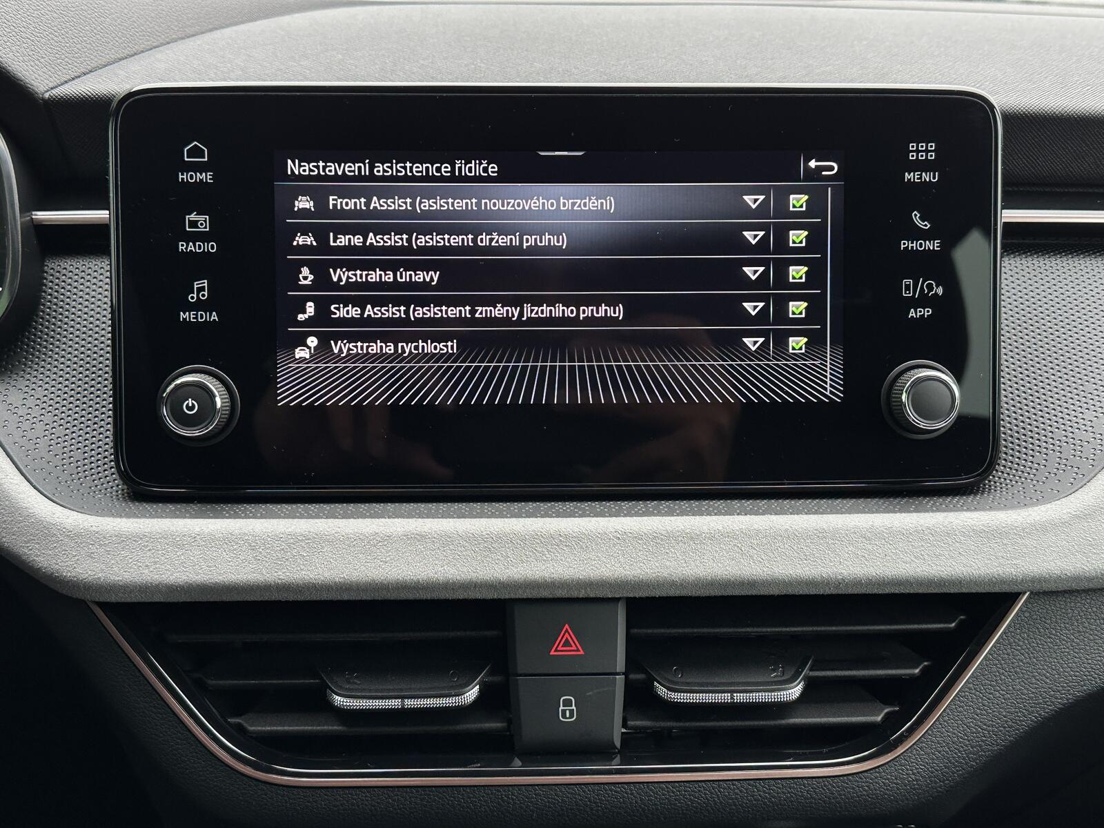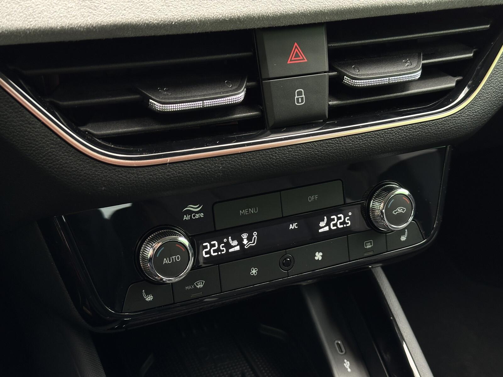 386/11063 Škoda Kamiq Premium 1.0TSi 85kW/116PS, 6st. Manuální převodovka, Tovární záruka Škoda Auto 5let/100.000km, Výbava vozu: LED světlomety s LED denním svícením, Upozornění na únavu řidiče, LED zadní světla, Asistent rozjezdu do kopce, Přední mlhové světlomety, Tempomat, Front Assist – s varováním a brzděním při hrozící kolizi s vozidly, chodci a cyklisty, 6× Airbag, Deaktivace airbagu spolujezdce, Lane Assist – Asistent udržování v jízdním pruhu, 3× ISOFIX a Top Tether – 1× vpředu, 2× vzadu, Zadní parkovací senzory – PDC, Rozpoznávání dopravních značek, Startování tlačítkem a centrální zamykání s dálkovým ovládáním, Světelný senzor, Loketní opěrka s Jumbo Boxem, Elektrické ovládání oken vpředu i vzadu, 2× USB-C, 12V zásuvka vpředu i v zavazadlovém prostoru, Sada na opravu pneumatik, Vyhřívaná přední sedadla, Hlavice řadicí páky a madlo ruční brzdy z kůže, Výškově nastavitelná sedadla řidiče a spolujezdce, Bederní opěrky na předních sedadlech, Nouzový systém tísňového volání SOS eCall+, Dekorativní obložení ze šedé Suedia, rámečky v měděném provedení, Čalounění sedadel – látka, Dvoubarevné LED ambientní osvětlení, Střešní nosič – stříbrný, TOP LED zadní světla s animovanými směrovkami, Corner funkce mlhových světlometů, Elektricky sklopná vnější zpětná zrcátka s automatickým stmíváním na straně řidiče, Vnitřní zpětné zrcátko s automatickým stmíváním, Dešťový senzor, Bezdrátové nabíjení mobilních telefonů s chlazením, Zadní loketní opěrka, Vyhřívaný multifunkční kožený volant pro DSG s pádly řazení pod volantem, Sunset – zatmavená zadní okna, Dvouzónová automatická klimatizace Climatronic, Infotainment – 8 reproduktorů, bezdrátový SmartLink, Kola z lehkých slitin ALU Škoda STRATOS 6,5J×17 stříbrná, Side Assist – Asistent hlídání mrtvého úhlu, Zadní parkovací kamera – KAMERA, Přední parkovací senzory – PDC, Alarm, Virtuální kokpit 10, Virtuální pedál – elektrické otevírání víka kufru pohybem nohy pod zavazadlovým prostorem, KESSY – bezklíčové zamykání a startování, Volba jízdního režimu, Nový vůz ČR, Servisní kniha + dokumentace Škoda Auto, Možnost odpočtu DPH 21%, Skladem - ihned k odběru.