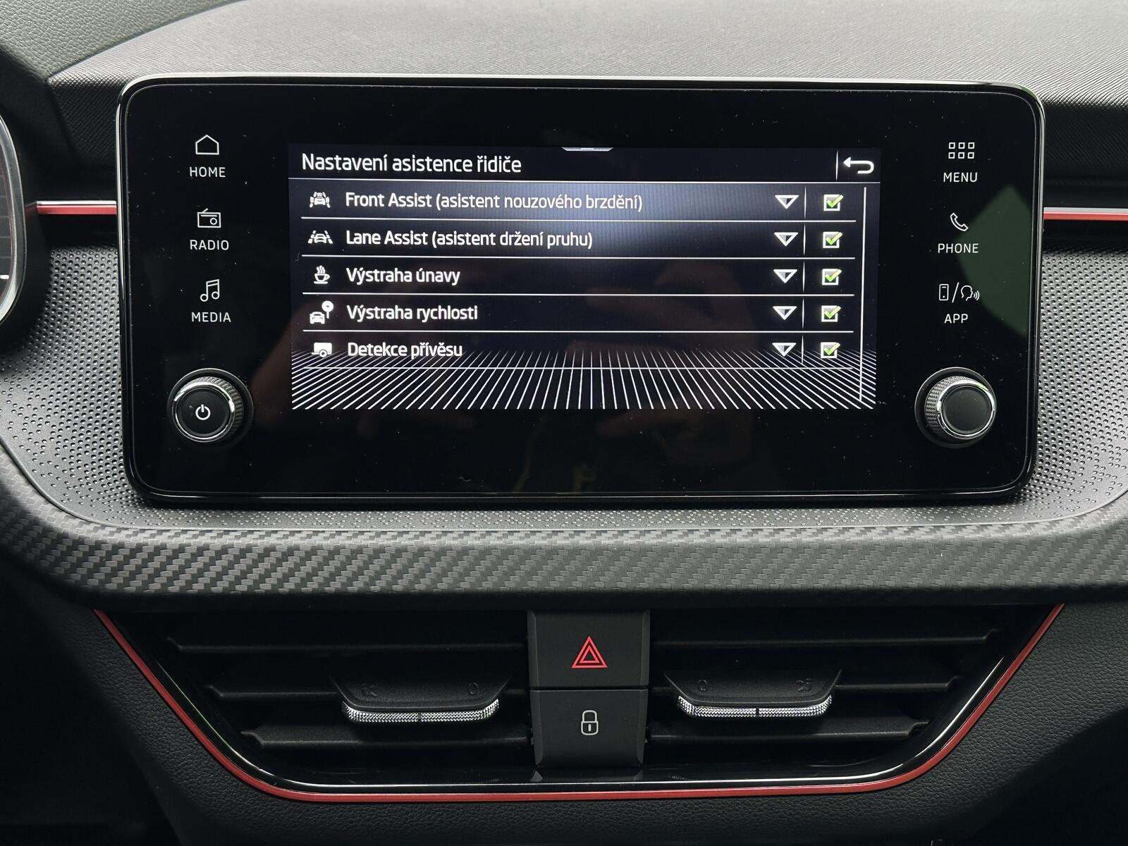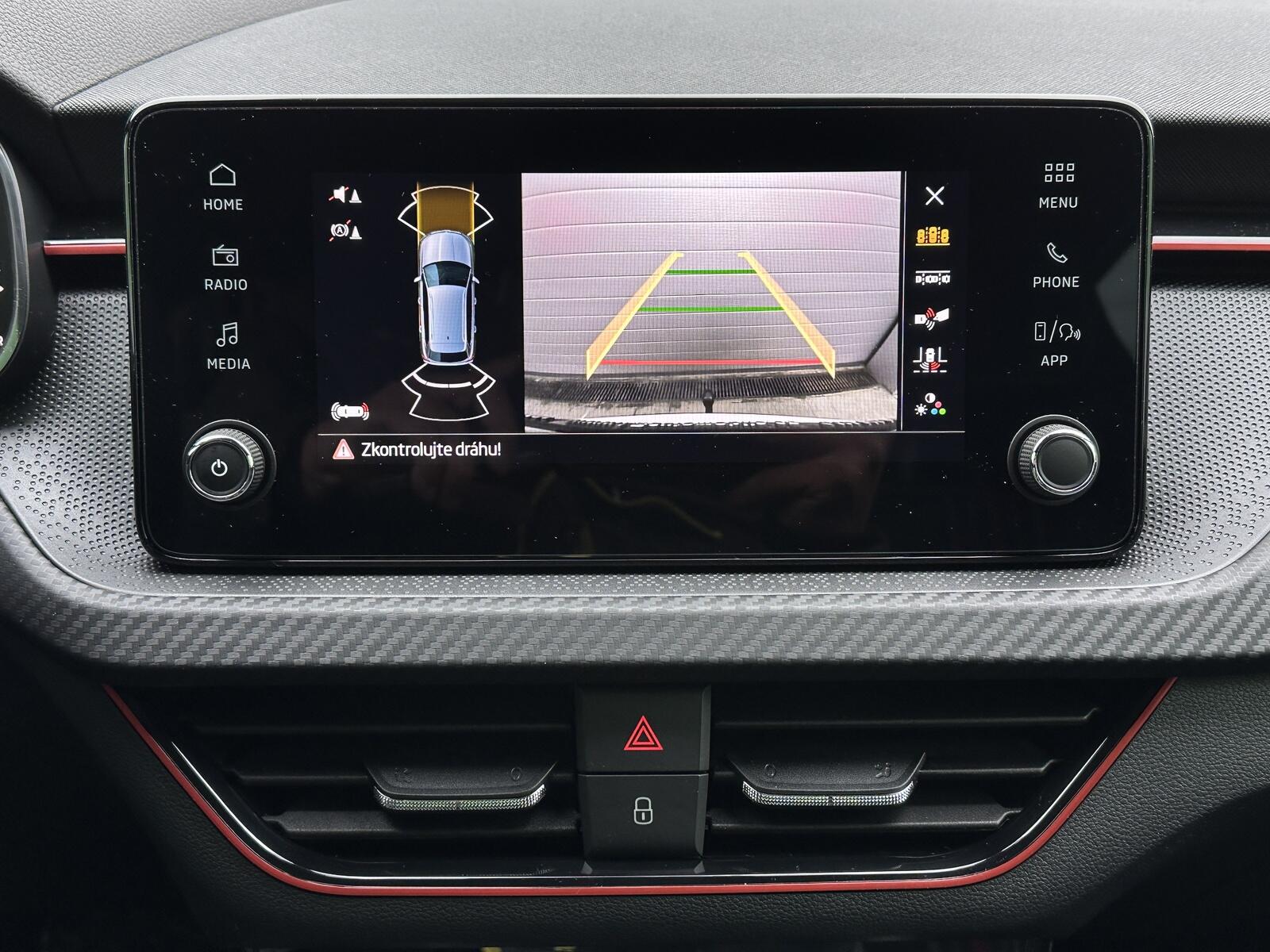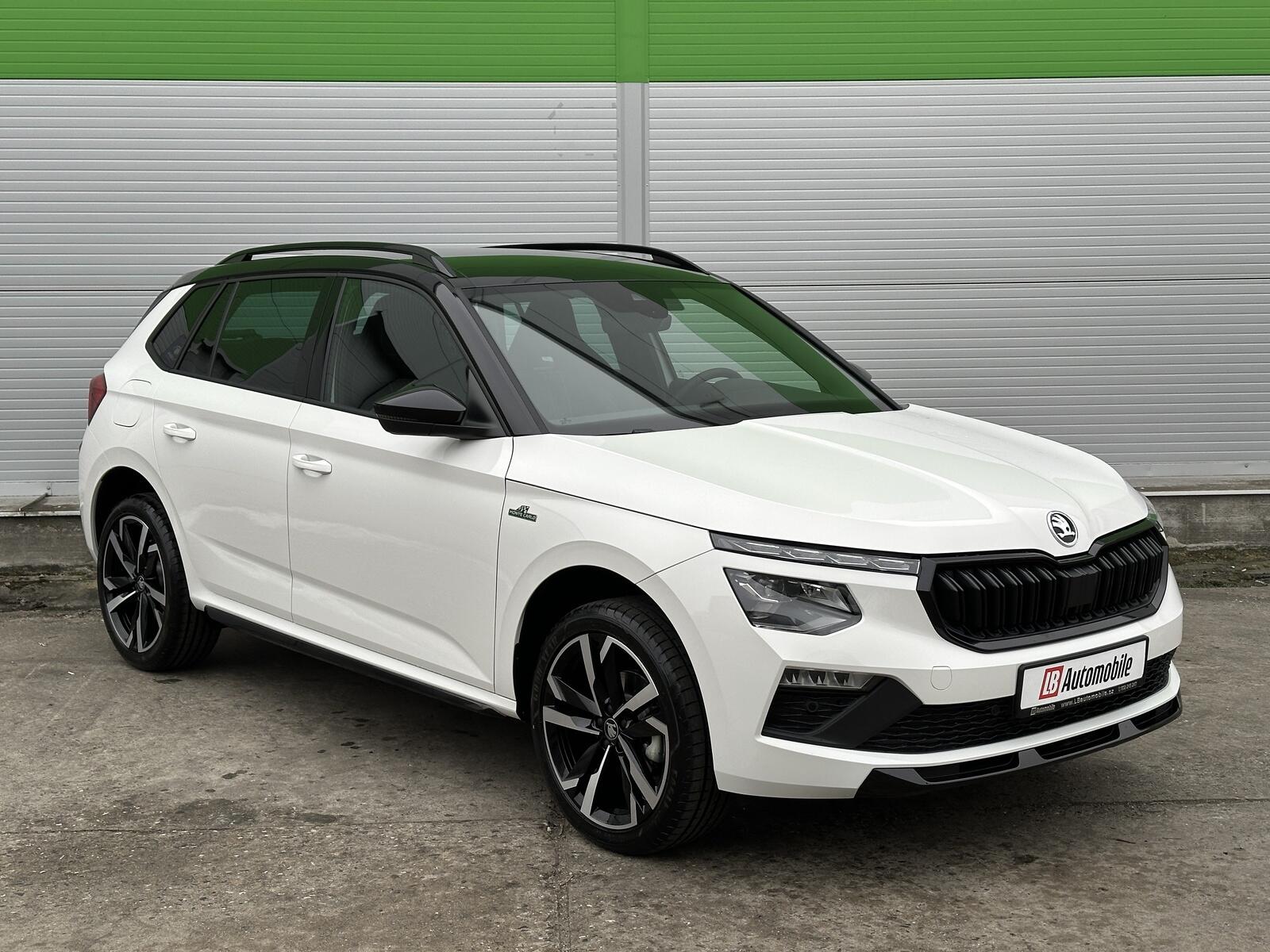 371/11056 Škoda Kamiq Monte Carlo 1.0TSi 85kW/116PS, 7.st Automatická převodovka, Tovární záruka Škoda Auto 5let/100.000km, Výbava vozu: Tažné zařízení sklopné - el. odjistitelné, Vyhřívané čelní sklo, Dvojitá podlaha v zavazadlovém prostoru, Ocelové rezervní kolo, Kola z lehkých slitin ALU Škoda URSA 7Jx18 Černá/Leštěná, Panoramatická střecha, Parkovací kamera vzadu, Parkovací senzory vpředu a vzadu - PDC P/Z, Asistent udržování v jízdním pruhu - Lane Assist, Asistent varování a brzdění při hrozící kolizi s vozidly, chodci a cyklisty - Front Assist, Asistent rozpoznání únavy řidiče, Asistent rozjezdu do kopce, Rozpoznávání dopravních značek, Systém Start/Stop, Volba jízdního režimu, Bezklíčové odemykání a startování - KESSY, Tempomat s omezovačem rychlosti, Vyhřívaný multifunkční kožený volant pro DSG s pádly pod volantem - výškově a podélně nastavitelný, Kožená hlavice řadicí páky a madlo ruční brzdy, Sportovní přední sedadla, Bederní opěrky na předních sedadlech, Výškově nastavitelné sedadlo řidiče a spolujezdce, Dvouzónová automatická klimatizace - Climatronic, Vyhřívaná přední sedadla s oddělenou regulací, Loketní opěrka s Jumbo Boxem, Zadní loketní opěrka, Sportovní interiér Monte Carlo s černou stropnicí, Potah sedadel – látka, Vnitřní zpětné zrcátko s automatickým stmíváním, Elektrické ovládání oken vpředu i vzadu, Zatmavená zadní okna - Sunset, Vnější zpětná zrcátka elektricky sklopná, nastavitelná a vyhřívaná, Virtuální Cockpit, Infotainment Media 8, Bezdrátový Smartlink, Bluetooth, DAB, 8x Reproduktor, Bezdrátové nabíjení telefonu, 2x USB-C a 12V zásuvka předu i vzadu, Ambientní LED osvětlení interiéru, Matrix-LED přední světlomety, Mlhové světlomety, LED zadní světla s animovanými ukazateli směru jízdy, Senzor světla a deště, Kontrola tlaku v pneumatikách, Sportovní kryty pedálů, Dekorativní prahové lišty, Černě lakované doplňky karoserie, 3x Isofix a Top Tether, ABS, ESP, 6x Airbag, Deaktivace airbagu spolujezdce, Centrální zamykání s dálkovým ovládáním, Alarm, Nouzové volání SOS - eCall, Zatížení nebržděného tažného zařízení - 610kg, Zatížení bržděného tažného zařízení - 1200kg, Nový vůz s registrací 25. 11. 2025. Servisní kniha + dokumentace Škoda Auto, Možnost odpočtu DPH 21%, Termín odběru a předání od 21. 05. 2026.