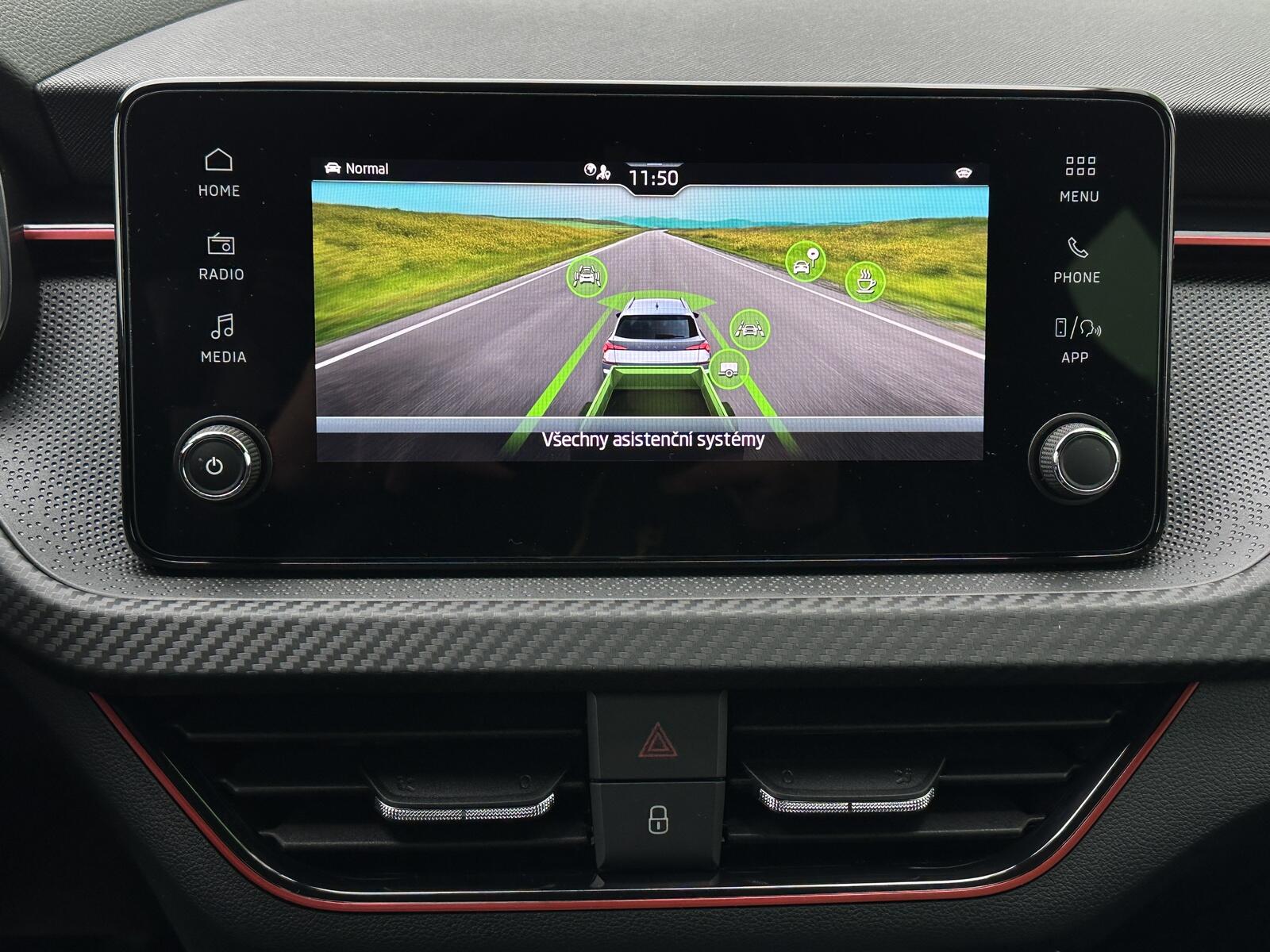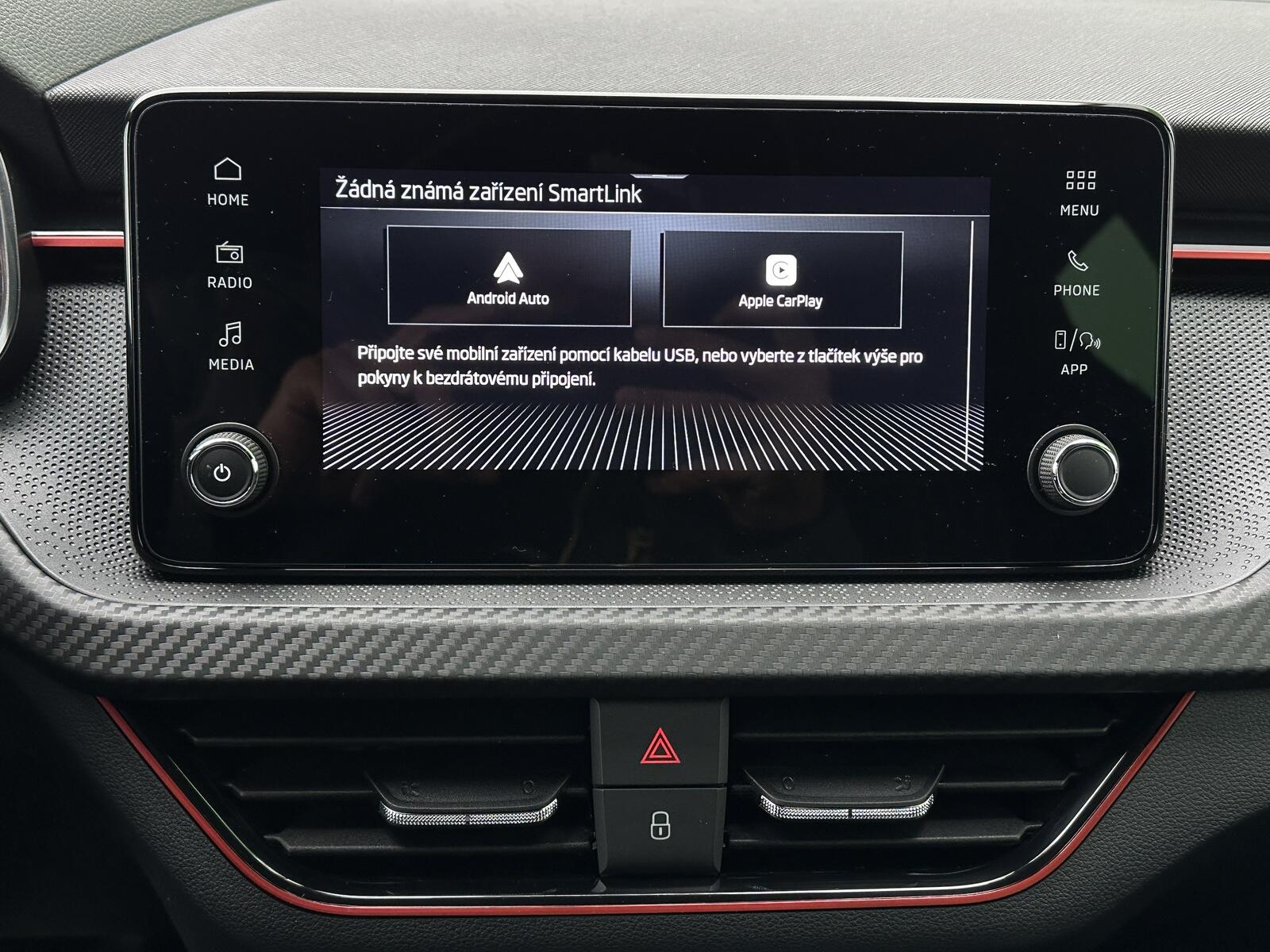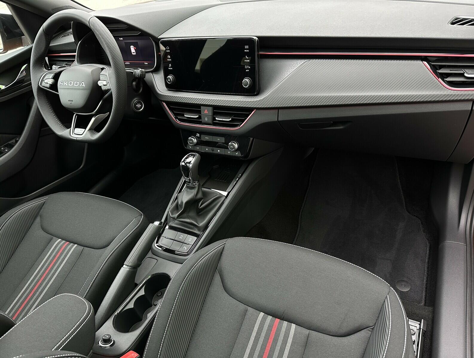 371/11056 Škoda Kamiq Monte Carlo 1.0TSi 85kW/116PS, 7.st Automatická převodovka, Tovární záruka Škoda Auto 5let/100.000km, Výbava vozu: Tažné zařízení sklopné - el. odjistitelné, Vyhřívané čelní sklo, Dvojitá podlaha v zavazadlovém prostoru, Ocelové rezervní kolo, Kola z lehkých slitin ALU Škoda URSA 7Jx18 Černá/Leštěná, Panoramatická střecha, Parkovací kamera vzadu, Parkovací senzory vpředu a vzadu - PDC P/Z, Asistent udržování v jízdním pruhu - Lane Assist, Asistent varování a brzdění při hrozící kolizi s vozidly, chodci a cyklisty - Front Assist, Asistent rozpoznání únavy řidiče, Asistent rozjezdu do kopce, Rozpoznávání dopravních značek, Systém Start/Stop, Volba jízdního režimu, Bezklíčové odemykání a startování - KESSY, Tempomat s omezovačem rychlosti, Vyhřívaný multifunkční kožený volant pro DSG s pádly pod volantem - výškově a podélně nastavitelný, Kožená hlavice řadicí páky a madlo ruční brzdy, Sportovní přední sedadla, Bederní opěrky na předních sedadlech, Výškově nastavitelné sedadlo řidiče a spolujezdce, Dvouzónová automatická klimatizace - Climatronic, Vyhřívaná přední sedadla s oddělenou regulací, Loketní opěrka s Jumbo Boxem, Zadní loketní opěrka, Sportovní interiér Monte Carlo s černou stropnicí, Potah sedadel – látka, Vnitřní zpětné zrcátko s automatickým stmíváním, Elektrické ovládání oken vpředu i vzadu, Zatmavená zadní okna - Sunset, Vnější zpětná zrcátka elektricky sklopná, nastavitelná a vyhřívaná, Virtuální Cockpit, Infotainment Media 8, Bezdrátový Smartlink, Bluetooth, DAB, 8x Reproduktor, Bezdrátové nabíjení telefonu, 2x USB-C a 12V zásuvka předu i vzadu, Ambientní LED osvětlení interiéru, Matrix-LED přední světlomety, Mlhové světlomety, LED zadní světla s animovanými ukazateli směru jízdy, Senzor světla a deště, Kontrola tlaku v pneumatikách, Sportovní kryty pedálů, Dekorativní prahové lišty, Černě lakované doplňky karoserie, 3x Isofix a Top Tether, ABS, ESP, 6x Airbag, Deaktivace airbagu spolujezdce, Centrální zamykání s dálkovým ovládáním, Alarm, Nouzové volání SOS - eCall, Zatížení nebržděného tažného zařízení - 610kg, Zatížení bržděného tažného zařízení - 1200kg, Nový vůz s registrací 25. 11. 2025. Servisní kniha + dokumentace Škoda Auto, Možnost odpočtu DPH 21%, Termín odběru a předání od 21. 05. 2026.