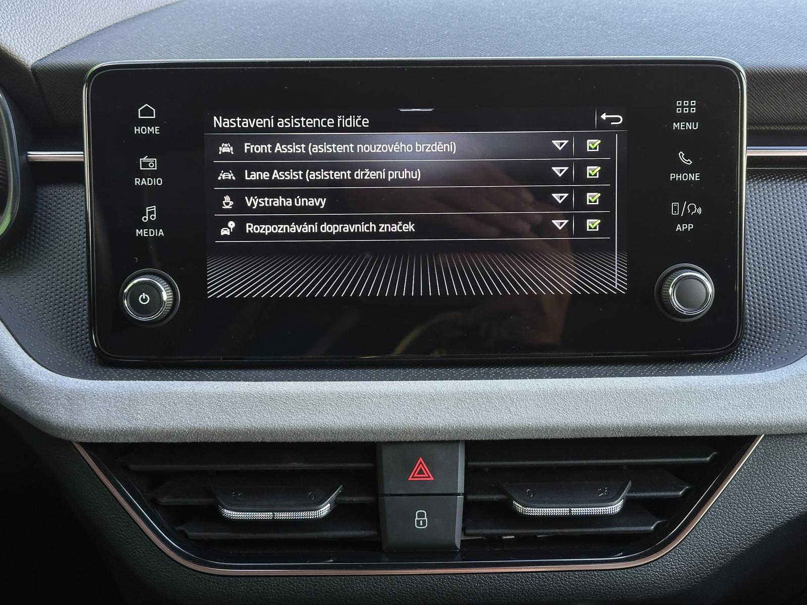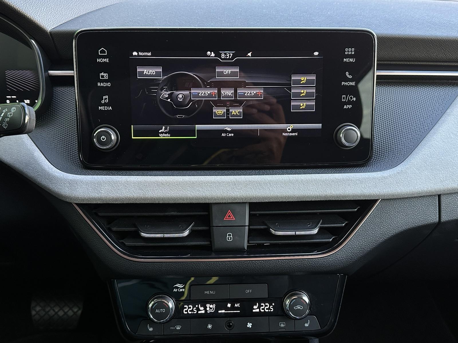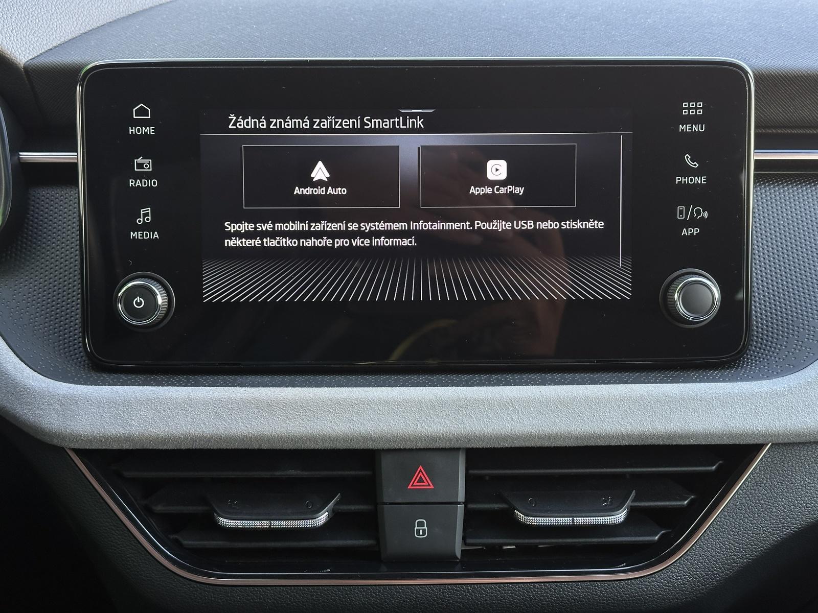 38/10883 Škoda Kamiq TOP Selection 1.0TSi DSG 85kW/116PS, 7st. Automatická převodovka, Tovární záruka Škoda Auto 5let/100.000km, Výbava vozu: Paket City PLUS - (Zadní parkovací kamera, Parkovací senzory vpředu - PDC, KESSY s Alarmem - bezklíčové zamykání a startování včetně Alarmu, Volba jízdního režimu), Tažné zařízení sklopné - el. odjistitelné, Rezervní ocelové kolo, Kola z lehkých slitin ALU Škoda STRATOS 6,5Jx17, Vyhřívané čelní sklo, Multifunkční vyhřívaný kožený volant pro DSG s pádly řazení pod volantem, Řadicí páka z kůže, Sunset - zatmavená zadní okna, Mlhová světla s přisvěcováním do zatáček, Virtuální Cockpit Mini 8, Dvouzónová automatická klimatizace Climatronic, Elektricky sklopná vnější zpětná zrcátka s automatickým stmíváním na straně řidiče, Lane Assist - Asistent pro vedení v jízdním pruhu, Front Assist – asistent varování a brzdění při hrozící kolizi s vozidly, chodci a cyklisty, Automatické stmívání vnitřního zpětného zrcátka, LED zadní světlomety s animovaným ukazatelem směru jízdy, LED hlavní světlomety, USB-C – datový i nabíjecí port s vyšším výkonem, Asistent rozpoznání únavy, Bezdrátový Smartlink - zrcadlení aplikací z telefonu na Infotainment vozu, Bluetooth s bezdrátovým nabíjením, 8 reproduktorů, DAB – digitální příjem rádia, Denní svícení s asistenčním světlem a funkcí Coming Home/Leaving Home, Světelný a dešťový senzor, Vyhřívaná přední sedadla, Vyhřívané trysky ostřikovačů čelního skla, Zadní loketní opěrka, Středová loketní opěrka Jumbobox, Manuálně nastavitelná bederní opěrka v opěradlech předních sedadel, Zadní parkovací senzory - PDC, Start/Stop systém, Tempomat s omezovačem rychlosti, Asistent rozjezdu do kopce, Centrální zamykání KESSY, Dálkové centrální zamykání, Elektronický stabilizační program - ESP, 6x Airbag, Deaktivace airbagu spolujezdce, Střešní nosič, Zadní stěrač s ostřikovačem, Potahy sedadel - látka, Mechanické výškové nastavení obou předních sedadel, Zadní opěrky hlavy, 12V zásuvka v zavazadlovém prostoru, Servisní kniha + dokumentace Škoda Auto, Možnost odpočtu DPH 21%, Skladem - ihned k odběru.