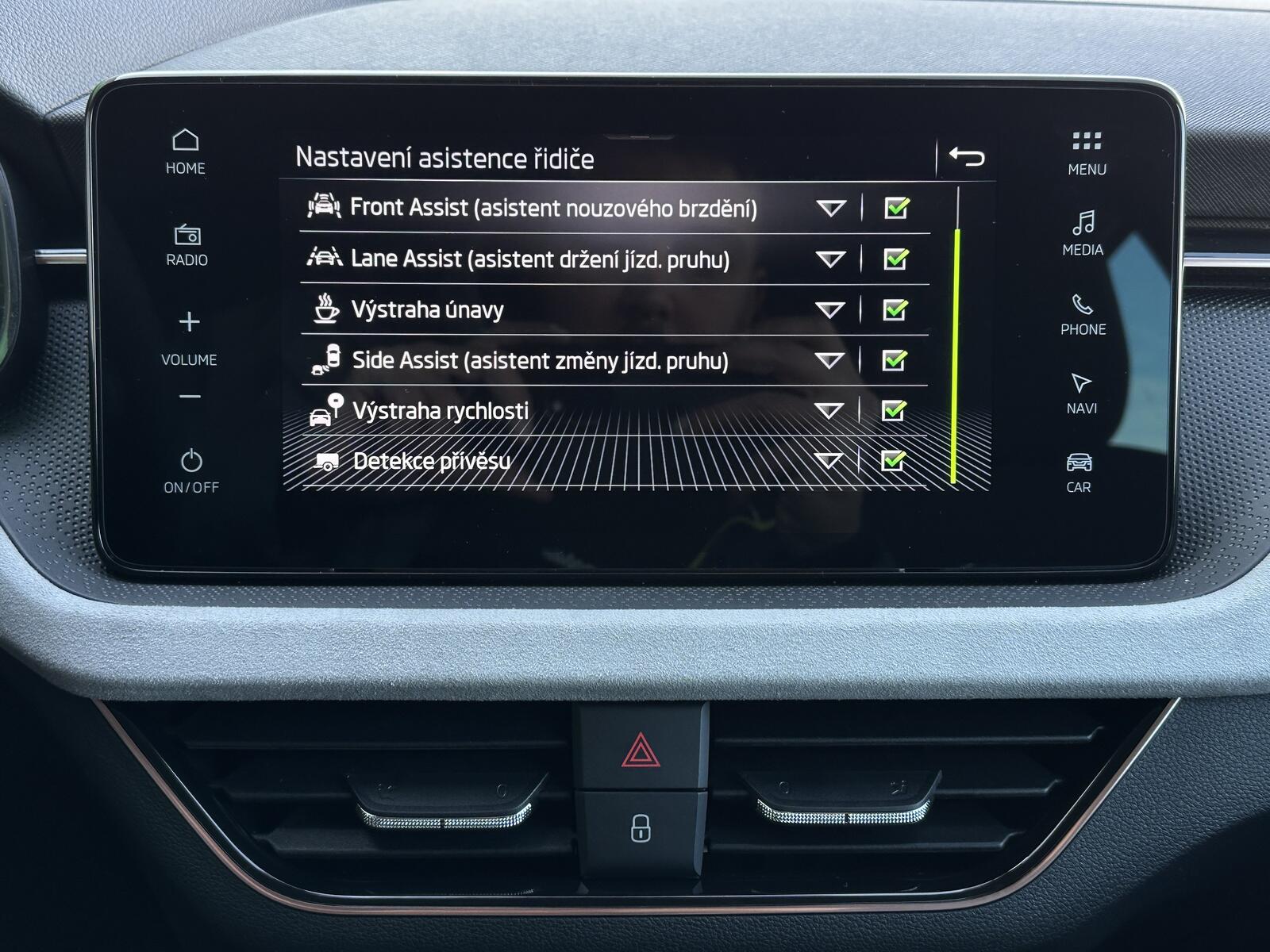 403/11234 Škoda Kamiq Premium 1.5TSi 110kW/150PS, 7st. Automatická převodovka DSG, Tovární záruka Škoda Auto 5let/100.000km, Výbava vozu: Paket Asistovaná jízda 1.5 PLUS - (Adaptivní tempomat - ACC, Lane Assist Plus - Adaptivní vedení v jízdním pruhu, Side Assist - asistent varování mrtvého úhlu), Paket NAVI - (Infotainment s navigací, Webradio, Virtuální Cockpit, Digitální asistentka Laura), Tažné zařízení sklopné - el. odjistitelné, Dvojitá podlaha zavazadlového prostoru, Kola z lehkých slitin ALU Škoda KAJAM AERO 6,5J×17 stříbrná, Vyhřívané čelní sklo, LED světlomety s LED denním svícením, Upozornění na únavu řidiče, LED zadní světla, Asistent rozjezdu do kopce, Přední mlhové světlomety, Tempomat, Front Assist – s varováním a brzděním při hrozící kolizi s vozidly, chodci a cyklisty, 6× Airbag, Deaktivace airbagu spolujezdce, Lane Assist – Asistent udržování v jízdním pruhu, 3× ISOFIX a Top Tether – 1× vpředu, 2× vzadu, Zadní parkovací senzory – PDC/Z, Rozpoznávání dopravních značek, Startování tlačítkem a centrální zamykání s dálkovým ovládáním, Světelný senzor, Loketní opěrka s Jumbo Boxem, Elektrické ovládání oken vpředu i vzadu, 2× USB-C, 12V zásuvka vpředu i v zavazadlovém prostoru, Sada na opravu pneumatik, Vyhřívaná přední sedadla, Hlavice řadicí páky a madlo ruční brzdy z kůže, Výškově nastavitelná sedadla řidiče a spolujezdce, Bederní opěrky na předních sedadlech, Nouzový systém tísňového volání SOS eCall+, Dekorativní obložení ze šedé Suedia, rámečky v měděném provedení, Čalounění sedadel – látka, Dvoubarevné LED ambientní osvětlení, Střešní nosič – stříbrný, TOP LED zadní světla s animovanými směrovkami, Corner funkce mlhových světlometů, Elektricky sklopná vnější zpětná zrcátka s automatickým stmíváním na straně řidiče, Vnitřní zpětné zrcátko s automatickým stmíváním, Dešťový senzor, Bezdrátové nabíjení mobilních telefonů s chlazením, Zadní loketní opěrka, Vyhřívaný multifunkční kožený volant pro DSG s pádly řazení pod volantem, Sunset – zatmavená zadní okna, Dvouzónová automatická klimatizace Climatronic, Infotainment – 8 reproduktorů, bezdrátový SmartLink, Side Assist – Asistent hlídání mrtvého úhlu, Zadní parkovací kamera – KAMERA, Přední parkovací senzory – PDC/P, Alarm, Virtuální kokpit 10, Virtuální pedál – elektrické otevírání víka kufru pohybem nohy pod zavazadlovým prostorem, KESSY – bezklíčové zamykání a startování, Volba jízdního režimu, Nový vůz ČR, Servisní kniha + dokumentace Škoda Auto, Možnost odpočtu DPH 21%, Skladem - ihned k odběru.