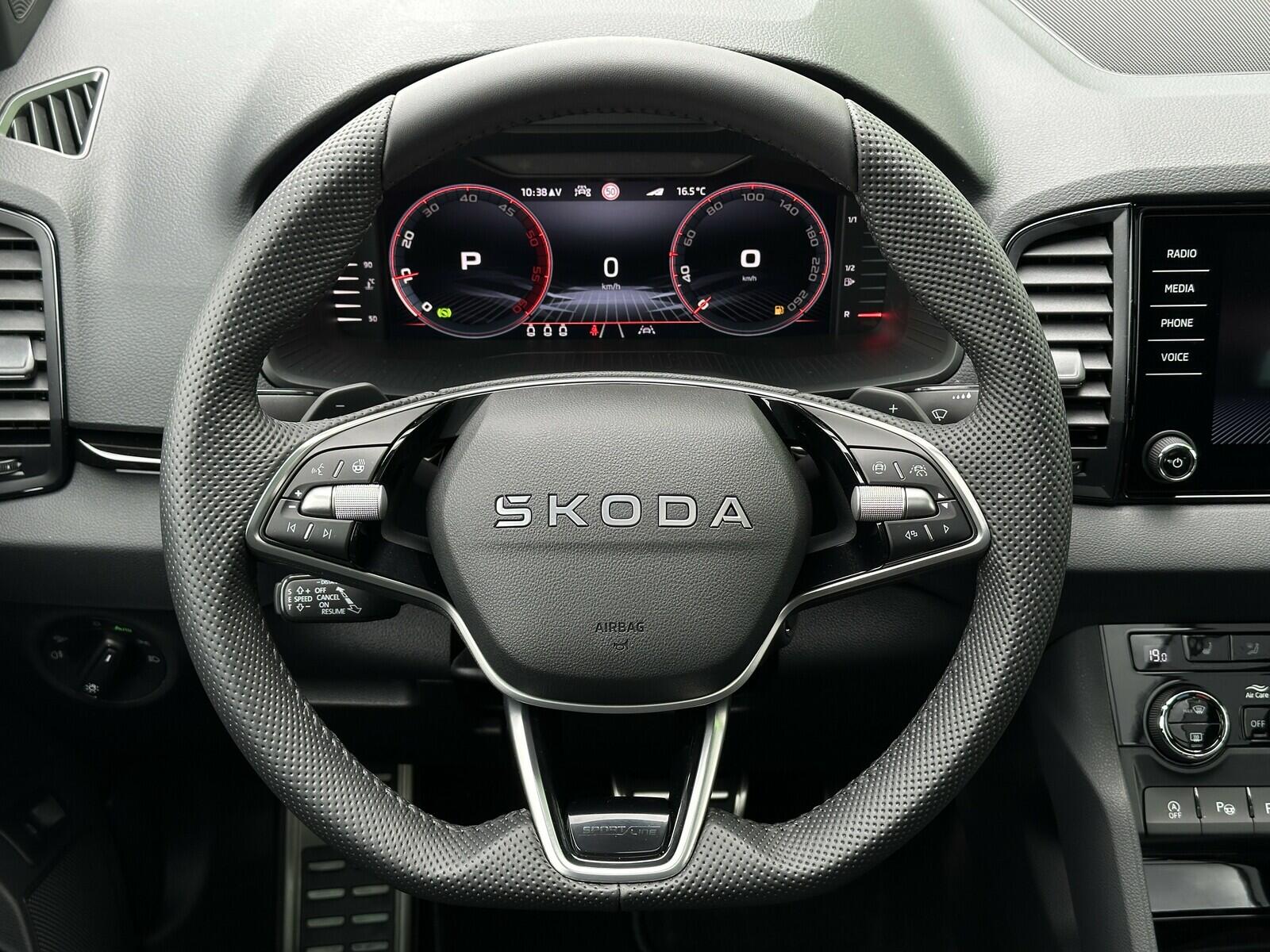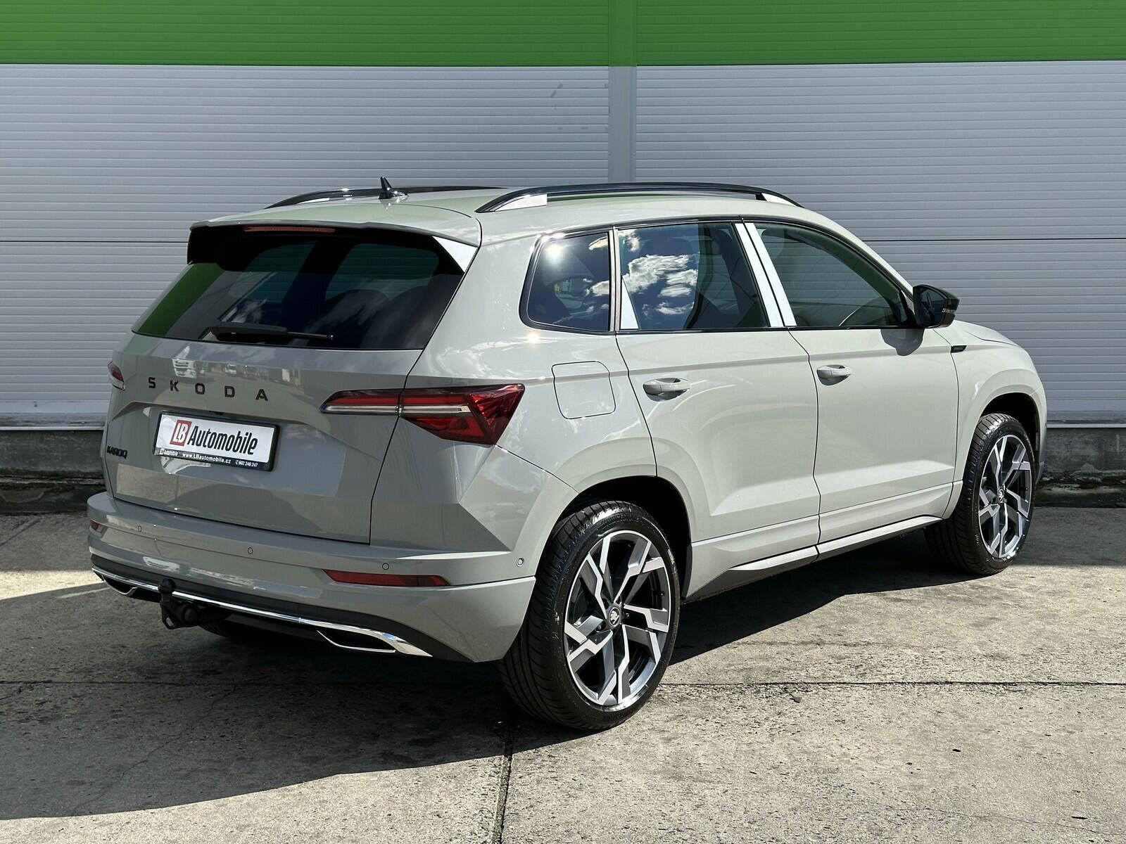 376/10986 Škoda Karoq Sportline 1.5TSi DSG 110kW/150PS, 7st. Automatická převodovka, Tovární záruka Škoda Auto 5let/100.000km, Černá Magic metalíza, Výbava vozu: Tažné zařízení sklopné - el. odjistitelné, Kola z lehkých slitin ALU Škoda SAGITARIUS 8Jx19 Antracitová/Leštěná, Asistovaná jízda 2.0 - (Prediktivní tempomat - ACC, Rozpoznávání dopravních značek, Adaptivní asistent pro udržování jízdního pruhu – Lane Assist+, Asistent hlídání mrtvého úhlu – Side Assist, Automatické parkování), Panoramatický kamerový systém 360°KAMERA, Parkovací senzory přední a zadní - PDC P/Z, Asistent varování a brzdění při hrozící kolizi s vozidly, chodci a cyklisty - Front Assist, Asistent nouzového zastavení - Emergency Assist, Asistent pro jízdu v zácpě, Asistent rozpoznání únavy řidiče, Asistent rozjezdu do kopce, Start/Stop systém, Volba jízdního režimu, Bezklíčové odemykání a startování - KESSY, Dvouzónová automatická klimatizace - Climatronic, Vyhřívané čelní sklo, Vyhřívané trysky ostřikovačů, Vyhřívaný multifunkční kožený volant pro DSG s pádly pod volantem - výškově a podélně nastavitelný, Kožená hlavice řadicí páky, Výškově nastavitelná sportovní přední sedadla s bederními opěrkami, Vyhřívaná sedadla vpředu i vzadu, Loketní opěrka s Jumbo Boxem, Zadní loketní opěrka, Potah sedadel - látka, Automaticky zatmavovací vnitřní zpětné zrcátko, Elektrické ovládání oken vpředu i vzadu, Zatmavená zadní okna - Sunset, Vnější zpětná zrcátka elektricky sklopná, nastavitelná a vyhřívaná, Infotainment 8 s Navigací, Bezdrátový Smartlink, Bluetooth, Hlasové ovládání - digitální asistentka Laura, Soundsystem CANTON - (10x reproduktor, Digitální ekvalizér), DAB - Digitální příjem rádia, Virtual Cockpit 10, Bezdrátové nabíjení telefonu, 2x USB-C vpředu, USB-C pro vnitřní zpětné zrcátko, Ambientní LED osvětlení interiéru, Matrix-LED hlavní světlomety, Ostřikovače předních světlometů, Top-LED zadní světla s animovanými směrovými světly, Mlhová světla, Senzor světla a deště, Kontrola tlaku v pneumatikách, Centrální zamykání s dálkovým ovládáním, Isofix a Top Tether - 2x vzadu, ABS, ESP, 8x Airbag, Deaktivace airbagu spolujezdce, Nouzové volání SOS - eCall, Dvojitá podlaha zavazadlového prosotru, Virtuální pedál - otevírání víka kufru pohybem nohy pod zavazadlovým prostorem, Sportovní kryty pedálů, Střešní nosič, Dekorativní prahové lišty, Černě lakované doplňky karoserie, Zatížení bržděného tažného zařízení - 1500kg, Zatížení nebržděného tažného zařízení - 700kg, Nový vůz bez registrace, Servisní kniha + dokumentace Škoda Auto, Možnost odpočtu DPH 21%, Skladem - ihned k odběru.