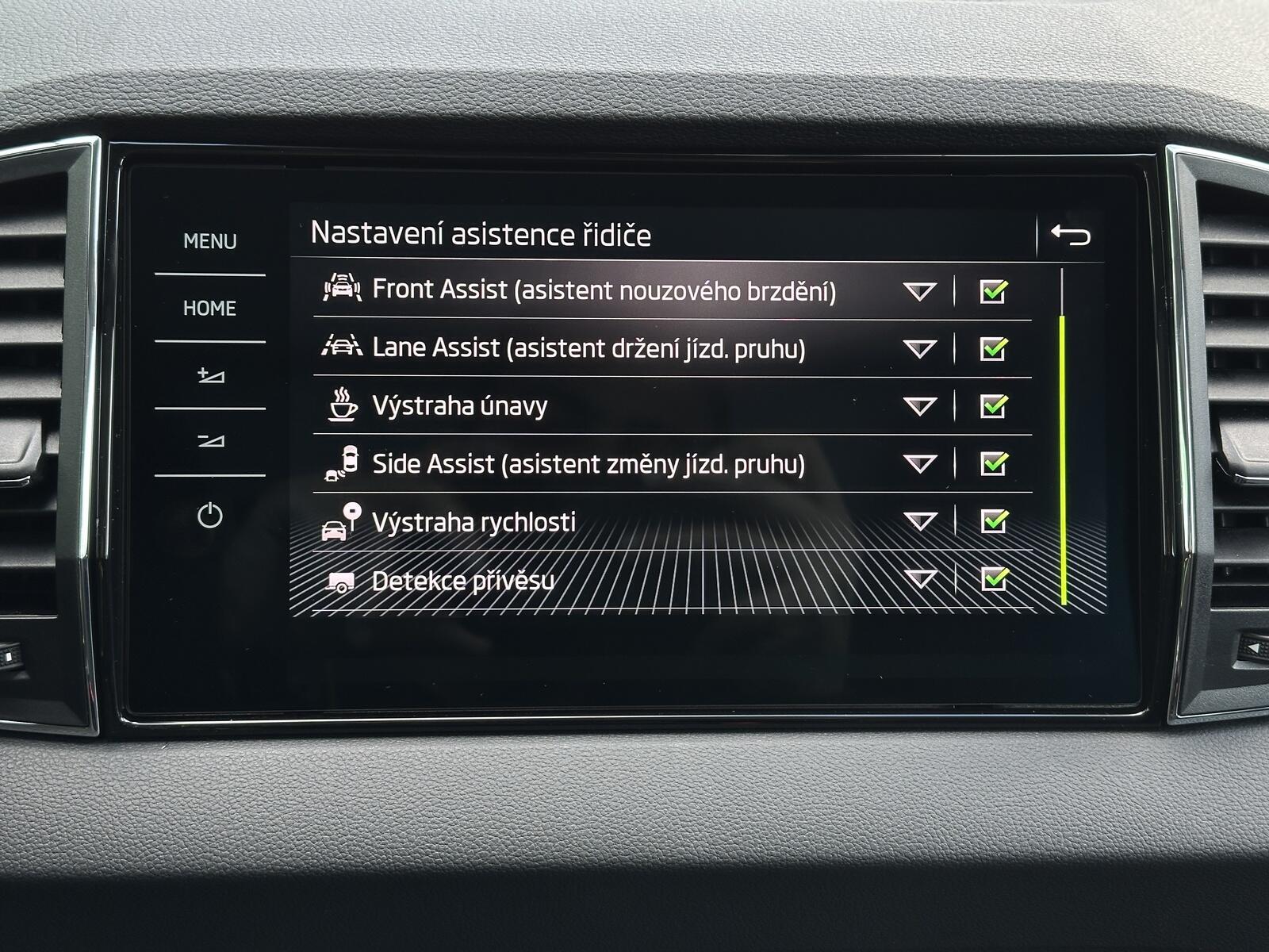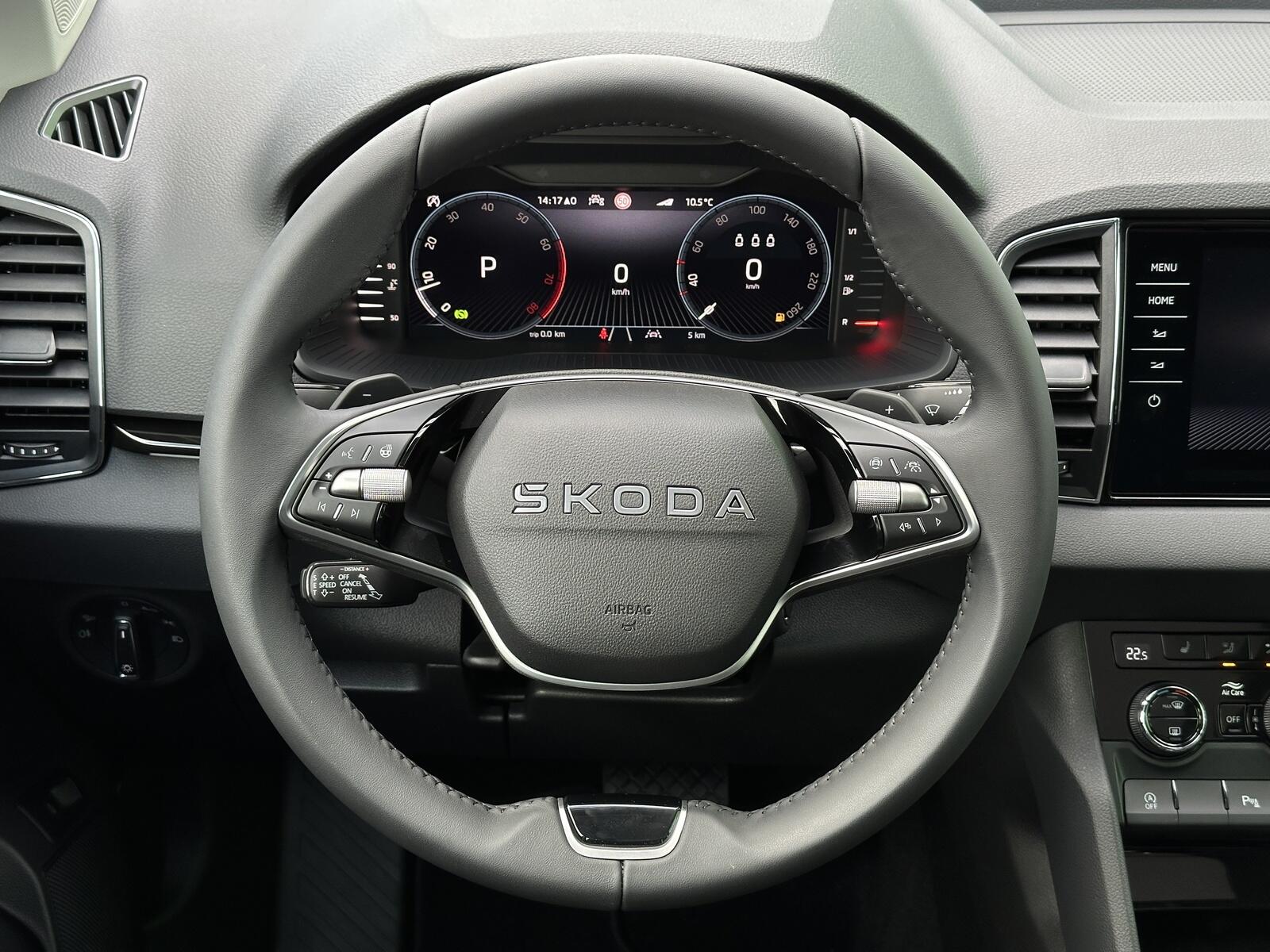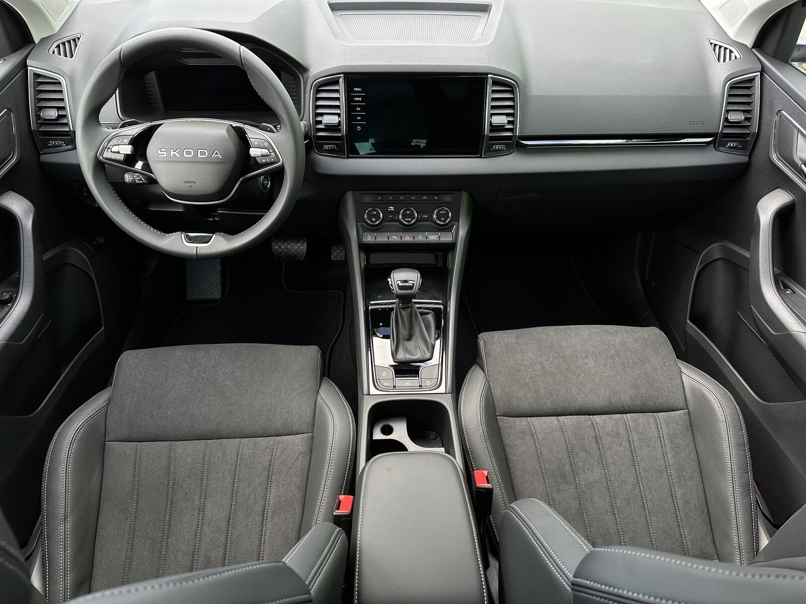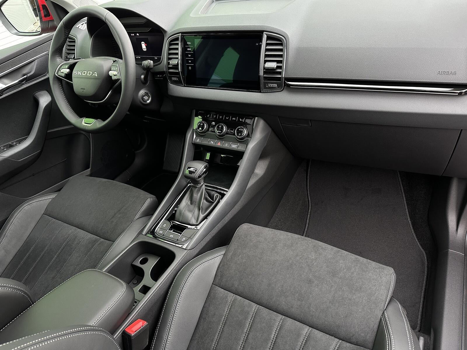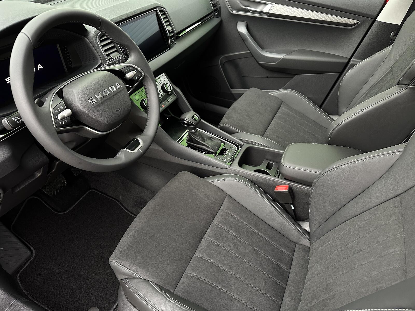 186/11113 Škoda Karoq Premium 1.5TSi DSG 110kW/150PS, 7st. Automatická převodovka, Tovární záruka Škoda Auto 5let/100.000km, Výbava vozu: Tažné zařízení sklopné - el. odjistitelné, Panoramatické střešní okno, Dvojitá podlaha zavazadlového prostoru, 230V zásuvka a nabíjecí port USB-C pro cestující vzadu, Kola z lehkých slitin ALU Škoda MIRAN 7Jx18 Černá/Leštěná, Interiér Lounge – černý, Potah sedadel – Suedia/Kůže, Ambientní LED osvětlení, Matrix-LED světlomety, Asistovaná jízda 1.5 PLUS – (Prediktivní adaptivní tempomat ACC, Adaptivní asistent udržování jízdního pruhu - Lane Assist+, Asistent mrtvého úhlu – Side Assist), Infotainment s Navigací 9, Bluetooth, Web rádio, Digitální asistentka Laura, Bezdrátový SmartLink, Adaptivní tempomat ACC, Parkovací senzory vpředu a vzadu – PDC, Ostřikovače světlometů, Parkovací kamera vzadu – KAMERA, KESSY – bezklíčové zamykání a startování, Nabíjecí box pro smartphone, Virtuální pedál, Virtuální Cockpit 10, Vyhřívaná přední a zadní sedadla, Vyhřívané čelní sklo, Volba jízdních režimů, LED zadní světla s animovanými směrovými ukazateli, Front Assist – s upozorněním a zabrzděním při hrozící kolizi s vozidly, chodci a cyklisty, 7x airbag, Asistent udržování jízdního pruhu – Lane Assist, Rozpoznávání dopravních značek, Přední mlhové světlomety, Asistent rozjezdu do kopce, Systém sledování únavy řidiče, 2x ISOFIX a Top Tether vzadu, Vnější zpětná zrcátka el. nastavitelná, sklopná, vyhřívaná s automatickým stmíváním na straně řidiče, Loketní opěrka vzadu s držákem nápojů, Automaticky stmívatelné vnitřní zpětné zrcátko, Elektronická parkovací brzda, Elektrické ovládání oken vpředu a vzadu, Sada na opravu pneumatik, Loketní opěrka vpředu, Škrabka na led ve víčku palivové nádrže, 12V zásuvka, Příprava pro tažné zařízení, Deštník pod sedadlem spolujezdce, Dvouzónová automatická klimatizace Climatronic, Výškově nastavitelná sedadla řidiče a spolujezdce s bederní opěrkou, Sunset, Nouzový systém volání SOS eCall+, Vyhřívaný multifunkční kožený volant pro DSG s pádly pro řazení pod volantem, Nový vůz ČR, Servisní kniha + kompletní dokumentace Škoda Auto, Možnost odpočtu DPH 21%, Skladem - ihned k odběru.