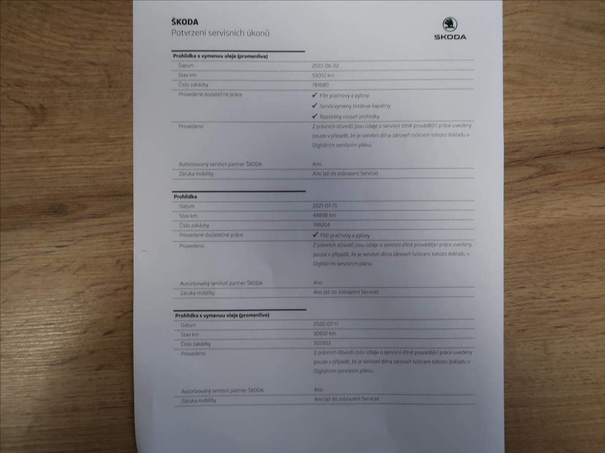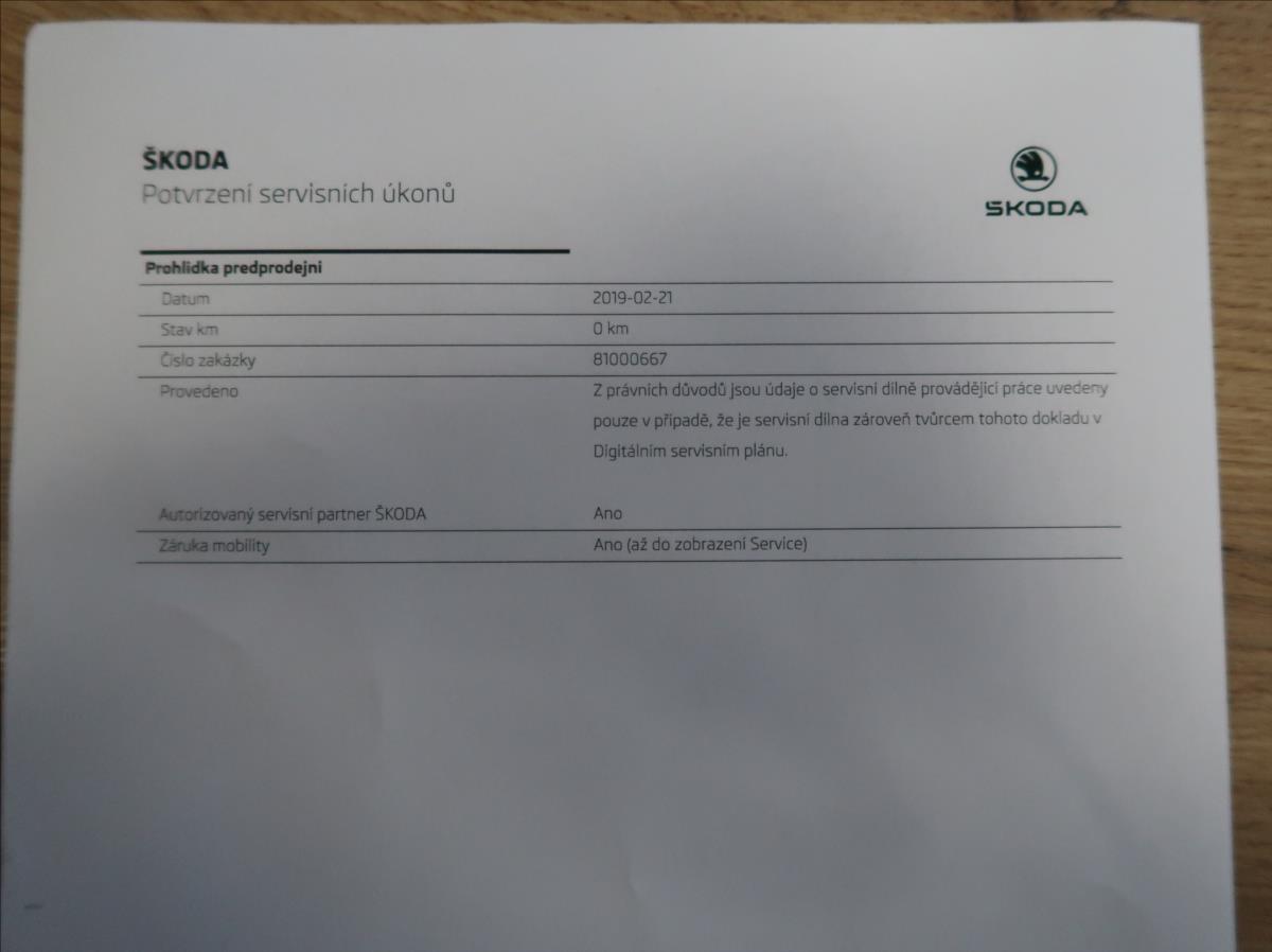 Vozidlo zakoupeno jako nové v České republice, řádně vedená servisní kniha, pravidelný servis v autorizovaném servise Škoda, automatická převodovka DSG, dvouzónová automatická klimatizace, adaptivní tempomat, parkovací senzory přední + zadní + kamera, vyhřívaná všechna sedadla, LED světlomety, satelitní navigace, možný protiúčet, možný prodej na splátky.