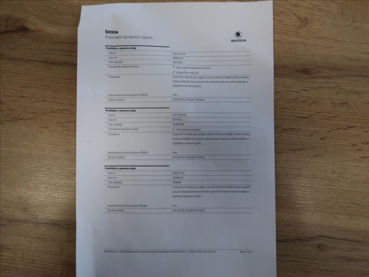 Cena bez DPH: 313 966,-Kč. Vozidlo zakoupeno jako nové v České republice, po prvním majiteli, řádně vedená servisní kniha, pravidelný servis v autorizovaném servise Škoda, výbava Style, LED přední světlomety, zadní parkovací senzory, tempomat, tažné zařízení, druhá sada letních pneu, dvouzónová automatická klimatizace, vyhřívaná přední sedadla + volant, možný odpočet DPH, možný protiúčet, možný prodej na splátky.