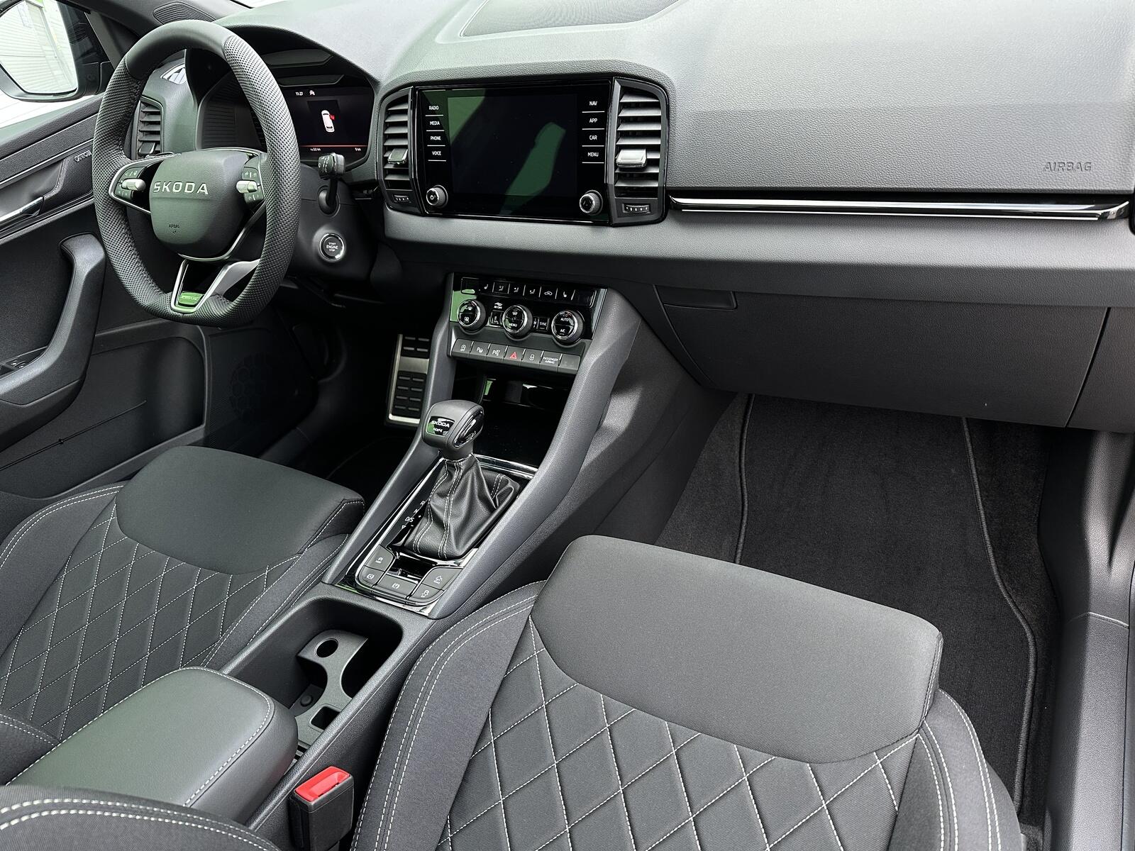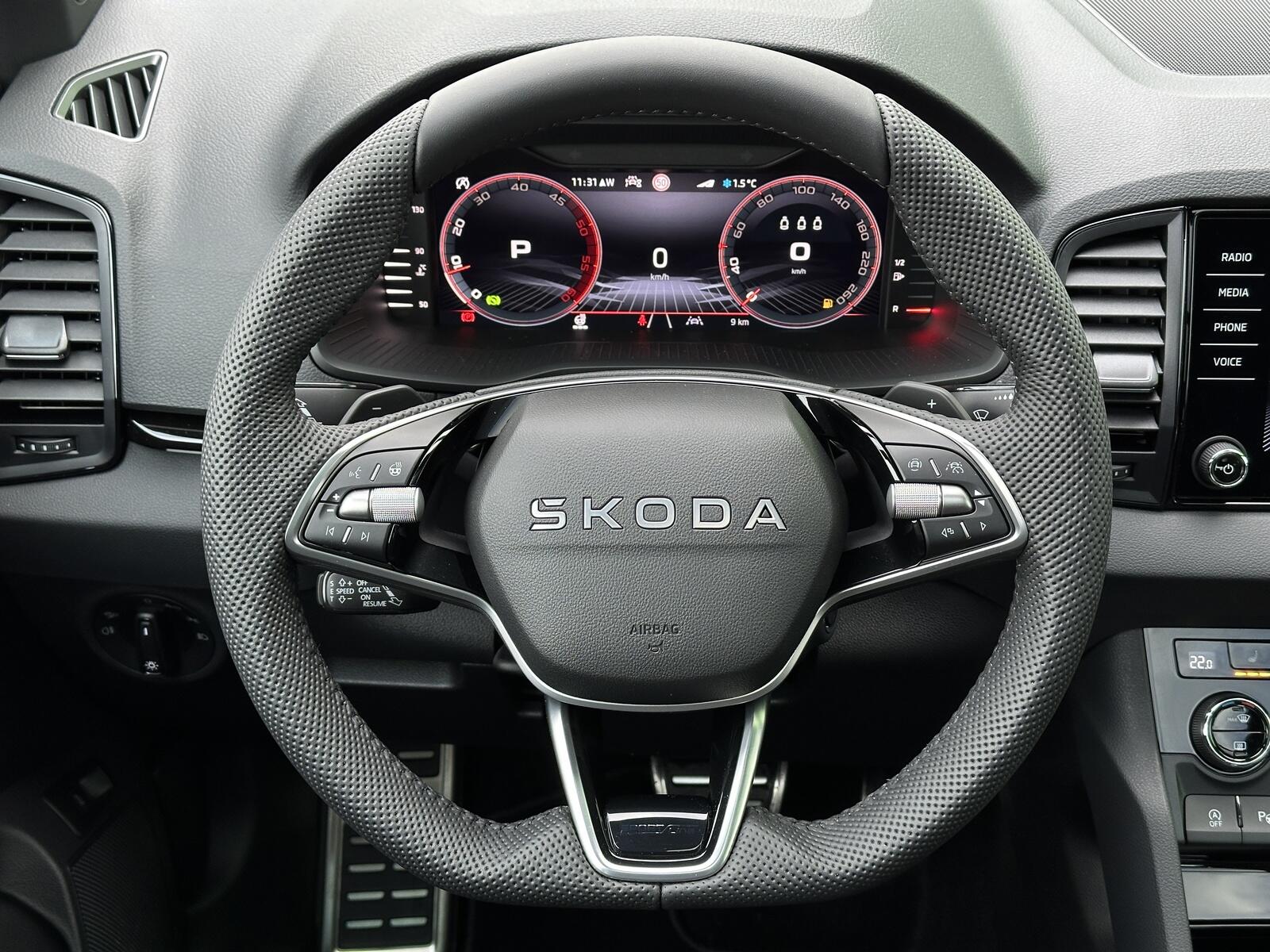 391/11070 Škoda Karoq Sportline 2.0TDi DSG 4x4 110kW/150PS Pohon všech kol 4x4, 7st. Automatická převodovka DSG, Tovární záruka Škoda Auto 5let/100.000km, Výbava vozu: Paket Drive PLUS - (Adaptivní podvozek - DCC, Progresivní řízení, Hliníkové kryty pedálů, Jízdní režim Offroad), Nezávislé topení s dálkovým ovládáním - Webasto, Tažné zařízení sklopné - el. odjistitelné, Panoramatické střešní okno, Kola z lehkých slitin ALU Škoda SAGITARIUS 8Jx19 Antracitová/Leštěná, 230V zásuvka a USB-C nabíjecí port pro cestující vzadu, Paket Asistovaná jízda 2.0 - (Prediktivní tempomat - ACC, Rozpoznávání dopravních značek, Adaptivní asistent pro udržování v jízdním pruhu - Lane Assist+, Asistent sledování mrtvého úhlu - Side Assist, Automatické parkování), Panoramatický kamerový systém 360°, Parkovací senzory vpředu a vzadu - PDC P/Z, Asistent varování a brzdění při hrozící kolizi s vozidly, chodci a cyklisty - Front Assist, Asistent rozpoznání únavy řidiče, Asistent rozjezdu do kopce, Systém Start/Stop, Volba jízdního režimu, Bezklíčové odemykání a startování - KESSY, Vyhřívaný multifunkční kožený volant pro DSG s pádly pod volantem - výškově a podélně nastavitelný, Kožená hlavice řadicí páky, Elektronická parkovací brzda, Sportovní přední sedadla, Bederní opěrky na předních sedadlech, Výškově nastavitelné sedadlo řidiče a spolujezdce, Dvouzónová automatická klimatizace - Climatronic, Vyhřívaná přední i zadní sedadla s oddělenou regulací, Loketní opěrka s Jumbo Boxem, Zadní loketní opěrka, Potah sedadel – látka, Vyhřívané čelní sklo, Vnitřní zpětné zrcátko s automatickým stmíváním, Elektrické ovládání oken vpředu i vzadu, Zatmavená zadní okna - Sunset, Vnější zpětná zrcátka elektricky sklopná, nastavitelná a vyhřívaná, Virtuální Cockpit, Infotainment Amundsen 8 s navigací, Hlasové ovládání a digitální asistentka Laura, Bezdrátový Smartlink, Bluetooth, DAB, Soundsystém CANTON, 10x Reproduktor, Digitální ekvalizér, Bezdrátové nabíjení telefonu, 2x USB-C vpředu, Ambientní LED osvětlení interiéru, Matrix-LED světlomety s neoslňujícím dálkovým světlem, Ostřikovače světlometů, Mlhové světlomety, Top-LED zadní světla s animovanými ukazateli směru jízdy, Senzor světla a deště, Kontrola tlaku v pneumatikách, Virtuální pedál - Otevírání víka kufru pohybem nohy pod zavazadlovým prostorem, Dekorativní lišty prahů, Černě lakované doplňky karoserie, ABS, ESP, 8x Airbag, Deaktivace airbagu spolujezdce, Centrální zamykání s dálkovým ovládáním, Nouzové volání SOS - eCall, Ocelové rezervní kolo, Střešní nosič, Zatížení nebržděného tažného zařízení - 750kg, Zatížení bržděného tažného zařízení - 2100kg, Nový vůz s registrací 20. 10. 2025. Servisní kniha + dokumentace Škoda Auto, Možnost odpočtu DPH 21%, Termín odběru a předání od 15. 04. 2026.