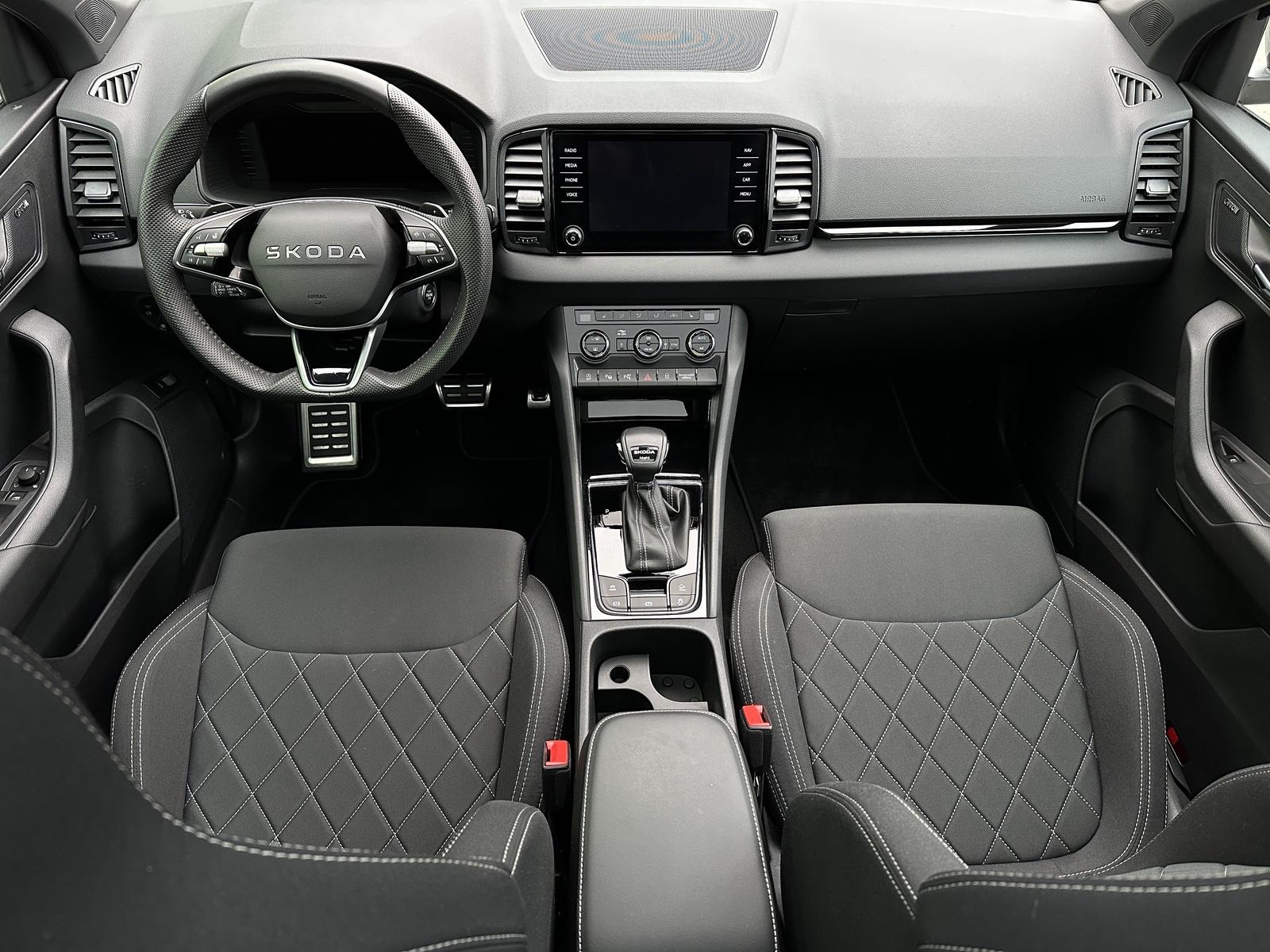 389/11068 Škoda Karoq Sportline 2.0TDi DSG 4x4 110kW/150PS Pohon všech kol 4x4, 7st. Automatická převodovka DSG, Tovární záruka Škoda Auto 5let/100.000km, Výbava vozu: Paket Drive PLUS - (Adaptivní podvozek - DCC, Progresivní řízení, Hliníkové kryty pedálů, Jízdní režim Offroad), Nezávislé topení s dálkovým ovládáním - Webasto, Tažné zařízení sklopné - el. odjistitelné, Kola z lehkých slitin ALU Škoda SAGITARIUS 8Jx19 Antracitová/Leštěná, 230V zásuvka a USB-C nabíjecí port pro cestující vzadu, Paket Asistovaná jízda 2.0 - (Prediktivní tempomat - ACC, Rozpoznávání dopravních značek, Adaptivní asistent pro udržování v jízdním pruhu - Lane Assist+, Asistent sledování mrtvého úhlu - Side Assist, Automatické parkování), Panoramatický kamerový systém 360°, Parkovací senzory vpředu a vzadu - PDC P/Z, Asistent varování a brzdění při hrozící kolizi s vozidly, chodci a cyklisty - Front Assist, Asistent rozpoznání únavy řidiče, Asistent rozjezdu do kopce, Systém Start/Stop, Volba jízdního režimu, Bezklíčové odemykání a startování - KESSY, Vyhřívaný multifunkční kožený volant pro DSG s pádly pod volantem - výškově a podélně nastavitelný, Kožená hlavice řadicí páky, Elektronická parkovací brzda, Sportovní přední sedadla, Bederní opěrky na předních sedadlech, Výškově nastavitelné sedadlo řidiče a spolujezdce, Dvouzónová automatická klimatizace - Climatronic, Vyhřívaná přední i zadní sedadla s oddělenou regulací, Loketní opěrka s Jumbo Boxem, Zadní loketní opěrka, Potah sedadel – látka, Vyhřívané čelní sklo, Vnitřní zpětné zrcátko s automatickým stmíváním, Elektrické ovládání oken vpředu i vzadu, Zatmavená zadní okna - Sunset, Vnější zpětná zrcátka elektricky sklopná, nastavitelná a vyhřívaná, Virtuální Cockpit, Infotainment Amundsen 8 s navigací, Hlasové ovládání a digitální asistentka Laura, Bezdrátový Smartlink, Bluetooth, DAB, Soundsystém CANTON, 10x Reproduktor, Digitální ekvalizér, Bezdrátové nabíjení telefonu, 2x USB-C vpředu, Ambientní LED osvětlení interiéru, Matrix-LED světlomety s neoslňujícím dálkovým světlem, Ostřikovače světlometů, Mlhové světlomety, Top-LED zadní světla s animovanými ukazateli směru jízdy, Senzor světla a deště, Kontrola tlaku v pneumatikách, Virtuální pedál - Otevírání víka kufru pohybem nohy pod zavazadlovým prostorem, Dekorativní lišty prahů, Černě lakované doplňky karoserie, ABS, ESP, 8x Airbag, Deaktivace airbagu spolujezdce, Centrální zamykání s dálkovým ovládáním, Nouzové volání SOS - eCall, Ocelové rezervní kolo, Střešní nosič, Zatížení nebržděného tažného zařízení - 750kg, Zatížení bržděného tažného zařízení - 2100kg, Nový vůz s registrací 20. 10. 2025. Servisní kniha + dokumentace Škoda Auto, Možnost odpočtu DPH 21%, Termín odběru a předání od 15. 04. 2026.