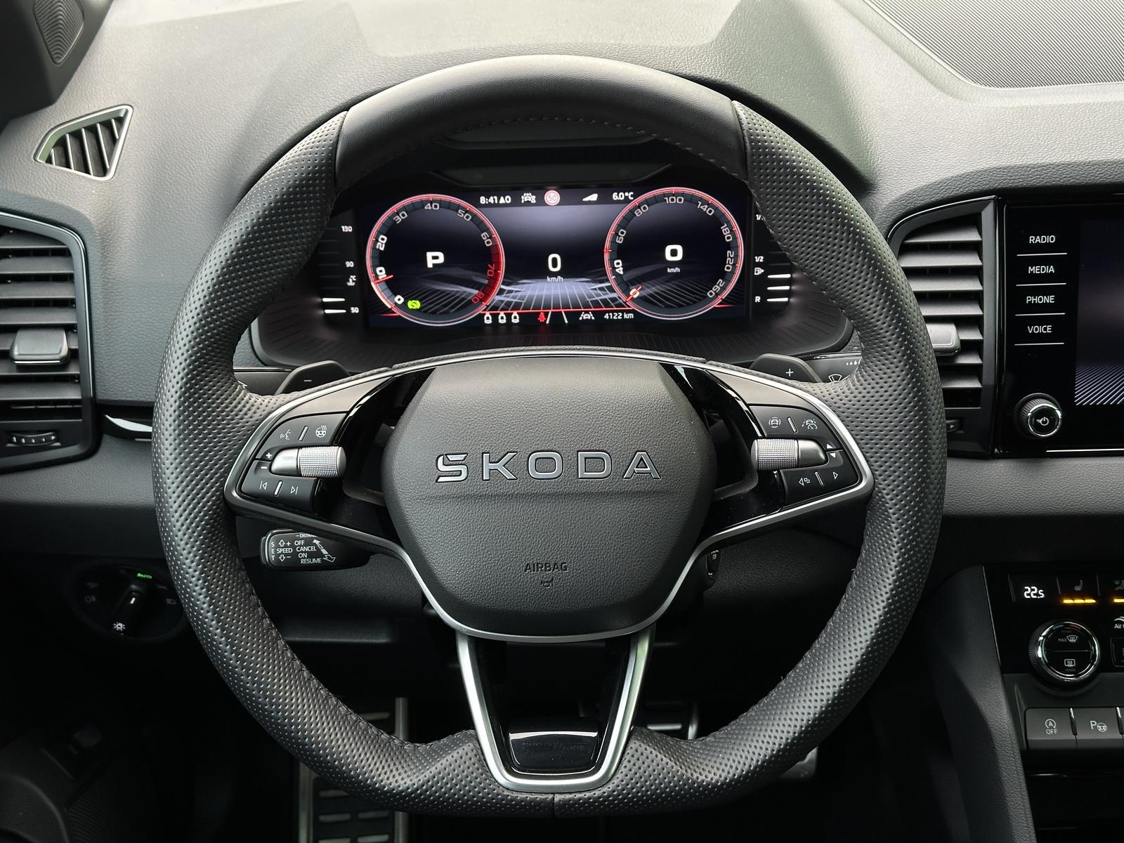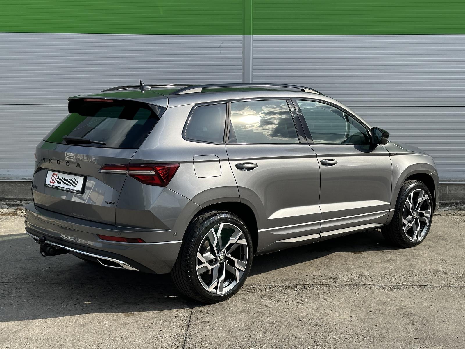 107/10840 Škoda Karoq Sportline 2.0TSi 140kW/190PS 4x4 DSG, 7st. Automatická převodovka DSG, Tovární záruka Škoda Auto 5let/100.000km, Výbava vozu: Paket Drive PLUS - (Adaptivní podvozek DCC, Progresivní řízení, Hliníkové kryty pedálů, Volba jízních režimů + Off Road funkce), Nezávislé topení s dálkovým ovládáním - Webasto, Tažné zařízení sklopné - el. odjistitelné, Panoramatické střešní okno, Kola z lehkých slitin ALU Škoda SAGITARIUS 8Jx19 Antracitová/Leštěná, Zásuvka 230V a nabíjecí port USB-C pro cestující vzadu, Paket Asistovaná jízda 2.0 - (Prediktivní tempomat - ACC, Rozpoznávání dopravních značek, Adaptivní asistent pro udržování v jízdním pruhu - Lane Assist+, Asistent sledování mrtvého úhlu - Side Assist, Automatické parkování), Asistent upozornění na únavu řidiče, Front Assist - Asistent upozornění na hrozící kolizi s vozidly, chodci a cyklisty, Start/Stop systém, Nouzový asistent, Asistent rozjezdu do kopce, Smartlink s bezdrátovým připojením - zrcadlení aplikací telefonu na Infotainment vozu, Digitální příjem rádia - DAB, Dvouzónová automatická klimatizace - Climatronic, Elektricky sklopná nastavitelná vnější zpětná zrcátka - vyhřívaná, ESP, 8x Airbag, Hlasové ovládání, Digitální asistentka Laura, Přední loketní opěrka s Jumbo Boxem, Senzor kontroly tlaku v pneumatikách, Systém nouzového volání SOS - eCall+, Přední sportovní sedadla, Výškově nastavitelná přední sedadla s bederní opěrkou, Vyhřívaná přední a zadní sedadla, Potah sedadel - látka, Integrované přední opěrky hlavy, El. otvírání předních a zadních oken, Sunset, Senzor světla a deště, KESSY - bezklíčové zamykání a startování, Matrix-LED přední světlomety s neoslňujícími dálkovými světly, Top-LED zadní světla s animovanými ukazateli směru jízdy, Ostřikovače předních světlometů, Ambientní LED osvětlení interiéru, Vyhřívané čelní sklo, Vyhřívané trysky ostřikovačů čelního skla, Virtualní Pedál - otevírání víka kufru pohybem nohy pod zavazadlovým prostorem, Virtualní Cockpit 10, Infotainment Amundsen 8 s Navigací, Panoramatický kamerový systém 360°, Parkovací senzory vpředu a vzadu - PDC, Vyhřívaný sportovní multifunkční kožený volant s pádly řazení pro DSG pod volantem, USB-C pro vnitřní zrcátko, USB-C vpředu, 12V zásuvka v zavazadlovém prostoru, Sound systém CANTON, Digitální ekvalizér, 10x reproduktor, Exteriér Sportline - (dekorativní prahy dveří, černě lakované doplňky karoserie, sportovní nárazníky), Střešní nosič, Ocelové rezervní kolo, Zánovní vůz, Servisní kniha + dokumentace Škoda Auto, Možnost odpočtu DPH 21%, Skladem - ihned k odběru.