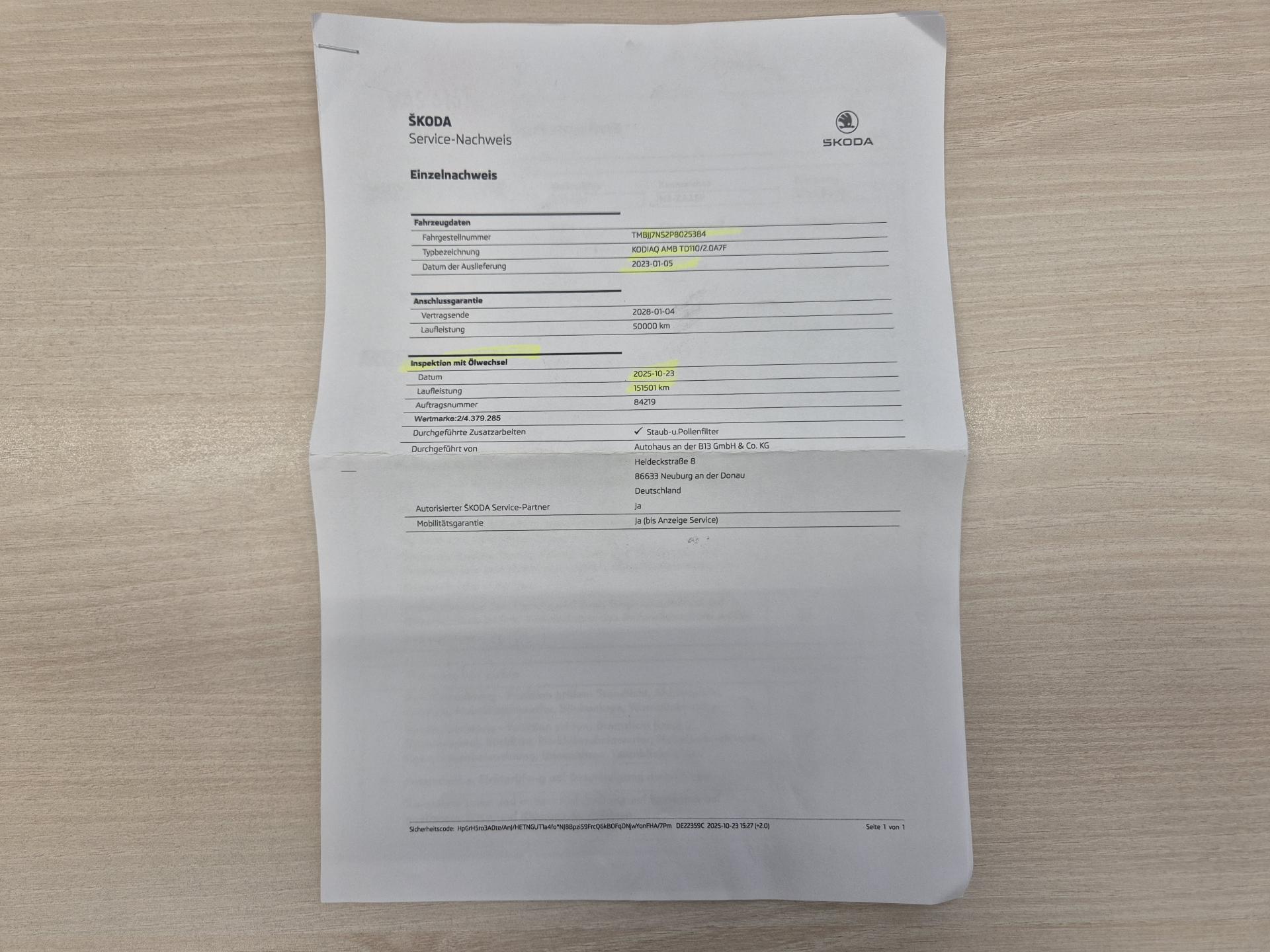 VIN: TMBJJ7NS2P8025384, výbava Tour, do provozu 05.01.2023, 1. reg. 21.12.2022, 19ALU, VIRTUAL COCKPIT, sat. navigace Columbus + KAMERA, F1, TZ, START/STOP KESSY + el.kufr, LIGHT, HOLD, LANE, PARK, FRONT ASSIST/ACC, přední světla LED MATRIX , 4x vyhřívané sedačky + volant, 22.04.2025 při 121.617 km olej a filtr v AP DSG, 23.10.2025 při 151.506 km nový olej a filtr, Nové brzdy. Prodávající prohlašuje, že pokud bude po uzavření této kupní smlouvy jakýmkoliv způsobem shledáno (např. společností CEBIA s.r.o. nebo např. Policií ČR), že původ vozu, stav kilometrů (od předešlého mayjitele) a zápisy v servisní knize nesouhlasí s provedenými kontrolami bude kupujícímu prodávajícím vrácena plná výše kupní ceny ihned. ZP 1-3 ROKY ZÁRUKA NA VOZIDLO,TERMÍN PROHLÍDKY VOZIDLA NUTNO DOMLUVIT PŘEDEM !!!