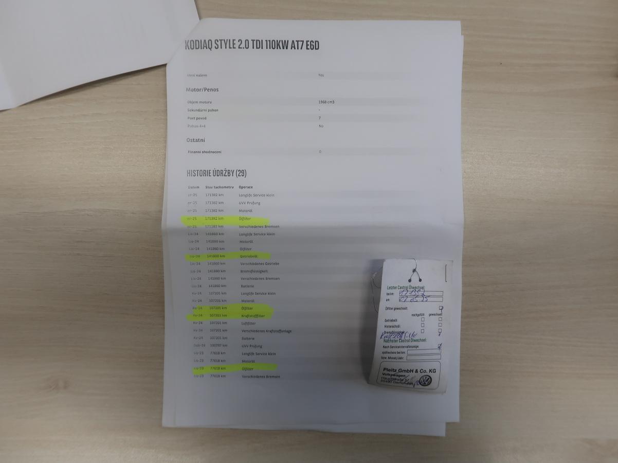 VIN: TMBJJ7NS6P8017787, výbava Tour, 1. reg. 17.10.2022, 19ALU, černá polokůže, VIRTUAL COCKPIT, sat. navigace Columbus + KAMERA, F1, TZ, START/STOP KESSY + el.kufr, LIGHT, HOLD, FRONT ASSIST/ACC, přední světla LED MATRIX , 4x vyhřívané sedačky + čelní sklo + volant, 11/2024 při 141.860 km olej a filtr v AP DSG, 05.07.2025 při 171.382 km nový olej a filtry. Prodávající prohlašuje, že pokud bude po uzavření této kupní smlouvy jakýmkoliv způsobem shledáno (např. společností CEBIA s.r.o. nebo např. Policií ČR), že původ vozu, stav kilometrů (od předešlého mayjitele) a zápisy v servisní knize nesouhlasí s provedenými kontrolami bude kupujícímu prodávajícím vrácena plná výše kupní ceny ihned. ZP 1-3 ROKY ZÁRUKA NA VOZIDLO,TERMÍN PROHLÍDKY VOZIDLA NUTNO DOMLUVIT PŘEDEM !!!