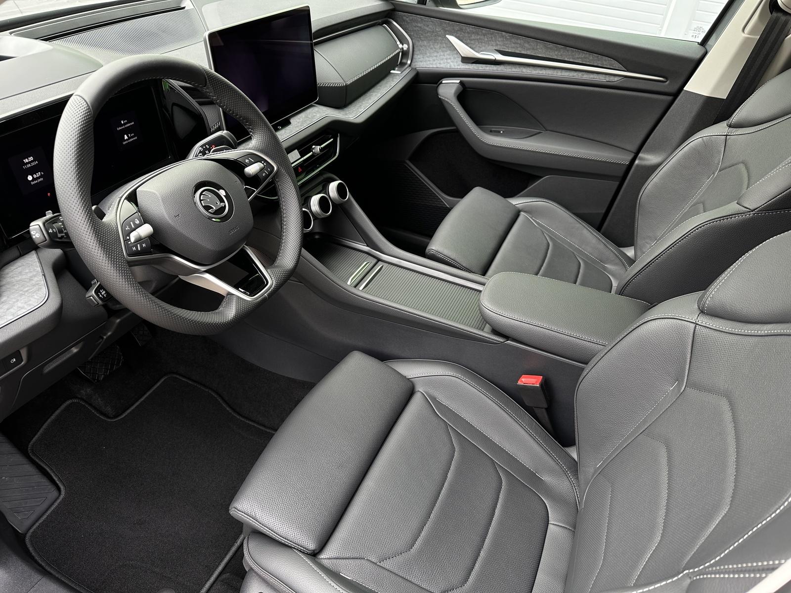 165/9806 Škoda Kodiaq Exclusive Selection 1.5TSi iV DSG, 150kW/204PS,6st. Automatická převodovka, Výbava vozu: Tovární záruka Škoda Auto do 12/2029 nebo 100.000km, Kola z lehkých slitin ALU Škoda RILA AERO 8Jx20 Antracitová/Leštěná, Tažné zařízení sklopné - el.odjistitelné s asistencí pro jízdu s přívěsem, Adaptivní podvozek DCC s 2-ventilovým tlumičem, Asistent pro jízdu v jízdním pruhu – Lane Assist+, Nouzový asistent, Asistent v dopravní zácpě, Parkovací asistent, Asistent změny jízdního pruhu – Side Assist, Adaptivní tempomat - ACC, KESSY – systém bezklíčového zamykání a startování s bezpečnostním zámkem, Třízónová klimatizace Climatronic, Head-up displej, Matrix-LED světlomety, Virtuální pedál - El. otvírání zavazadlového prostoru pomocí přejetím nohy pod zavazadlovým prostorem, Virtuální Cockpit, Panoramatický kamerový systém – 360° Kamera, Parkovací asistent IPA – Intelligent Park Assist, Sluneční rolety na zadních bočních dveřích, Soundsystem CANTON, Vyhřívaná přední a zadní sedadla, Rozpoznávání dopravních značek, Front Assist – čelní asistent s varováním a brzděním pro vozidla, chodce a cyklisty, Kožený multifunkční vyhřívaný volant s pádly řazení pro DSG, Alarm proti krádeži – monitorování interiéru, couvací siréna a ochrana proti odtažení, TOP zadní LED světla s animovanými ukazateli směru a vítacím efektem, 7x Airbag + Boční airbagy vzadu, DAB – příjem digitálního rádia, Detekce únavy řidiče, Dvojitá podlaha v zavazadlovém prostoru, Bederní opěrka na obou stranách, Kontrola tlaku v pneumatikách, Kožené potahy sedadel, Pokročilý bezpečnostní systém PreCrash, Světla pro denní svícení s pomocnými světly a funkcemi automatického příchodu a odchodu z domova, 2x i-Size a 2x Top Tether vzadu a 1x i-Size vpředu pro spolujezdce, 12V zásuvka, 2x držák tabletu na opěradla předních sedadel, Ambientní osvětlení, Asistent rozjezdu do kopce, Nový vůz, Servisní kniha + kompletní dokumentace Škoda Auto, Možnost odpočtu DPH 21%, Skladem - ihned k odběru.