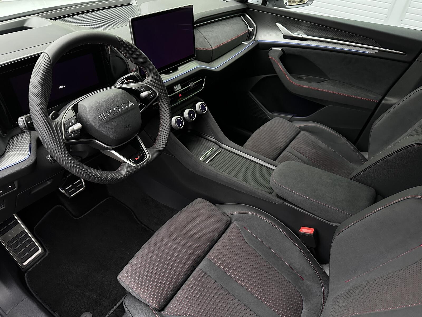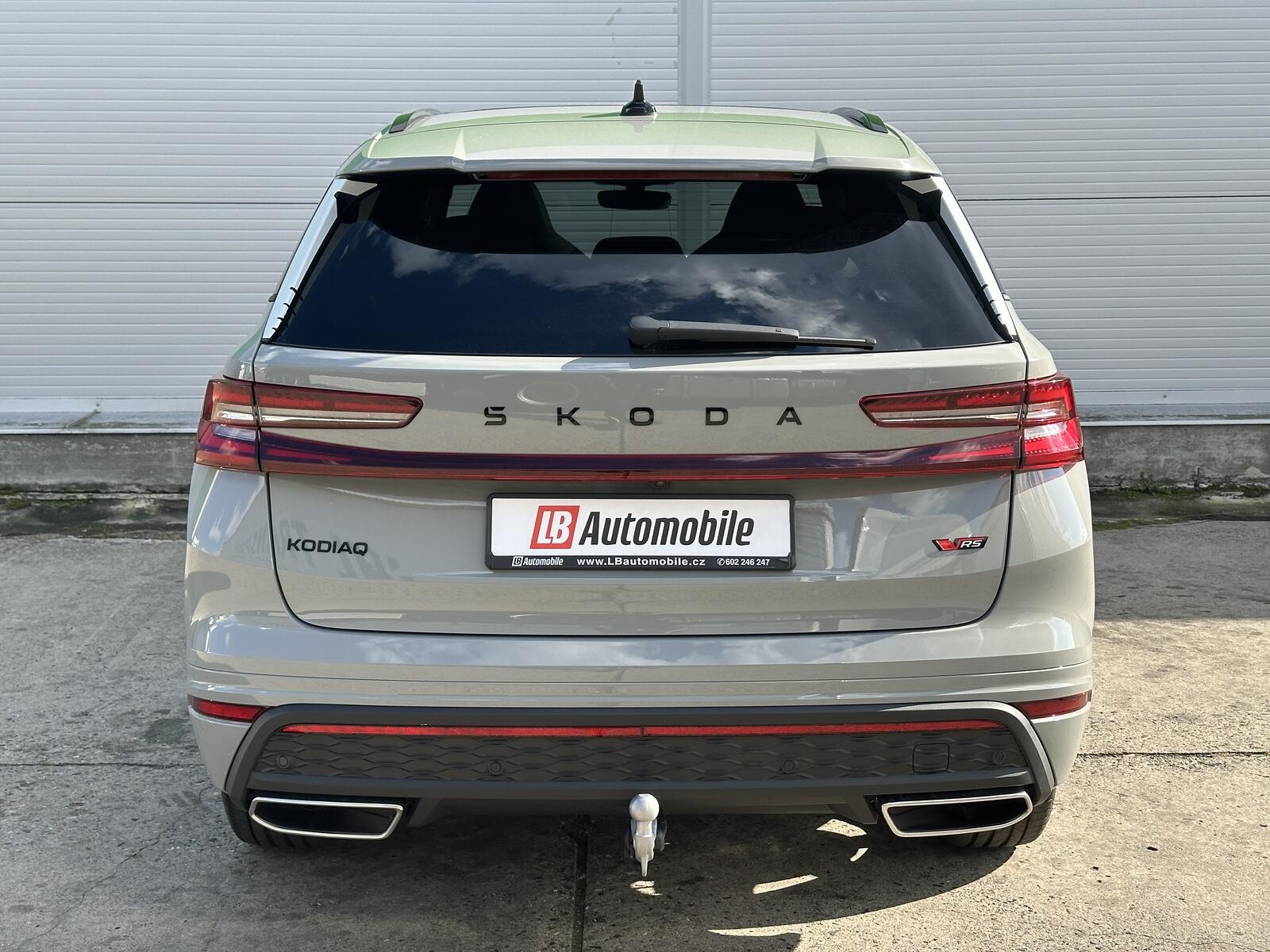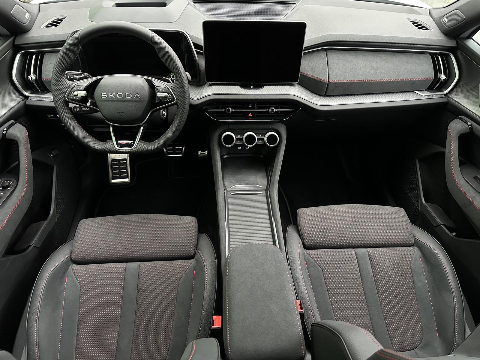 200/11025 Škoda Kodiaq RS DSG 4x4 7 MÍST, 2.0TSi 195kW/265PS, 7st. Automatická převodovka DSG, Pohon všech kol 4x4, Tovární záruka Škoda Auto 5let/100.000km, Výbava vozu: Panoramatické střešní okno, Nezávislé topení - Webasto, Tažné zařízení sklopné - el.odjistitelné s Trailer Assist pro manévrování s přívěsem, 3.řada sedadel, Kola z lehkých slitin ALU Škoda ELIAS 8Jx20 černá/leštěná, Sportovní nárazníky RS, Adaptivní podvozek DCC+, Progresivní řízení, Volba jízdního režimu, Elektricky nastavitelná přední sedadla s pamětí, Offroad režim, Vyhřívané čelní sklo, Asistovaná jízda 2.5 PLUS - (Prediktivní tempomat, Adaptivní vedení v jízdním pruhu - Lane Assist+, Asistent jízdy v koloně, Nouzový asistent, Automatické parkování, Uložený parkovací manévr, Panoramatický kamerový systém, Proaktivní ochrana cestujících), Osvětlená maska chladiče s logem RS, Head-Up displej, Soundsystem CANTON - 14 reproduktorů včetně subwooferu, Virtuální pedál, Ocelové rezervní kolo, Vyhřívaná zadní sedadla, Vyhřívaný multifunkční sportovní kožený volant, Akustická boční okna vpředu, Infotainment NAVI 13 - Webrádio, Čistič obrazovky, KESSY s alarmem - bezklíčové zamykání a startování, Elektrické otevírání zavazadlového prostoru, Matrix-LED přední světlomety, LED zadní světla s animovanými směrovkami, Ambientní osvětlení, Vyhřívaná přední sedadla, Třízónová klimatizace Climatronic, Tónovaná skla a Sunset, Multifunkční panel s otočnými ovladači Smart Dials, Rozpoznávání dopravních značek s ISA kontrolou rychlosti, Front Assist - s varováním a brzděním při hrozící kolizi s vozidly, chodci a cyklisty, Asistence při průjezdu křižovatkou, Asistent mrtvého úhlu - Side Assist, Antikolizní asistent, Kontrola tlaku v pneumatikách, Asistent rozjezdu do kopce, Parkovací senzory vpředu a vzadu - PDC P/Z, Upozornění na únavu a pozornost řidiče, 7x airbag, 2x i-Size a 2x Top Tether vzadu a 1x i-Size vpředu pro spolujezdce, Bezdrátové nabíjení pro dva telefony, Nouzové volání SOS eCall, Virtuální Cockpit 10, Senzor světla a deště, Vnější zpětná zrcátka - elektricky nastavitelná, sklopná, vyhřívaná a automaticky zatmavovací na straně řidiče, Elektronická parkovací brzda s funkcí Auto Hold, Elektrické ovládání oken vpředu a vzadu, Středová konzola s držáky nápojů, 12V zásuvka vpředu, 5x USB-C - 2x vpředu, 2x vzadu, 1x u vnitřního zpětného zrcátka, Deštník ve dveřích řidiče, Zadní loketní opěrka, Sada na opravu pneumatik, Nový vůz s registrací, NOVÉ ČR, Servisní kniha + dokumentace Škoda Auto, Možnost odpočtu DPH 21%, Skladem - ihned k odběru.