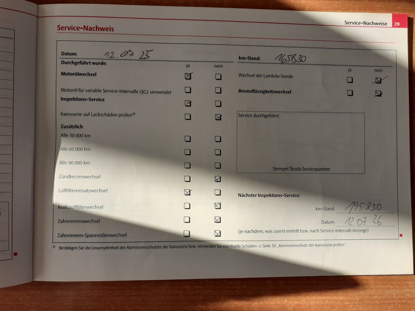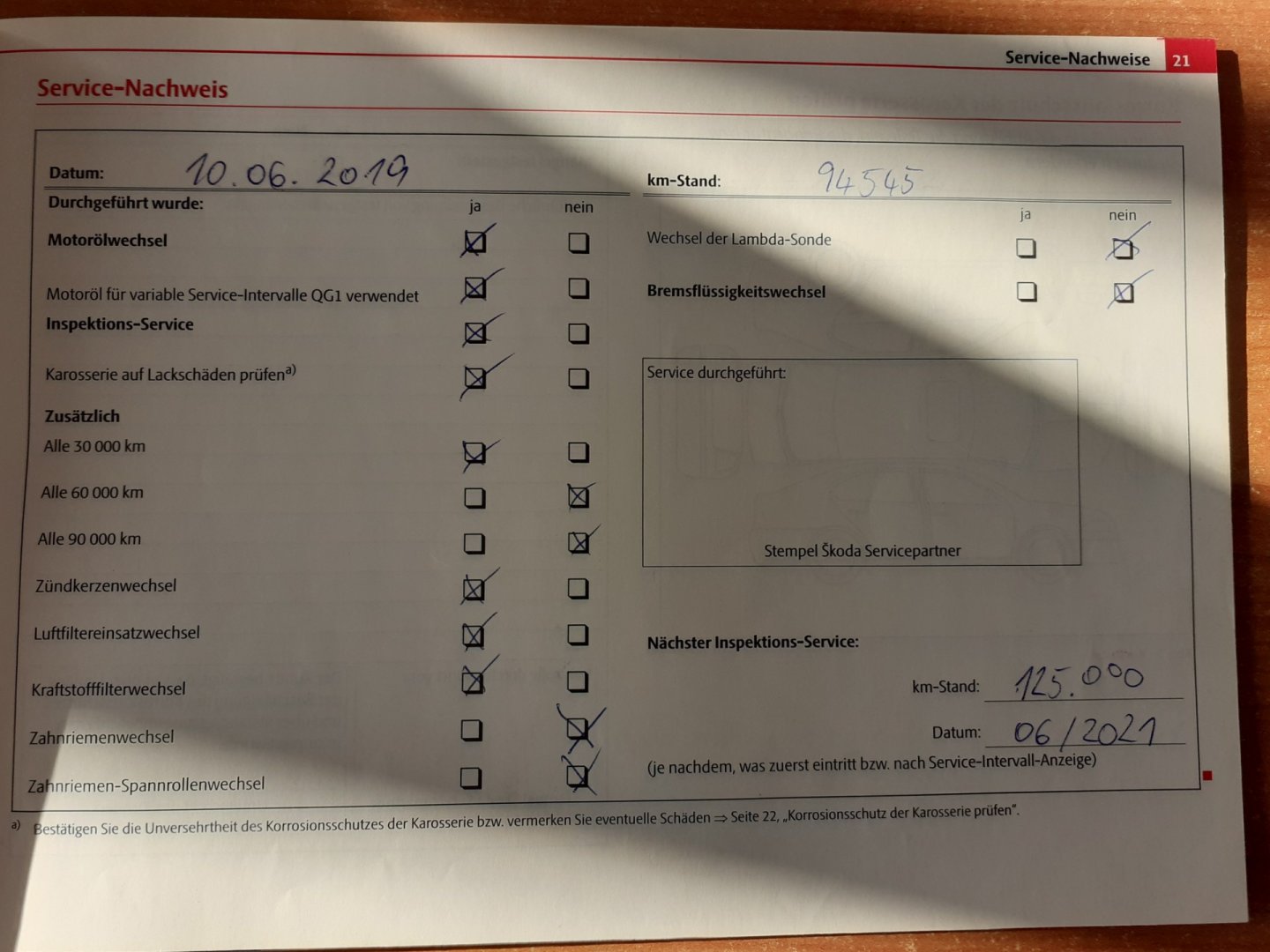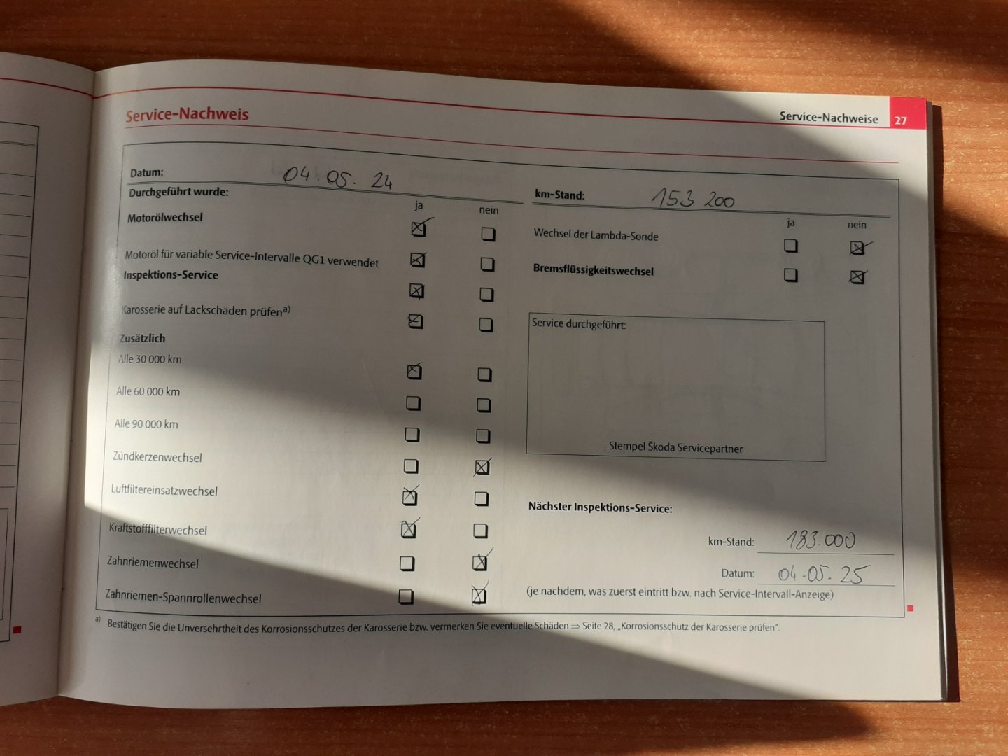 Nehavarované, Servisní knížka