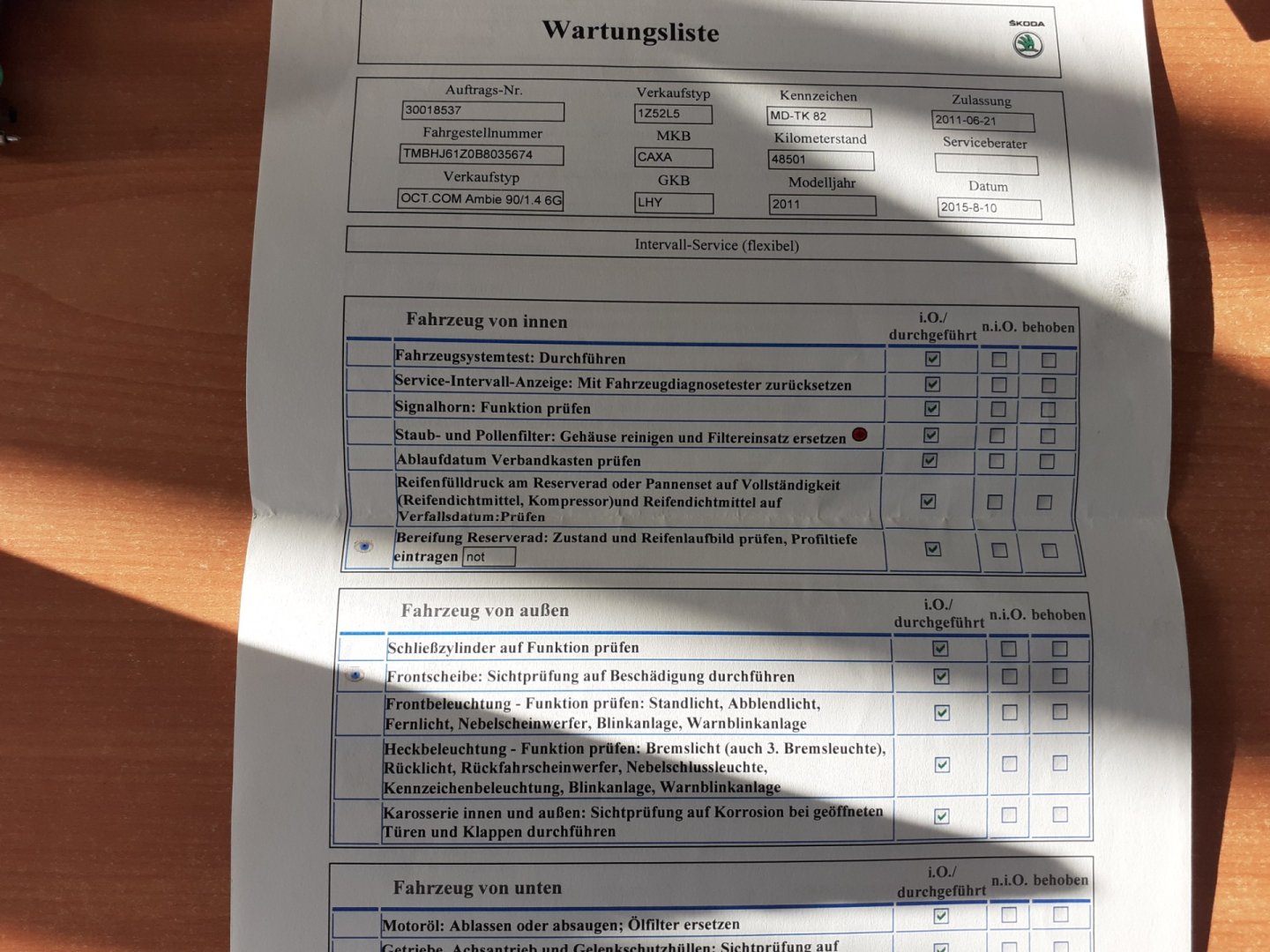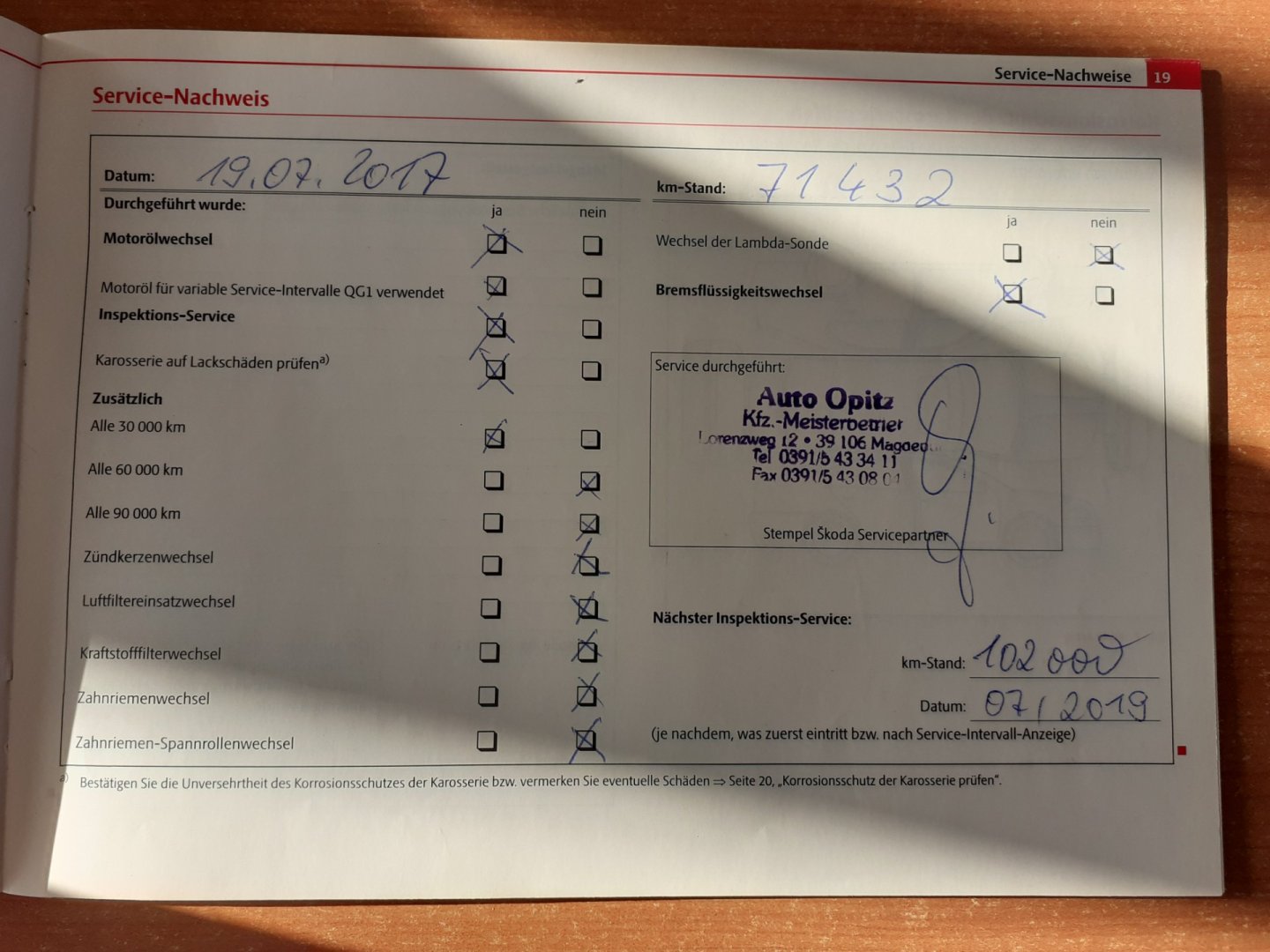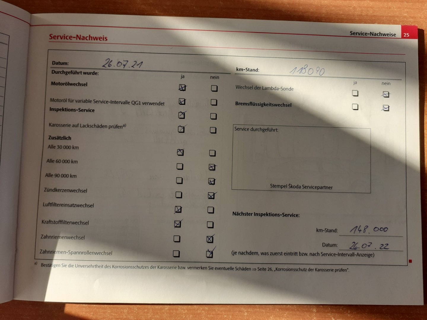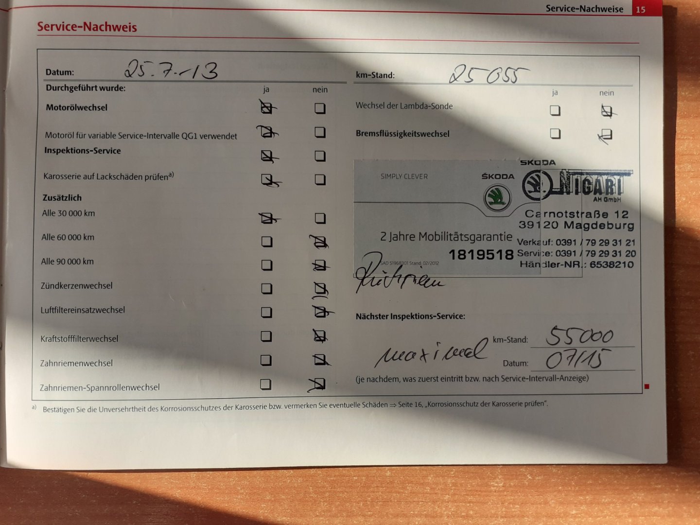 Nehavarované, Servisní knížka
