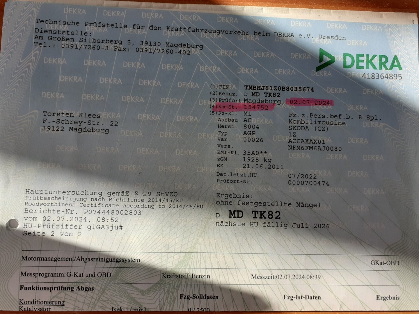 | VIN | TMBHJ61Z0B8035674 |