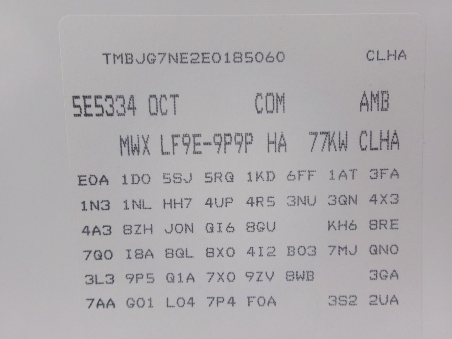 | VIN | TMBJG7NE2E0185060 |