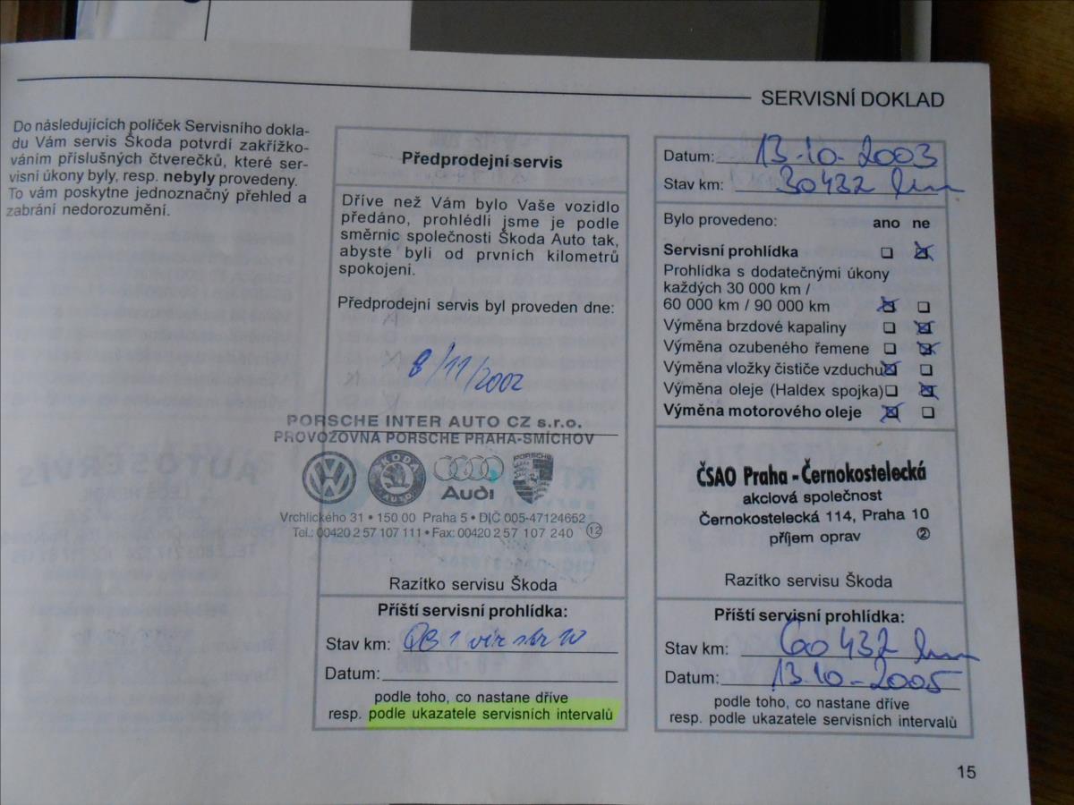 Škoda Octavia 1,8 Turbo 110 kW CZ Serviska