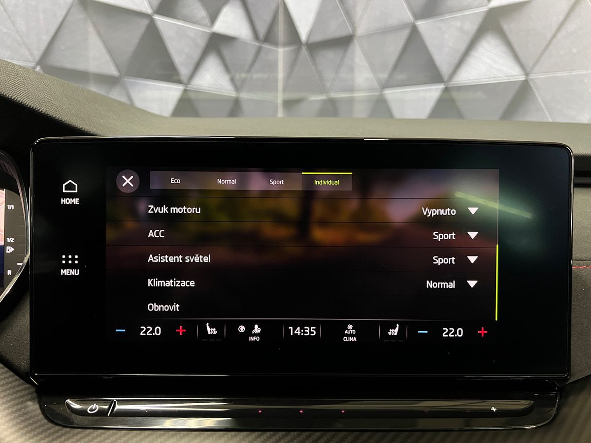 !!!KOUPENO NOVÉ V CZ!!!MOŽNOST ODPOČTU DPH!!!MOŽNOST PRODLOUŽENÉ ZÁRUKY AŽ DO 11/2029!!! ADAPTIVNÍ ŠKODA CRYSTAL LIGHTING S LED DENNÍM SVÍCENÍM, AUTOMATICKÁ PŘEVODOVKA DSG S MOŽNOSTÍ ŘAZENÍ POD VOLANTEM, SATELITNÍ NAVIGAČNÍ SYSTÉM, 2-ZÓNOVÁ AUTOMATICKÁ KLIMATIZACE, ADAPTIVNÍ TEMPOMAT, ADAPTIVNÍ NASTAVENÍ PODVOZKU, PŘEDNÍ SEDADLA VYHŘÍVANÁ, DIGITÁLNÍ PŘÍSTROJOVÝ ŠTÍT, BEZKLÍČKOVÉ ODEMYKÁNÍ, ZAMYKÁNÍ A STARTOVÁNÍ KEYLESS, MOŽNOST VOLBY JÍZDNÍCH REŽIMŮ, APPLE CARPLAY, ANDROID AUTO, AMBIENTNÍ OSVĚTLENÍ, FRONT ASSIST, ASISTENT HLÍDÁNÍ ÚNAVY, ASISTENT HLÍDÁNÍ JÍZDNÍCH PRUHŮ, ZATMAVENÁ ZADNÍ SKLA, ZADNÍ KŘÍDLO, ZATMAVENÁ ZADNÍ SKLA, EL. OVLÁDÁNÍ OTEVÍRÁNÍ A ZAVÍRÁNÍ VÍKA ZAVAZADLOVÉHO PROSTORU, ALU. 18 KOLA