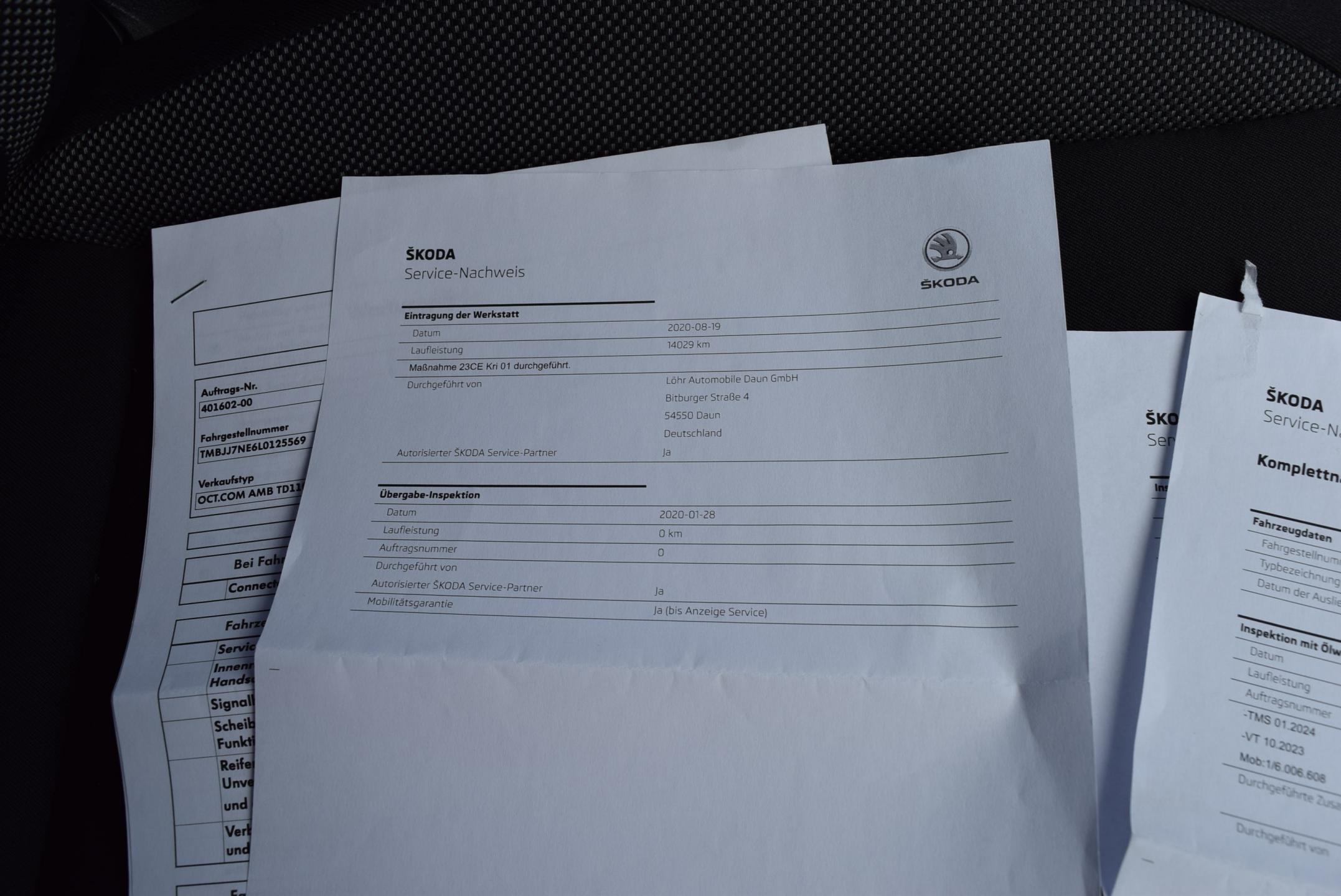 VIN:TMBJJ7NE6L0125569; Země původu Německo; GARANCE UJETÝCH KM-doloženo kompletně vedenou ONLINE servisní knihou v autorizovaném servisu ŠKODA; nové zadní brzdy komplet (kotouče + destičky); MANUÁLNÍ 6-ti stupňová převodovka; Výbava AMBITION; tmavý interiér, FULL LED světlomety s ostřikovači světel; CLIMATRONIC-dvouzónová digitální automatická klimatizace se systémem AIR CARE; VYHŘÍVANÉ SEDAČKY přední; VYHŘÍVANÁ+el. stavitelná + el. sklopná zrcátka; hlídání mrtvého úhlu; Frontassist, aj..4x el. stahovatelná okna; tříramenný kožený vyhřívaný MULTIFUNKČNÍ VOLANT; MAXIDOT-barevný palubní počítač; TEMPOMAT; SOUND & MULTIMEDIA systém orig. ŠKODA s barevným dotykovým displayem, NAVIGACÍ, konektivitou APPLE Car Play&Android Auto, DAB rádiem, výstupy USB + slot na paměťovou kartu a BLUETOOTH rozhraním vč. Handsfree; ALU kola orig. ŠKODA + sada zimních pneumatik k vozidlu; PARKTRONIC-parkovací senzory vzadu, odnimatelné tažné zařízení; měnič napětí (zásuvka 230V) na středovém tunelu; bezklíčkové odemykání předních dveří (Keylessgo); HAGUSY; el. víko zavazadlového prostoru; loketní opěrka přední + zadní; bezdrátová dobíjecí přihrádka na mobilní telefon; Technicky i motoricky v perfektním stavu; karoserie bez škrábanců a parkovacích důlků; záruka 1 rok na MOTOR a PŘEVODOVKU.