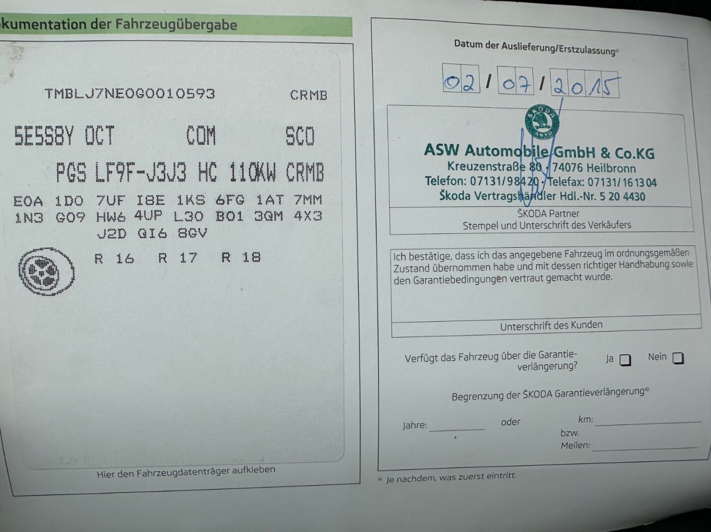 | VIN | TMBLJ7NE0G0010593 |
