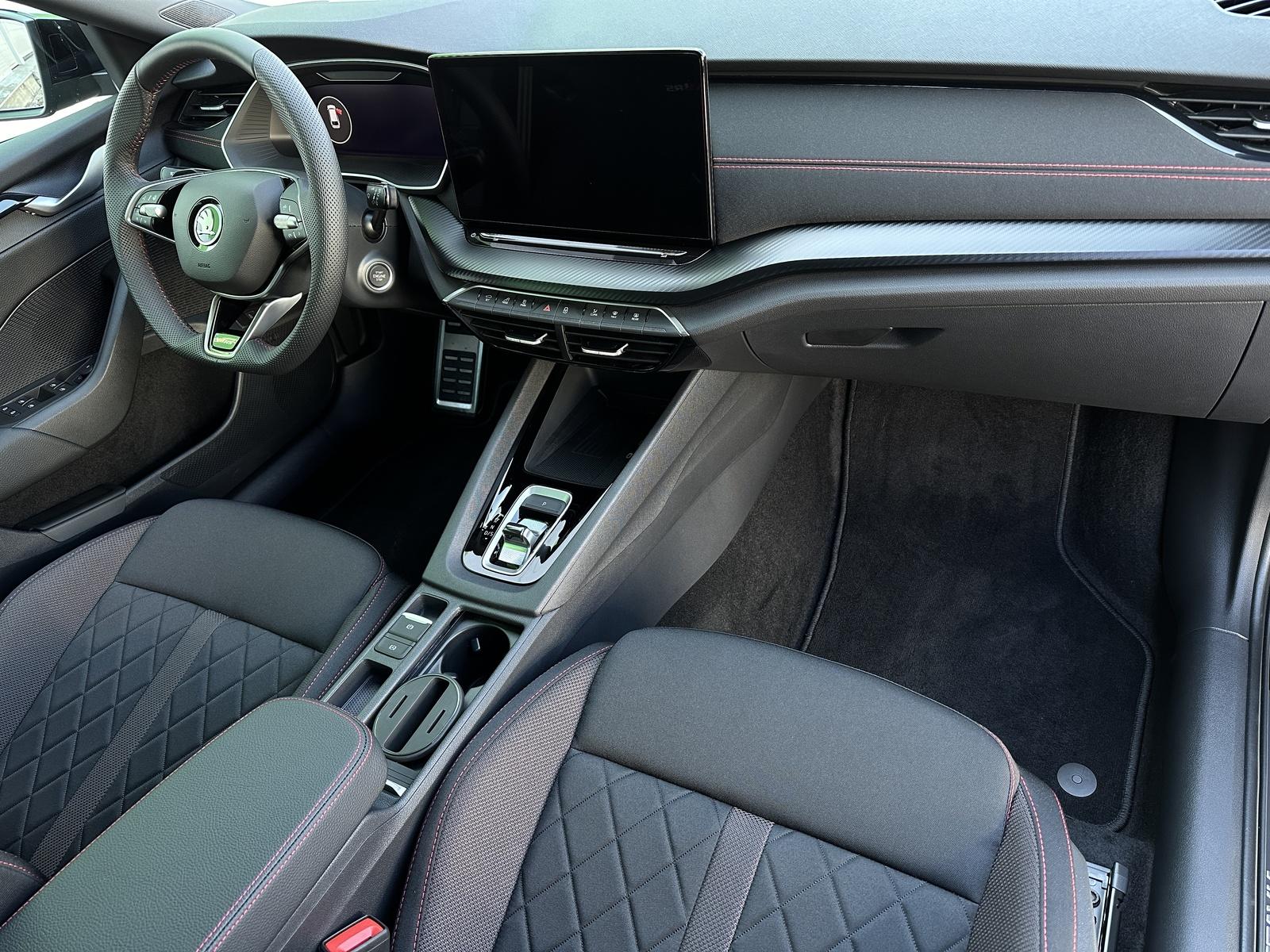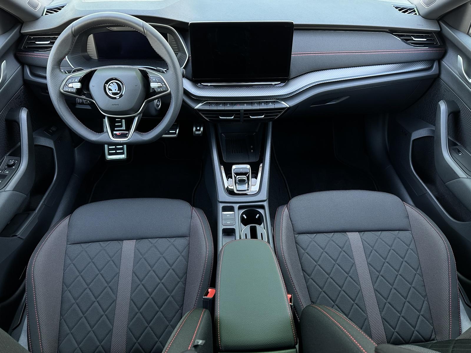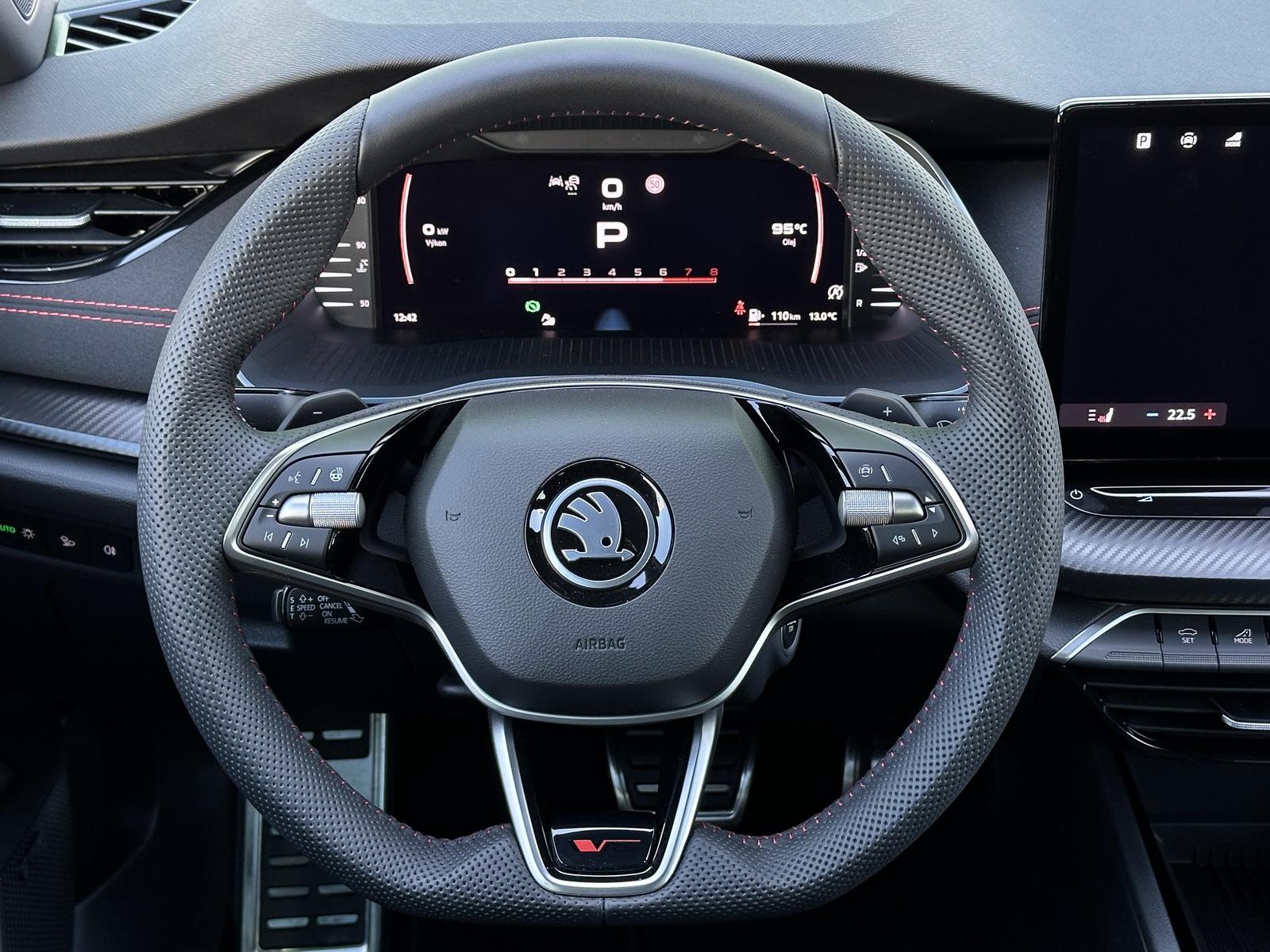 270/10242 Škoda Octavia RS 2.0 TSI DSG 195kW/265PS, 7st. Automatická převodovka DSG, Tovární záruka Škoda Auto 5let/100.000km, Výbava vozu: Adaptivní podvozek DCC, Kola z lehkých slitin ALU Škoda ELIAS 7,5Jx19 antracitová/broušená, Tažné zařízení sklopné - el. odjistitelné s adaptérem, ABS, Elektronická uzávěrka předního diferenciálu (EDS), ESP, Hlídání mrtvého úhlu - Side Assist, Asistent vedení v jízdním pruhu - Lane Assist, Asistent varování a nouzové brzdění v případě hrozící srážky s vozidly, chodci a cyklisty - Front Assist, Asistent pro jízdu v zácpě, Virtuální pedál, Adaptivní tempomat, Asistent rozjezdu do kopce, Asistent rozpoznání dopravních značek, Volba jízdních režimů, Hlasové ovládání, Senzor světla a deště, Parkovací senzory vpředu a vzadu - PDC P/Z, KAMERA, Parkovací asistent, Kontrola tlaku v pneumatikách, Start/Stop systém, Alarm, Centrální zamykání, Dálkové centrální zamykání, Imobilizér, Ambientní LED osvětlení interiéru, Hlavní Matrix-LED světlomety, Denní svícení, LED zadní světlomety, Mlhovky, El. ovládání oken, EL. ovládaná vnější zpětná zrcátka, vyhřívaná , sklopná s automatickým zatmavováním, Vnitřní zpětné zrcátko automatickým zatmavováním, El. ovládání víka zavazadlového prostoru, El. parkovací brzda, Multifunkční kožený vyhřívaný volant s pádly řazení pod volantem, Vyhřívané čelní sklo, Vyhřívané trysky ostřikovače čelního skla, Přední a zadní loketní opěrka, Sportovní přední sedadla - vyhřívaná - mechanicky nastavitelná, Bederní opěrky na předních sedadlech, Potah sedadel látka/alcantara, Isofix, Bluetooth, Nabíjecí box pro Smartphone s chlazením, Digitální příjem rádia - DAB, Palubní počítač, Satelitní Navigace, Mobilní připojení, V.Cockpit - Digitální přístrojová deska, Ocelové rezervní kolo, Stav nového vozu, Servisní kniha + kompletní dokumentace Škoda Auto, Skladem - ihned k odběru.