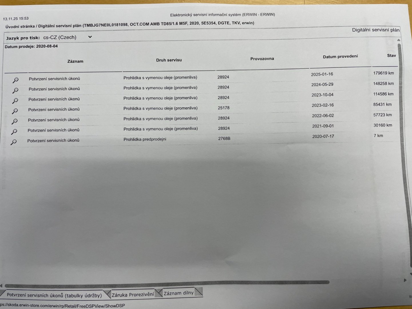 | Historie | Zobrazit historii vozu |