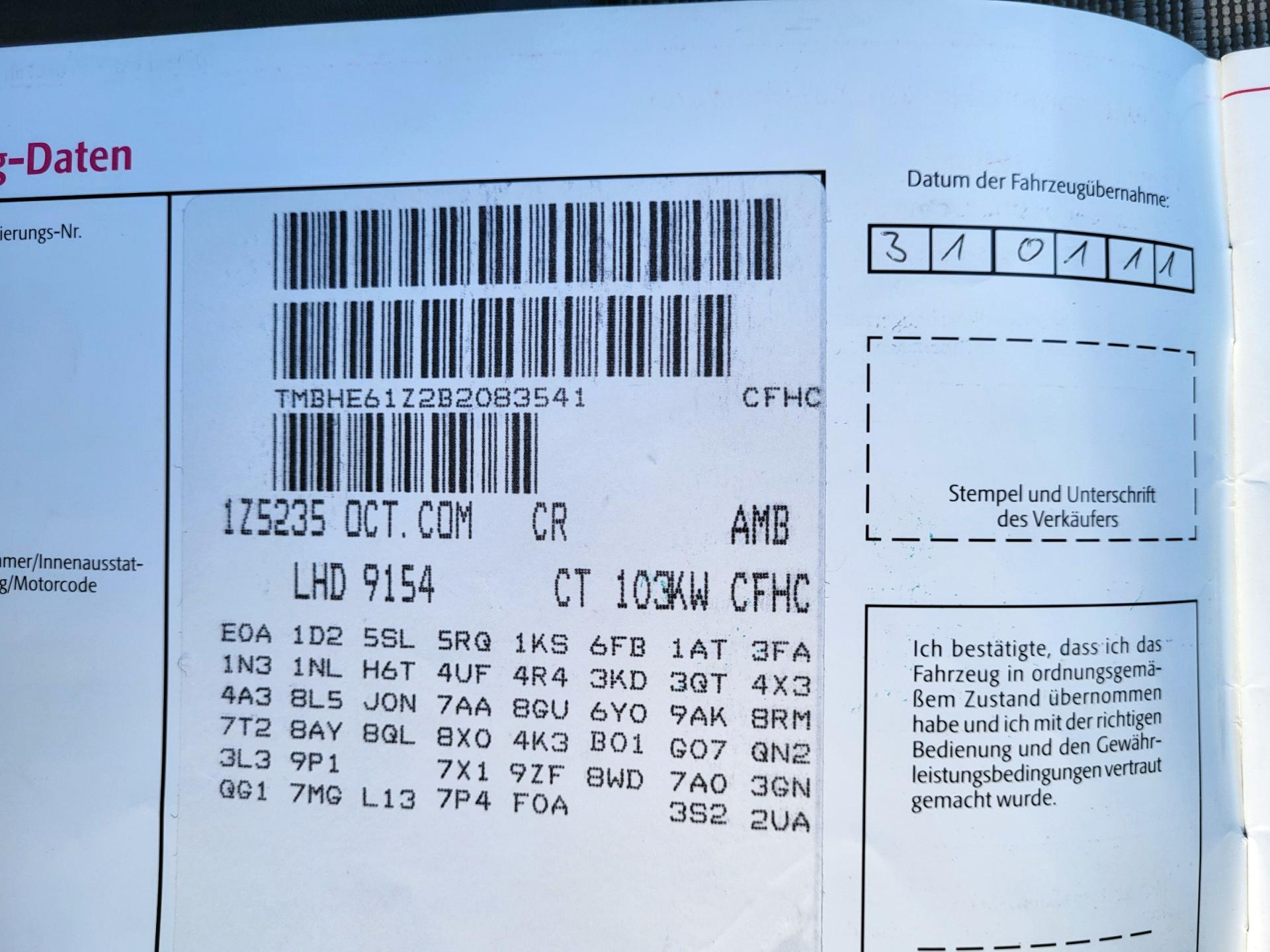 | VIN | TMBHE61Z2B2083541 |