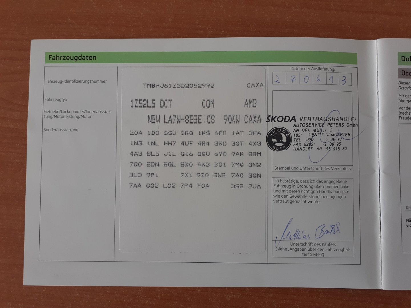 | VIN | TMBHJ61Z3D2052992 |