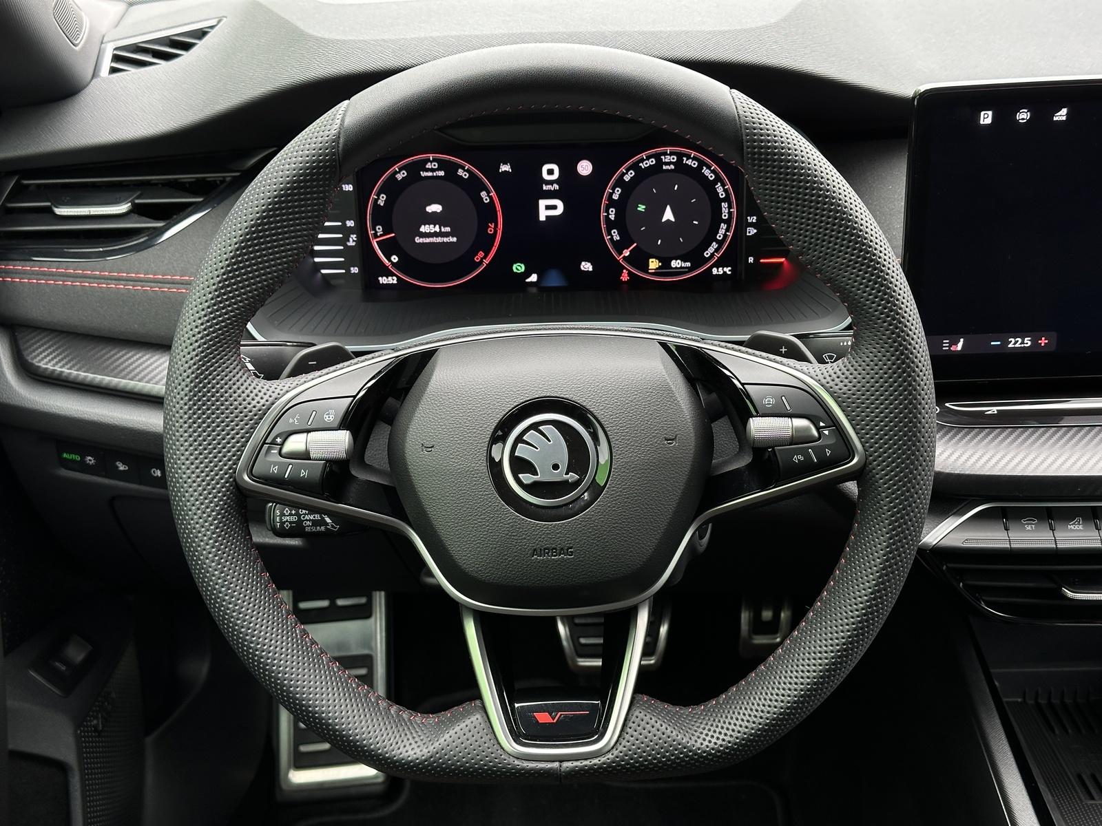 359/10264 Škoda Octavia RS 2.0 TSi DSG 195kW/265PS, 7st. Automatická převodovka DSG, Tovární záruka Škoda Auto 5let/100.000km, Výbava vozu: Adaptivní podvozek DCC, Kola z lehkých slitin ALU Škoda ELIAS 7,5Jx19 antracitová/broušená, Tažné zařízení sklopné - el. odjistitelné s adaptérem, ABS, Elektronická uzávěrka předního diferenciálu (EDS), ESP, Hlídání mrtvého úhlu - Side Assist, Asistent vedení v jízdním pruhu - Lane Assist, Asistent varování a nouzové brzdění v případě hrozící srážky s vozidly, chodci a cyklisty - Front Assist, Asistent pro jízdu v zácpě, Virtuální pedál, Adaptivní tempomat, Asistent rozjezdu do kopce, Asistent rozpoznání dopravních značek, Volba jízdních režimů, Hlasové ovládání, Senzor světla a deště, Parkovací senzory vpředu a vzadu - PDC, KAMERA, Parkovací asistent, Kontrola tlaku v pneumatikách, Start/Stop systém, Alarm, Centrální zamykání, Dálkové centrální zamykání, Imobilizér, Ambientní LED osvětlení interiéru, Hlavní Matrix-LED světlomety, Denní svícení, LED zadní světlomety, Mlhovky, El. ovládání oken, EL. ovládaná vnější zpětná zrcátka, vyhřívaná , sklopná s automatickým zatmavováním, Vnitřní zpětné zrcátko automatickým zatmavováním, El. ovládání víka zavazadlového prostoru, El. parkovací brzda, Multifunkční kožený vyhřívaný volant s pádly řazení pod volantem, Vyhřívané čelní sklo, Vyhřívané trysky ostřikovače čelního skla, Přední a zadní loketní opěrka, Sportovní přední sedadla - vyhřívaná - mechanicky nastavitelná, Bederní opěrky na předních sedadlech, Potah sedadel látka/alcantara, Isofix, Bluetooth, Nabíjecí box pro Smartphone s chlazením, Digitální příjem rádia - DAB, Palubní počítač, Satelitní Navigace, Mobilní připojení, Digitální přístrojová deska, Ocelové rezervní kolo, Stav nového vozu, Servisní kniha + kompletní dokumentace Škoda Auto, Skladem - ihned k odběru.