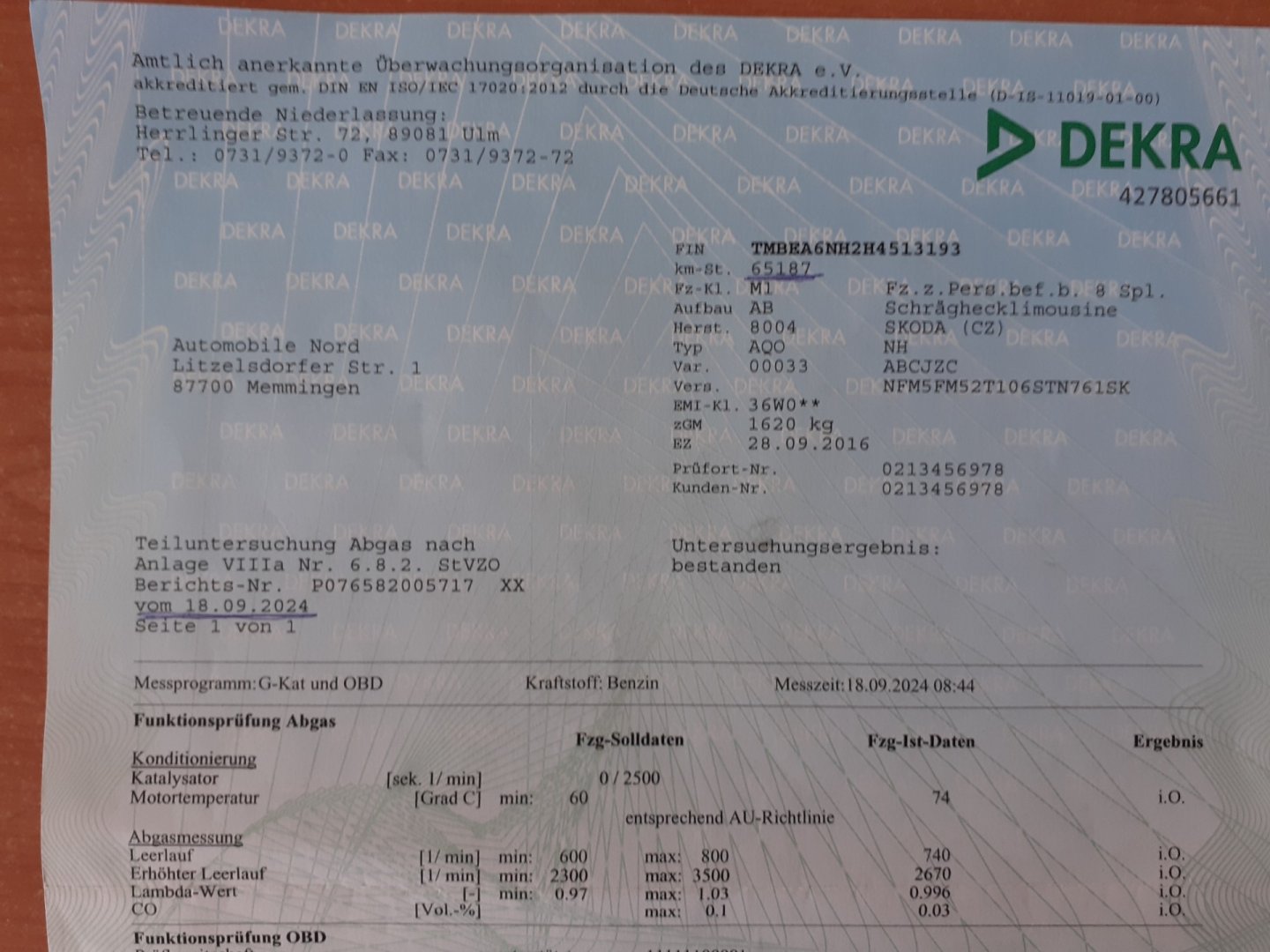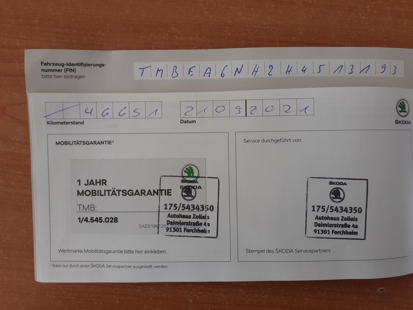 | VIN | TMBEA6NH2H4513193 |